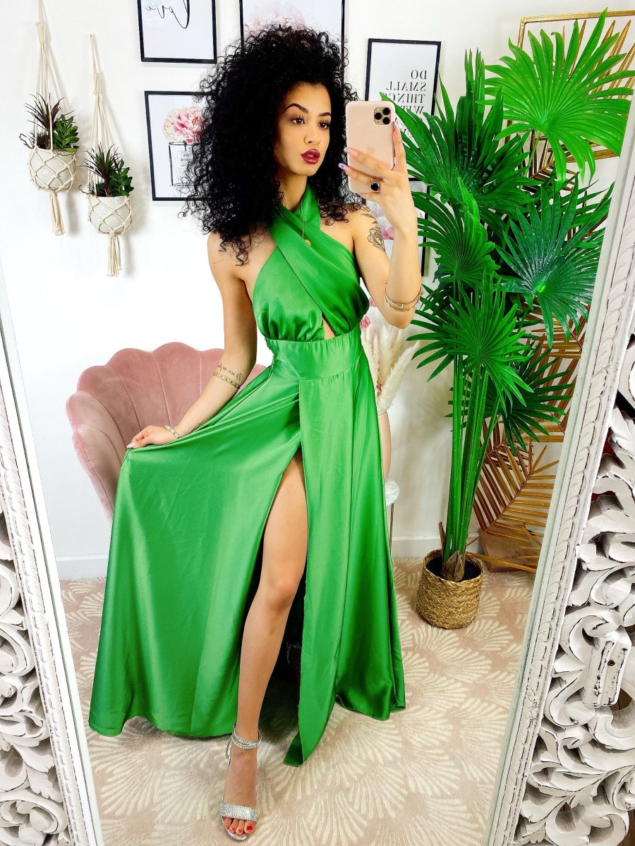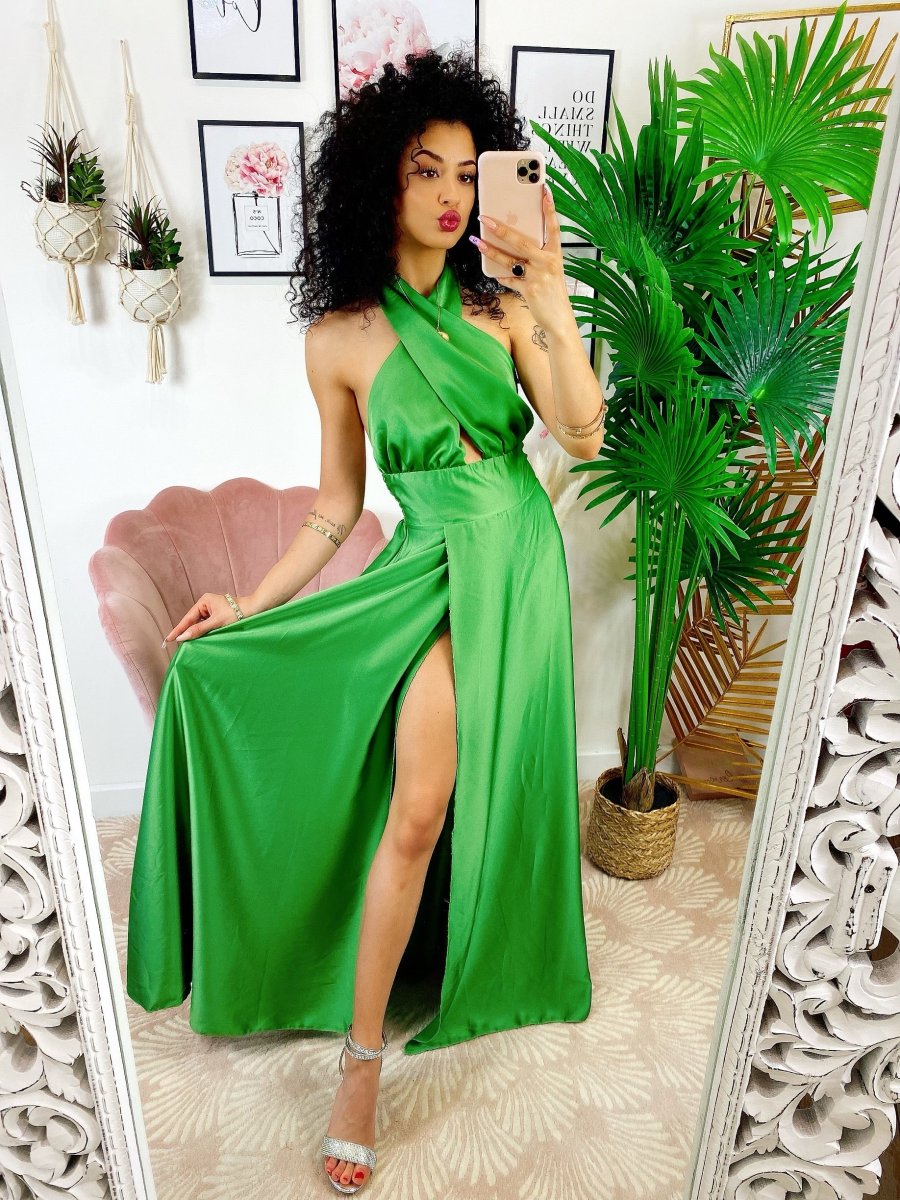 Dress a bretellina in raso di alta qualità con spacco. Fantastico abito molto lungo da indossare con un bel tacco per le serate più glamour. Tira fuori la tua sensualità e voglia di essere donna, sarai la più amata della serata !!