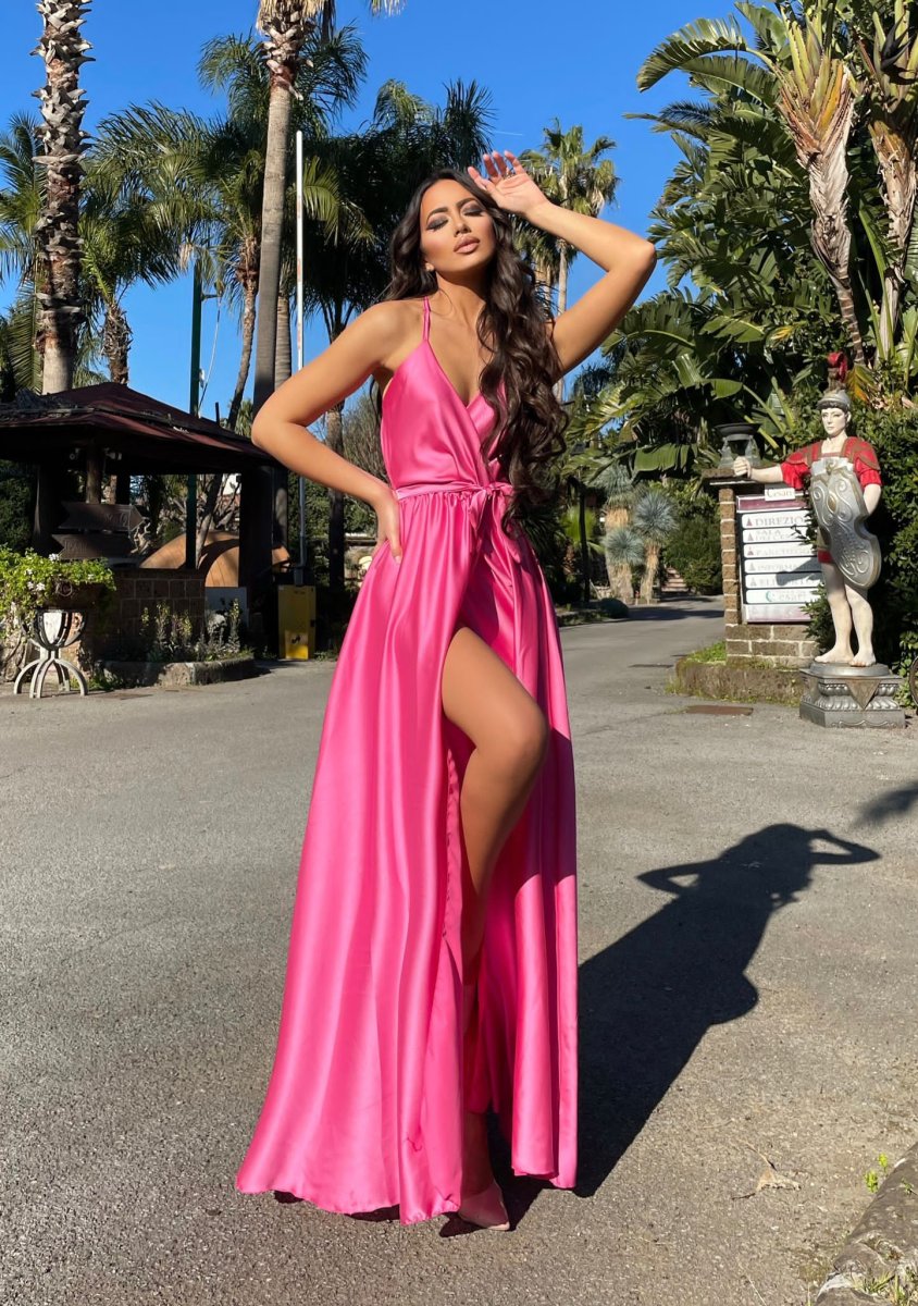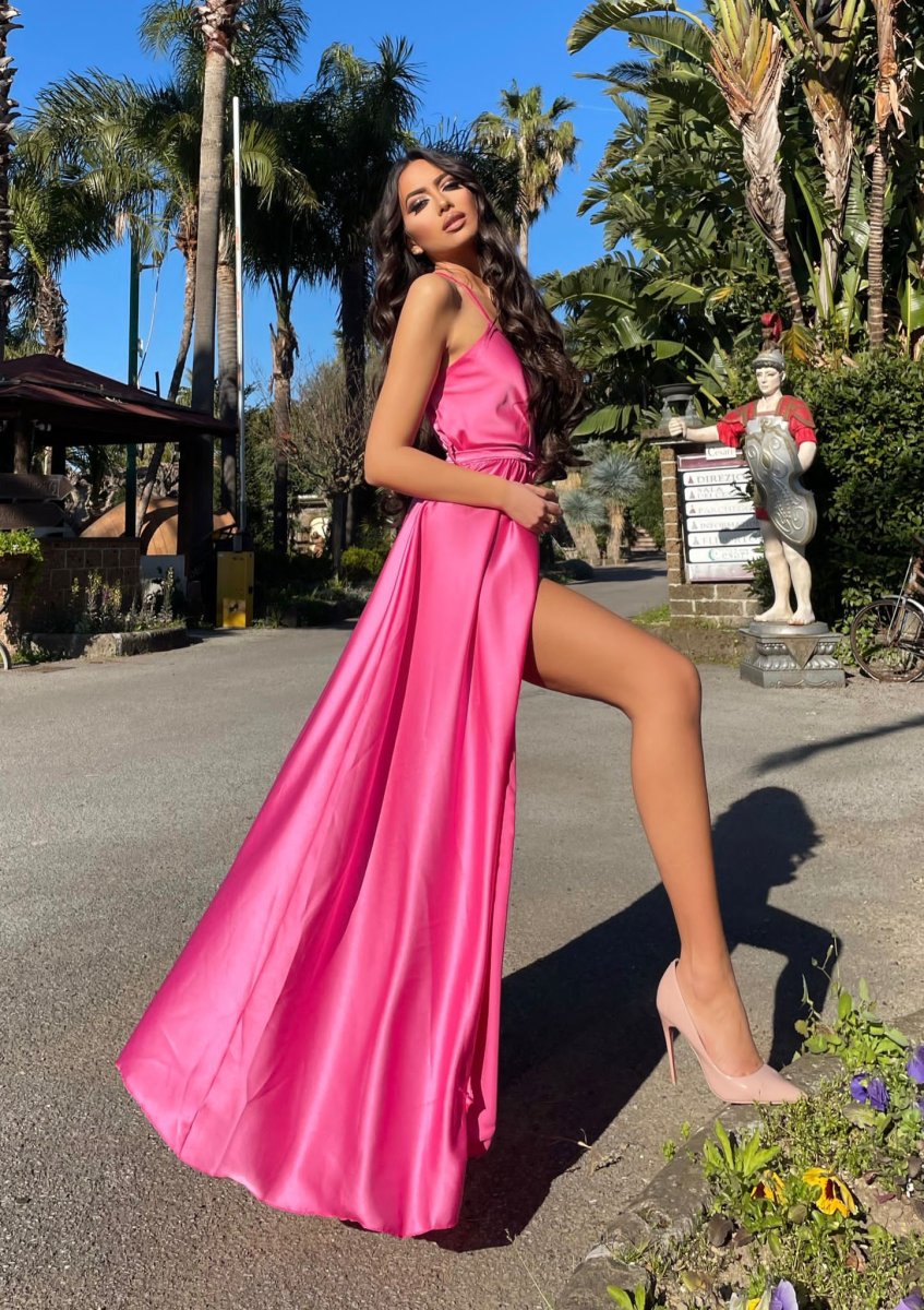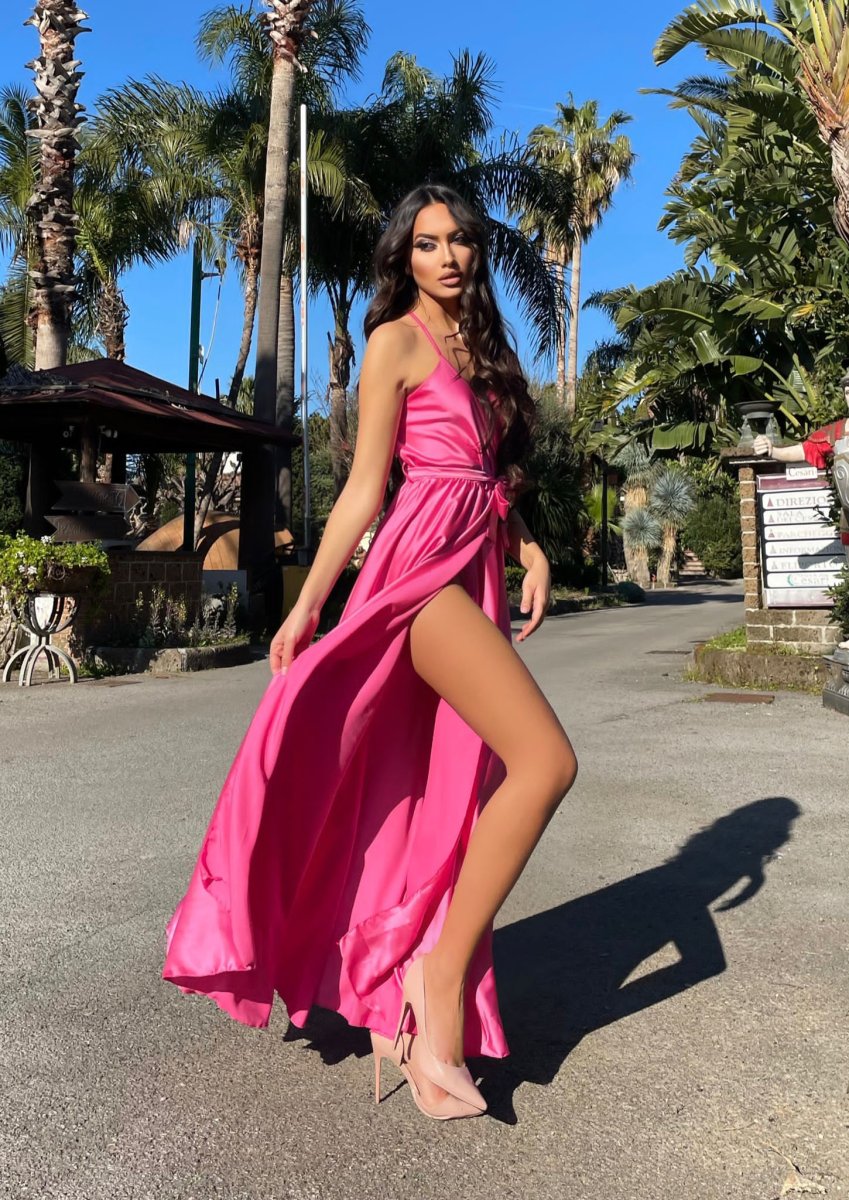 Abito in raso con maxi spacco di alta qualità. Fantastico abito molto lungo da indossare con un bel tacco per le serate più glamour. Tira fuori la tua sensualità e voglia di essere donna, sarai la più amata della serata !!