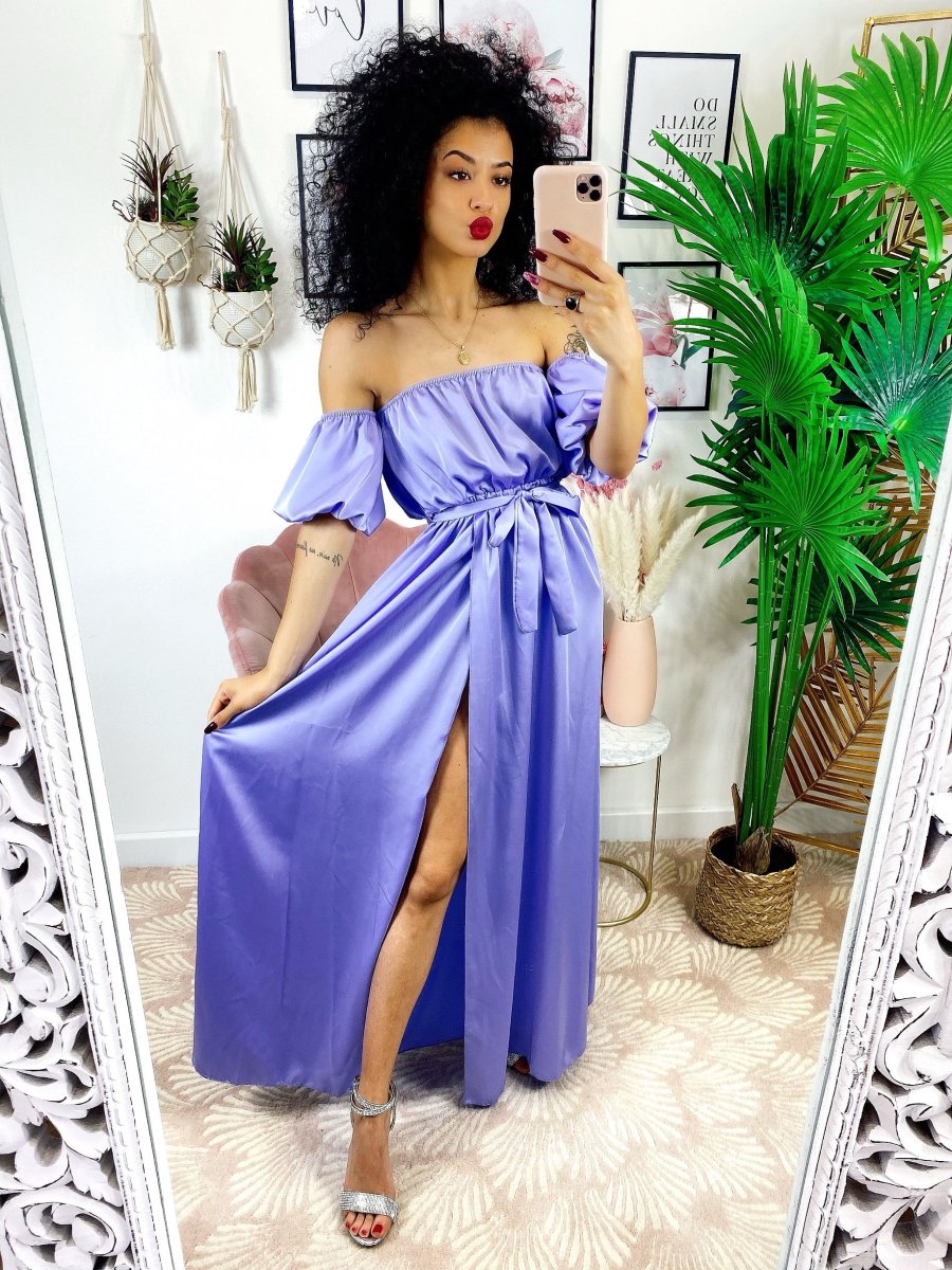 Dress con scollo a barchetta in raso di alta qualità. Fantastico abito molto lungo da indossare con un bel tacco per le serate più glamour. Tira fuori la tua sensualità e voglia di essere donna, sarai la più amata della serata !!