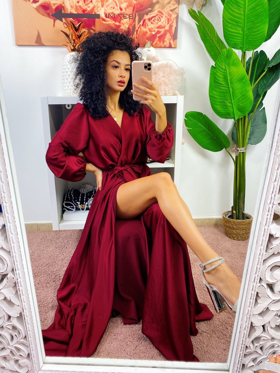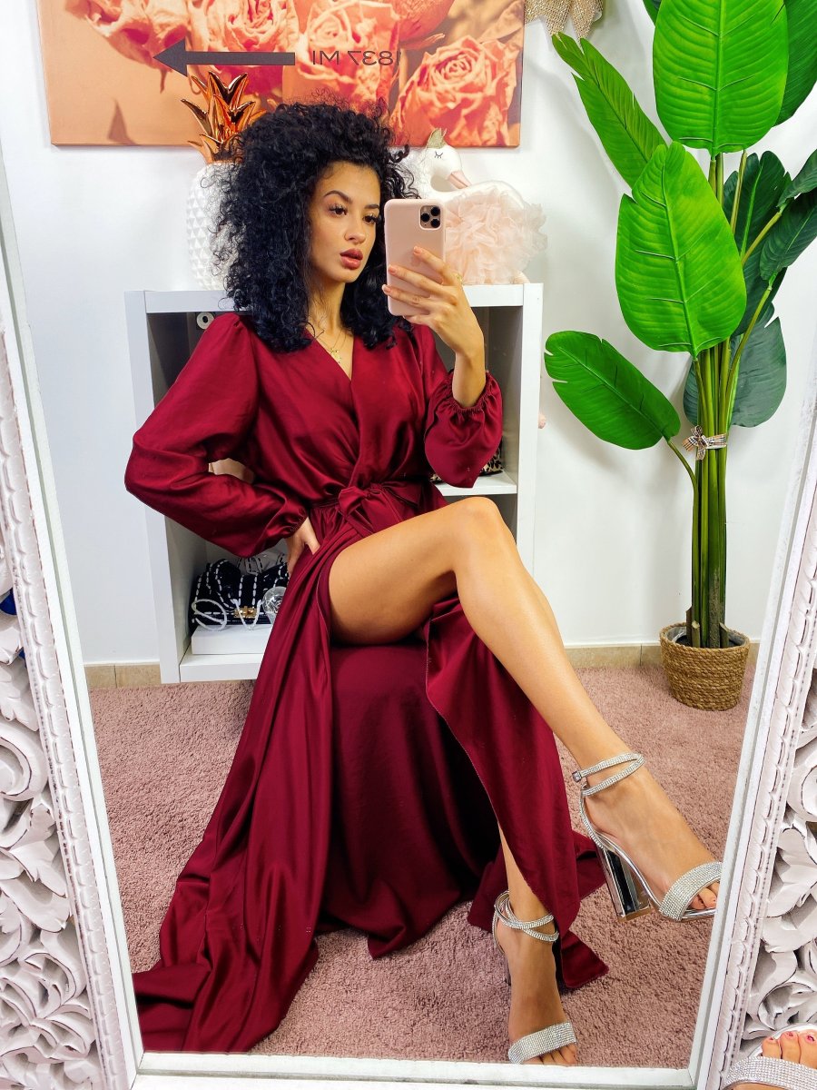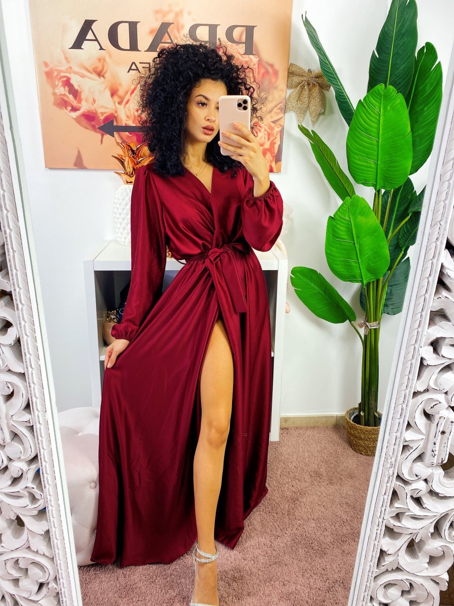 Recensisci per primo “Abito in raso con maxi spacco manica lunga Bordeaux”