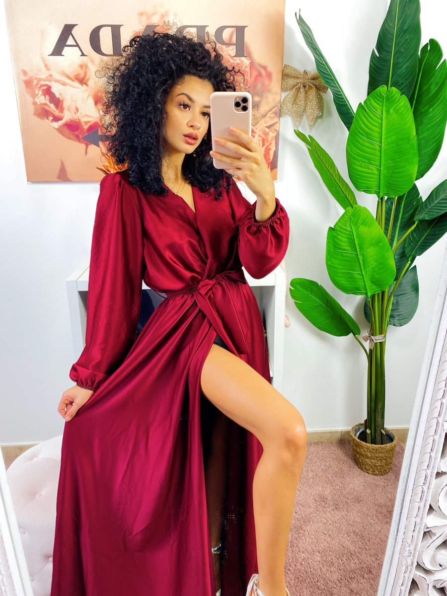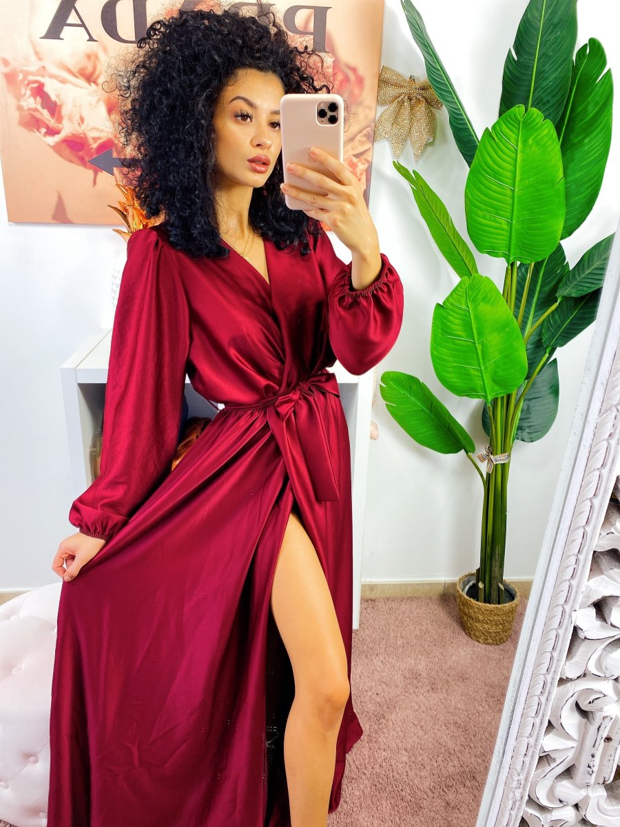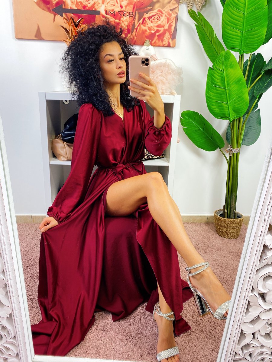 Recensisci per primo “Abito in raso con maxi spacco manica lunga Bordeaux”