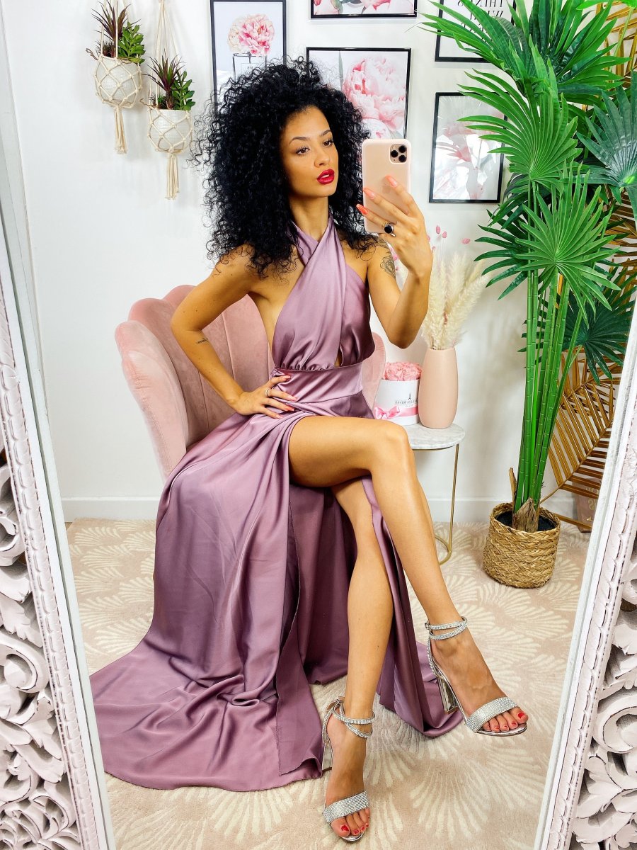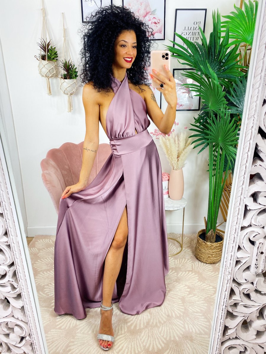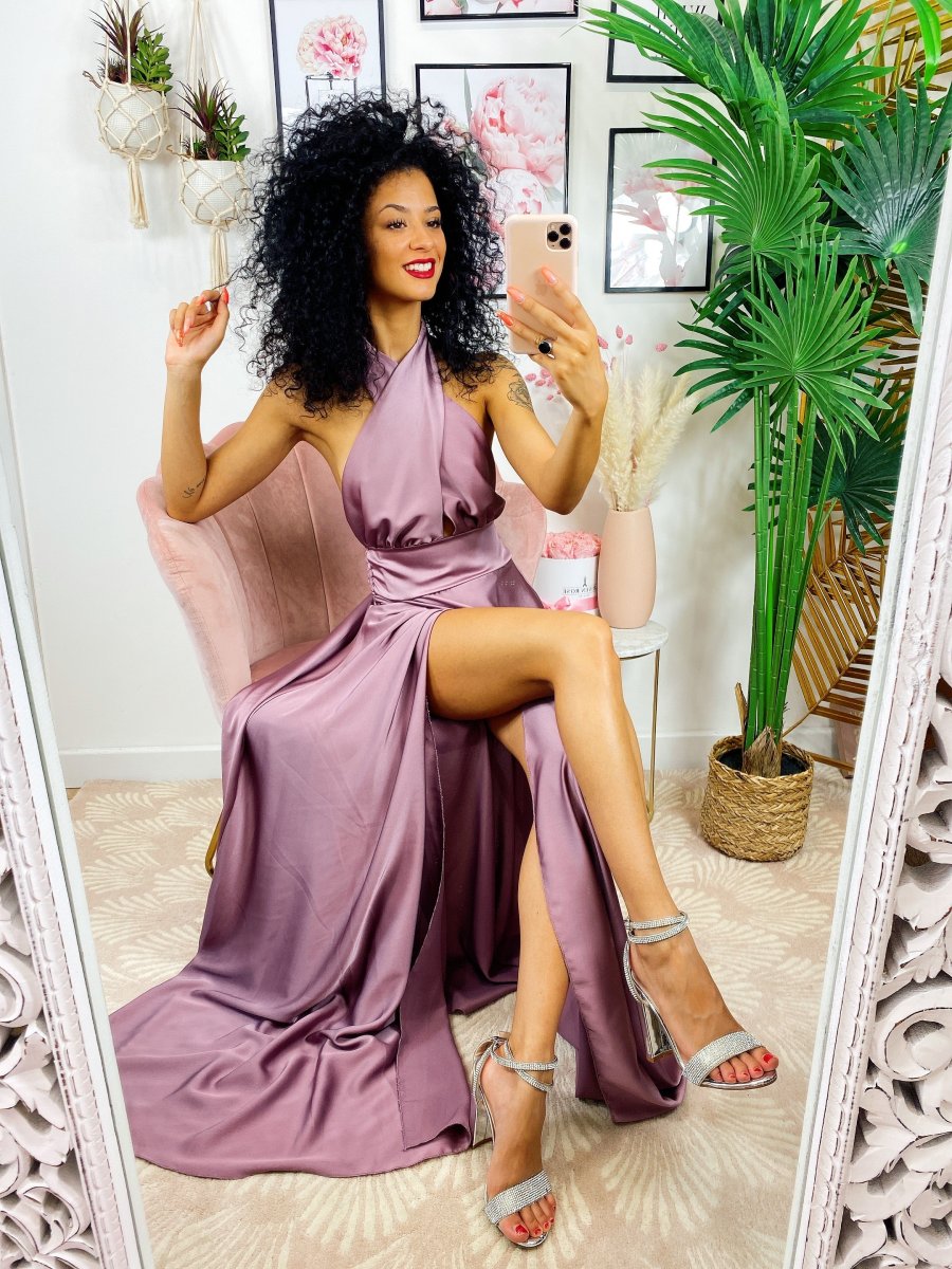 Dress in raso di alta qualità con spacco. Fantastico abito molto lungo da indossare con un bel tacco per le serate più glamour. Tira fuori la tua sensualità e voglia di essere donna, sarai la più amata della serata !!