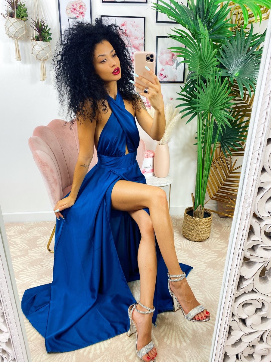 Dress in raso di alta qualità con spacco. Fantastico abito molto lungo da indossare con un bel tacco per le serate più glamour. Tira fuori la tua sensualità e voglia di essere donna, sarai la più amata della serata !!