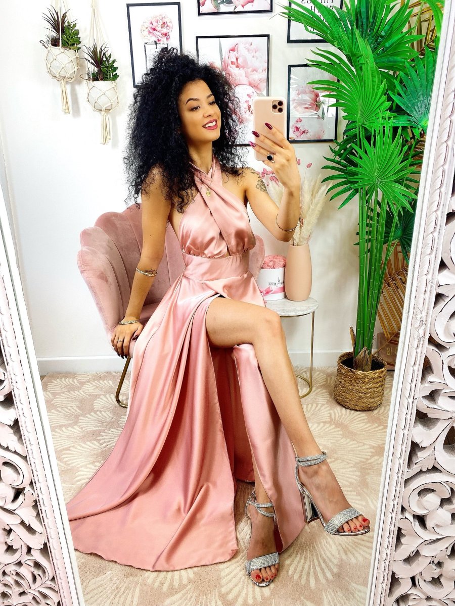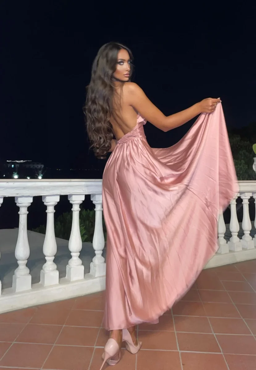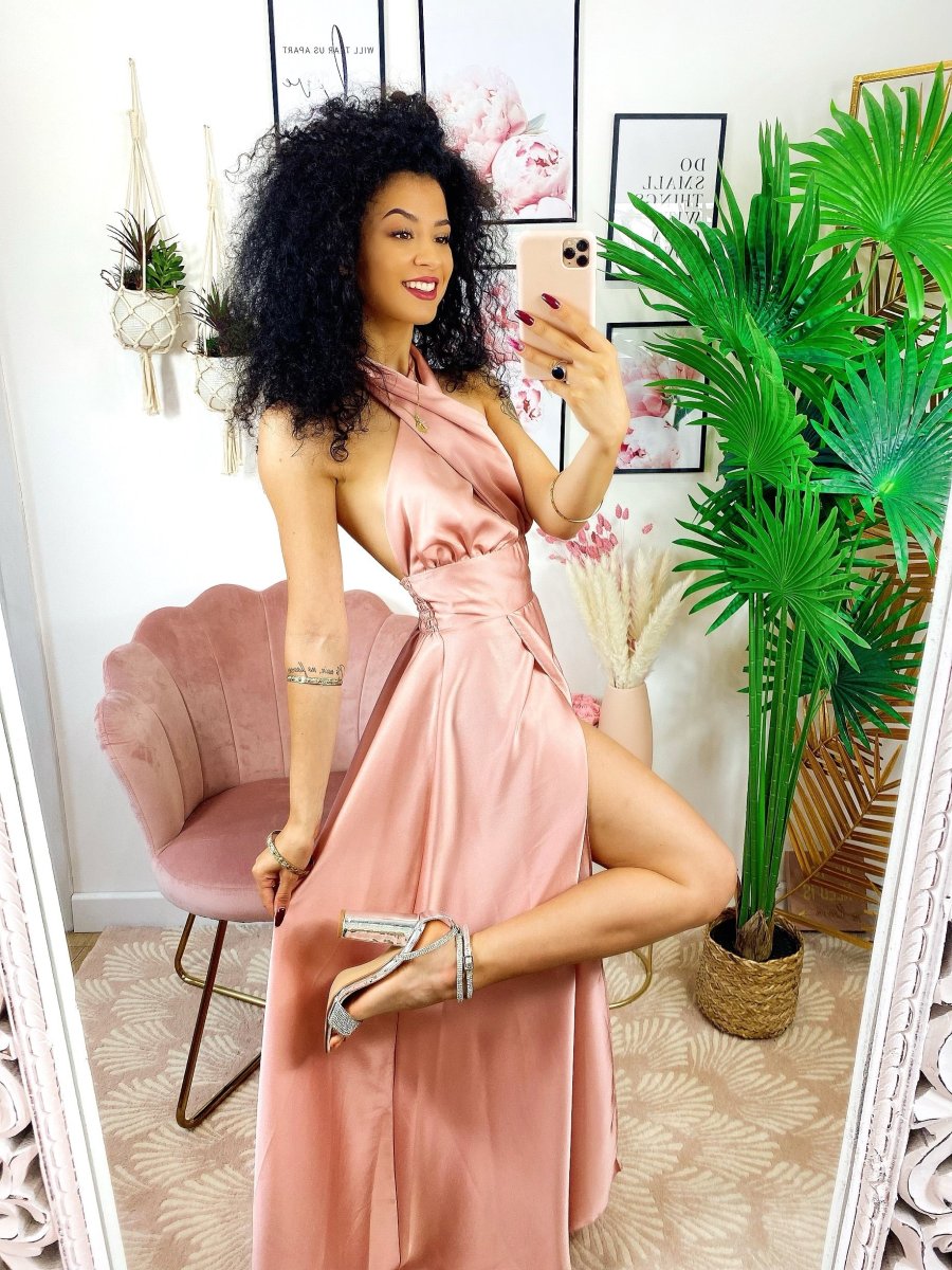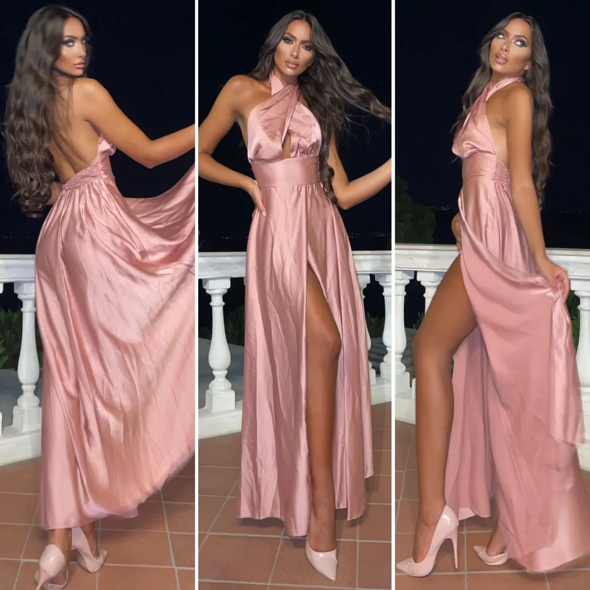 Dress in raso di alta qualità con spacco. Fantastico abito molto lungo da indossare con un bel tacco per le serate più glamour. Tira fuori la tua sensualità e voglia di essere donna, sarai la più amata della serata !!