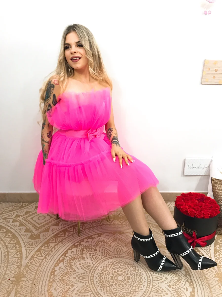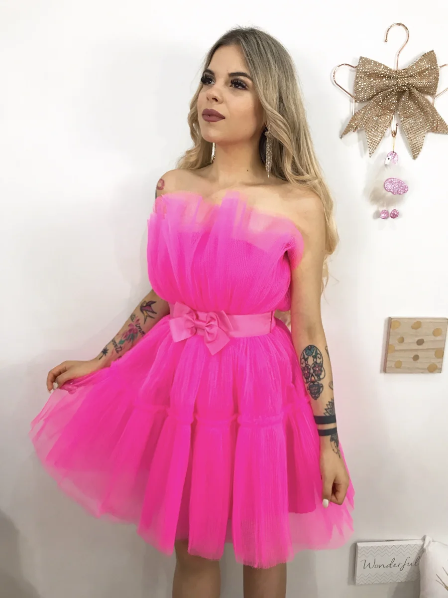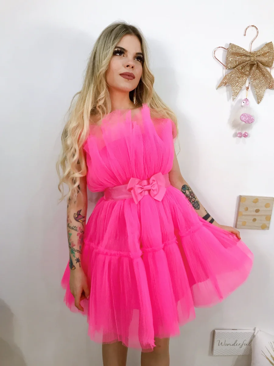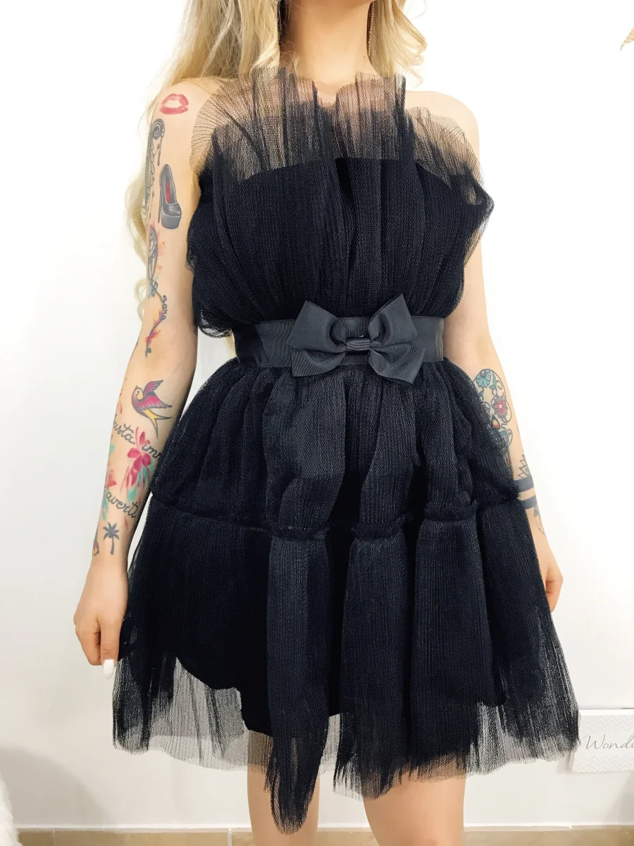 Abito alta qualità con vita stretta e fiocco rifinito tutto in tulle.