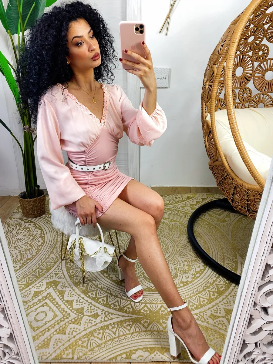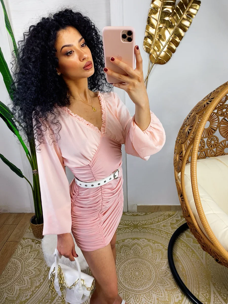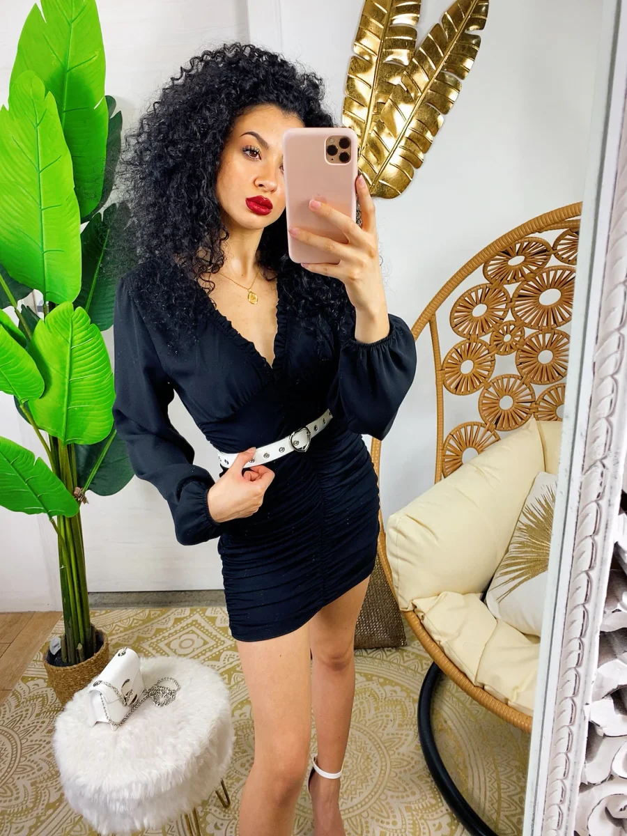 Abito in tessuto leggero con gonna foderata. Rouge sul davanti e dietro e maxi scollo. Taglia unica tessuto elasticizzato