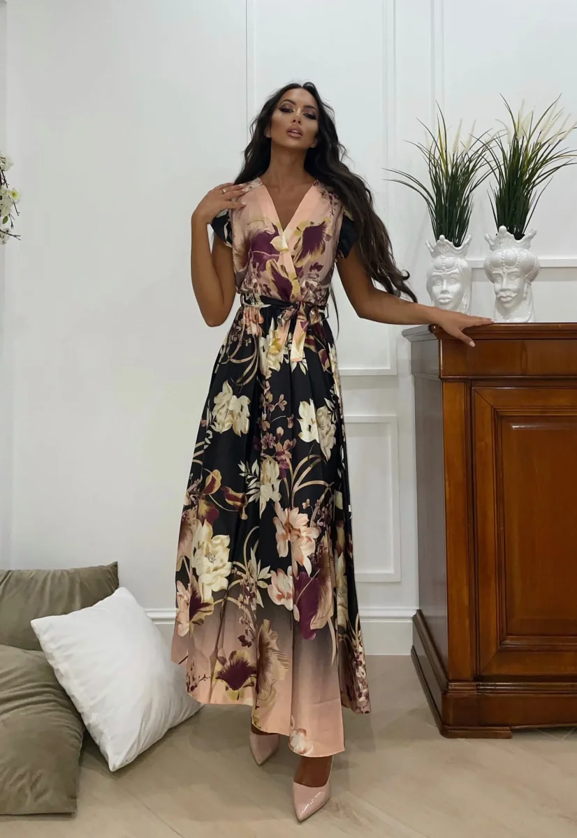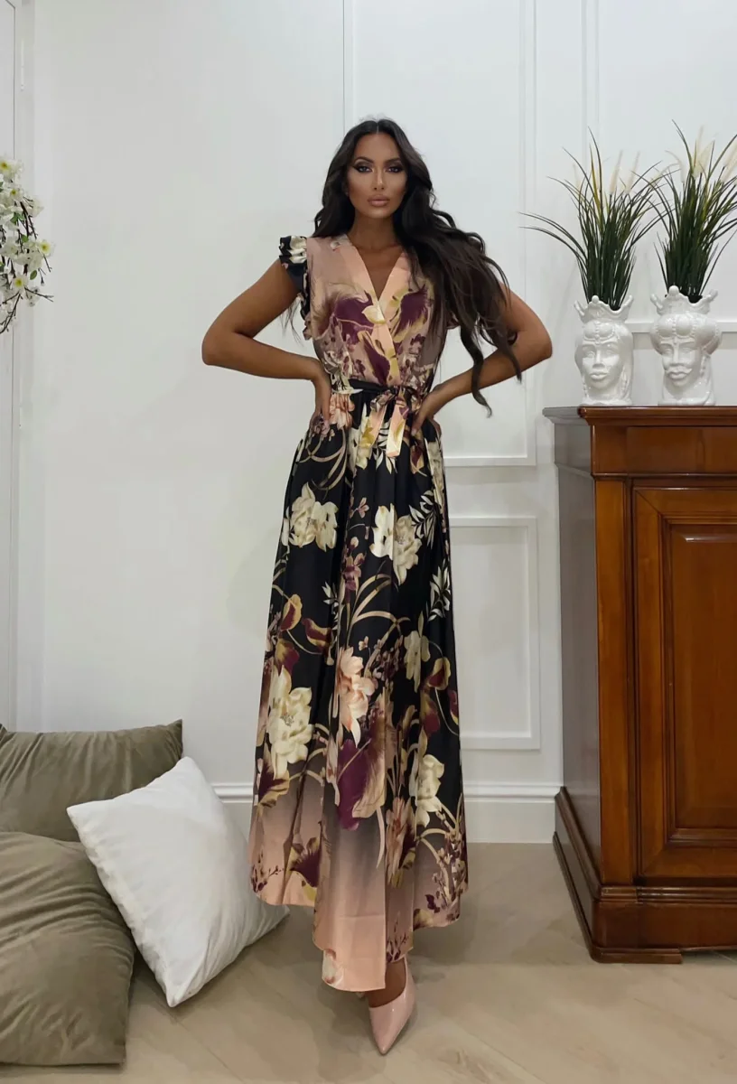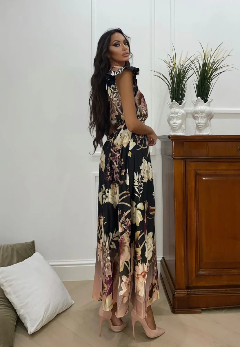 Abito lungo a fiori nude e nero