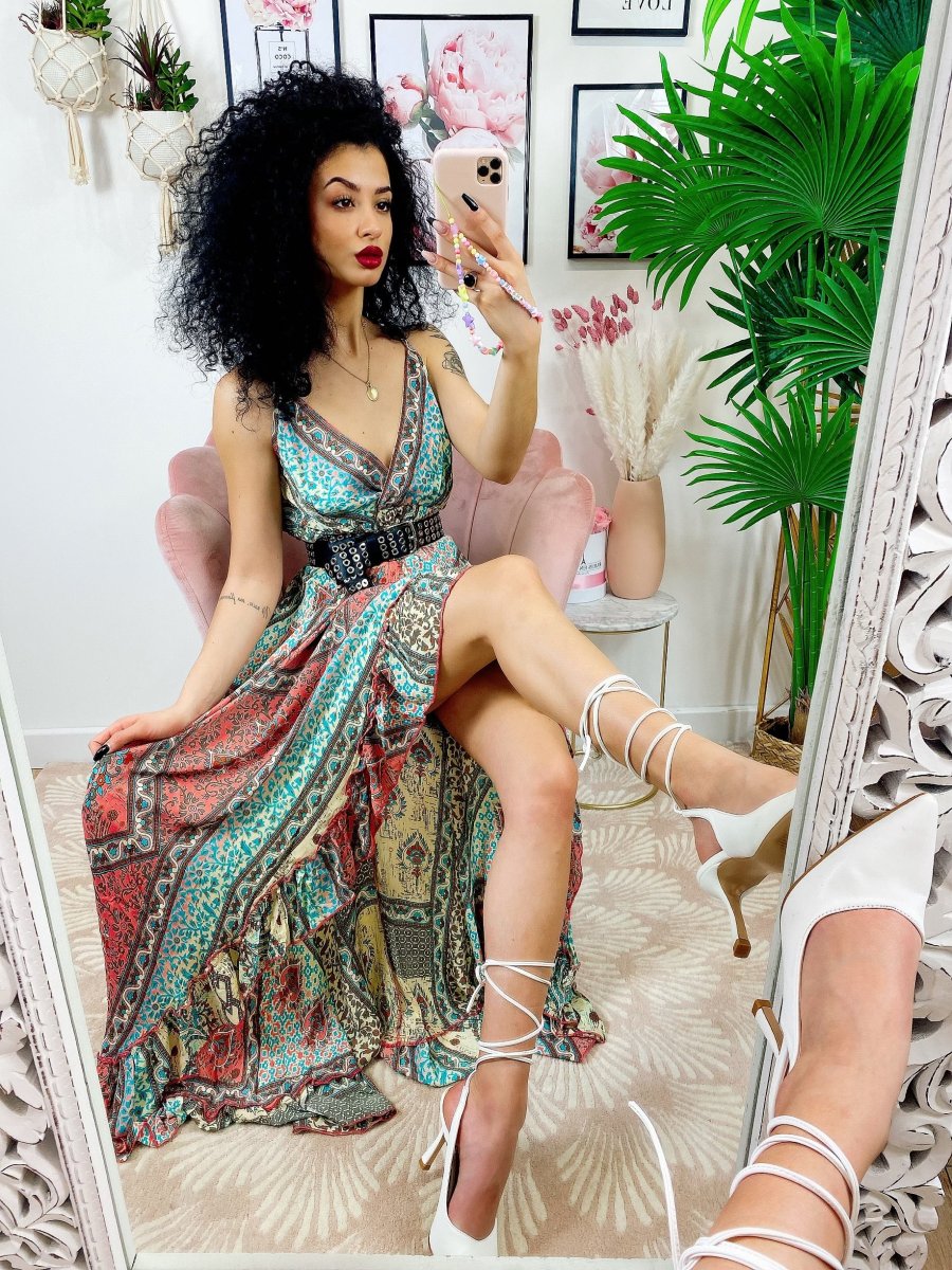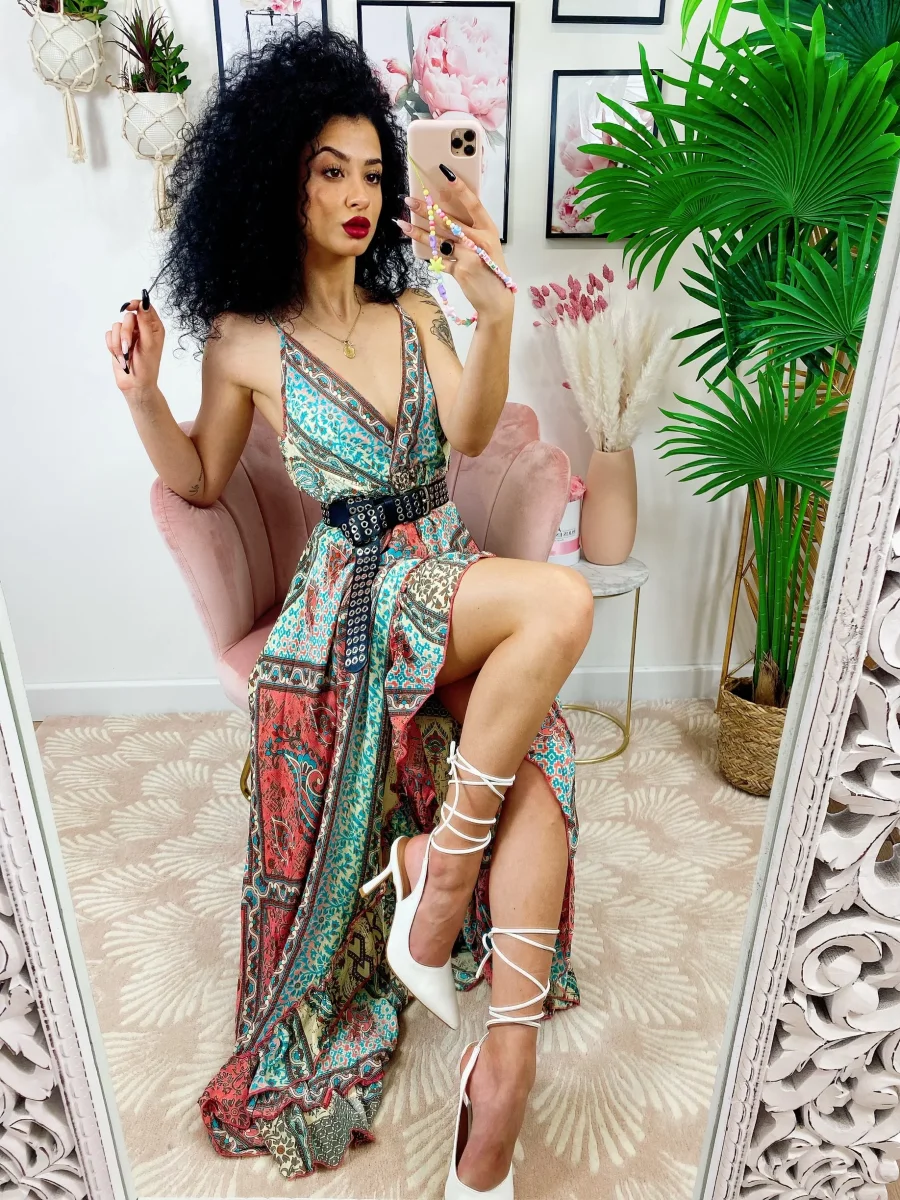 Recensisci per primo “Abito lungo con gonna asimmetrica rosa verdeacqua”