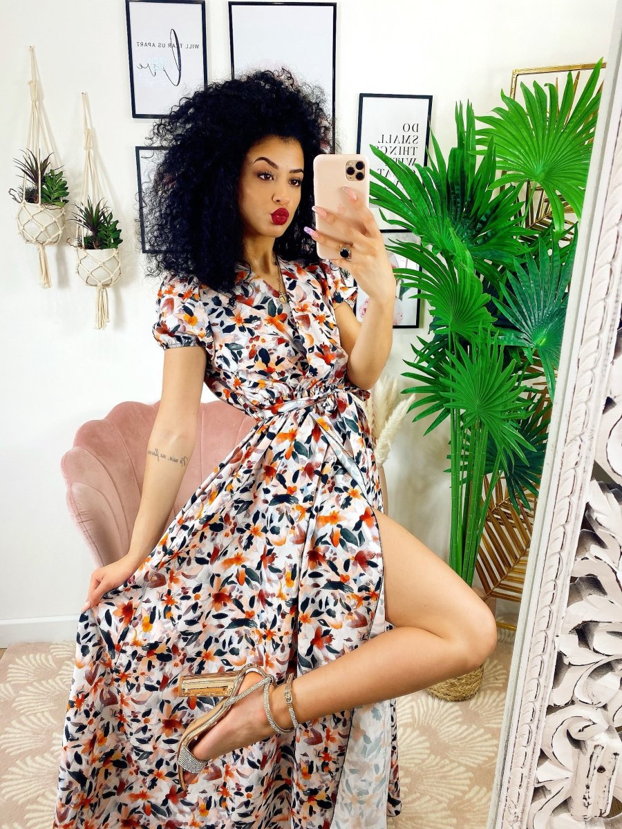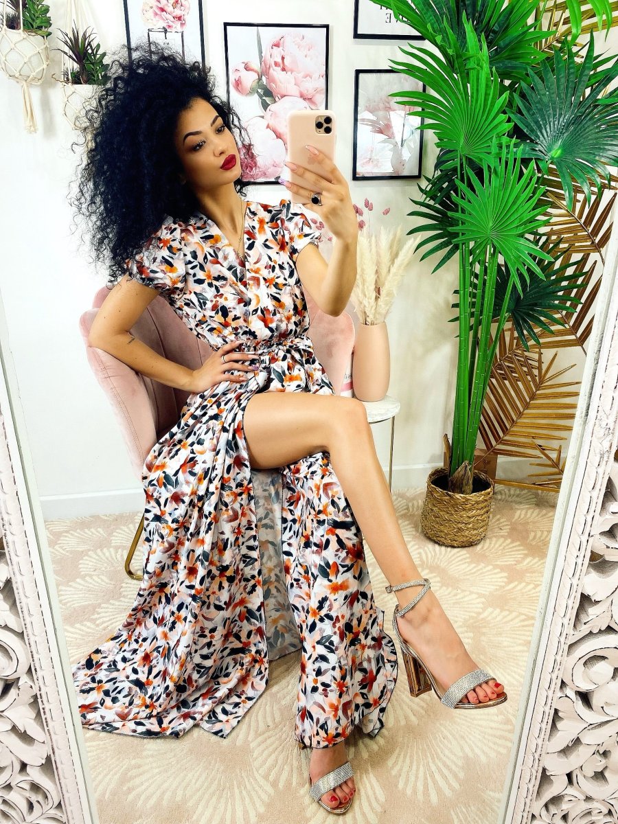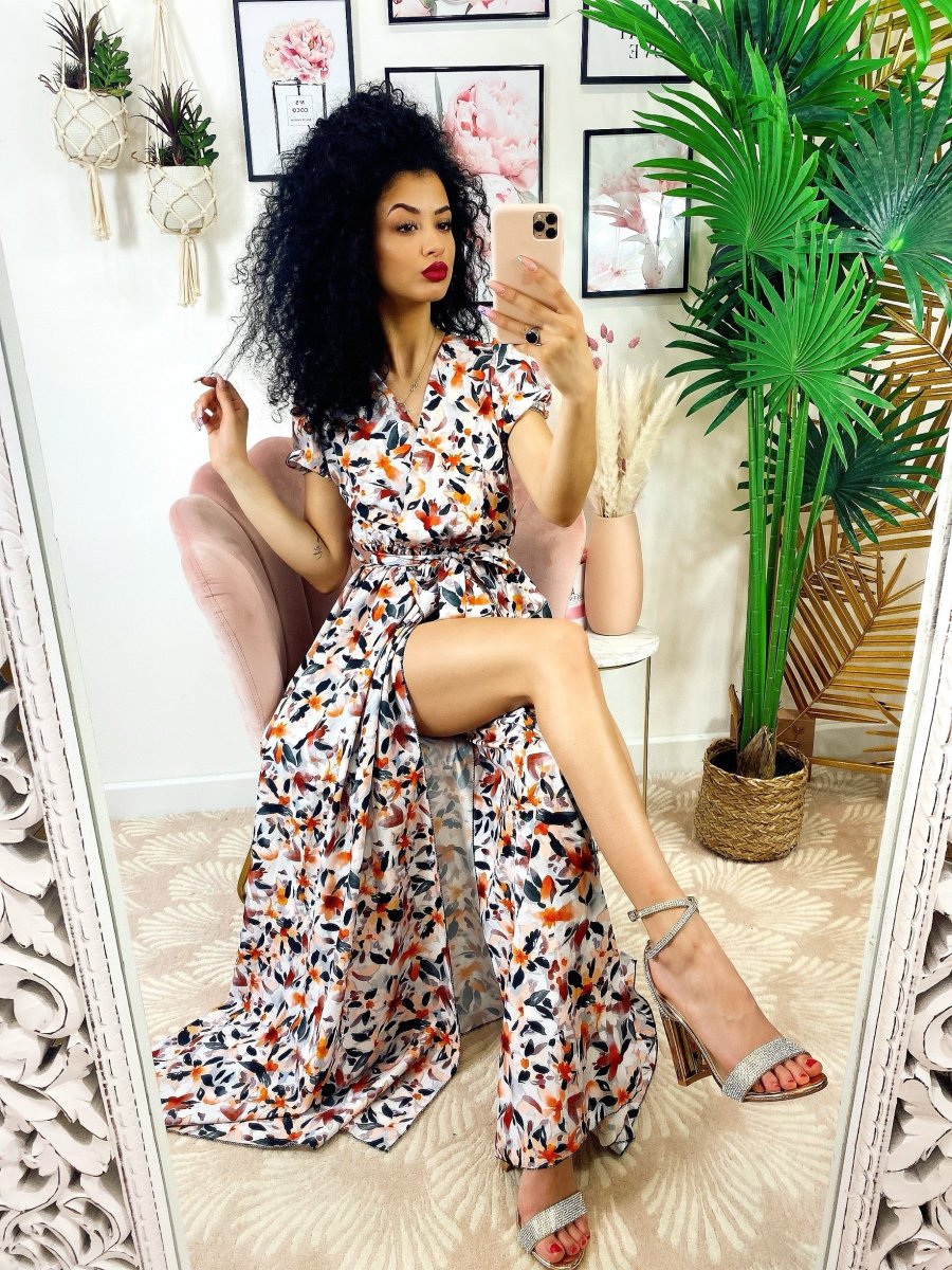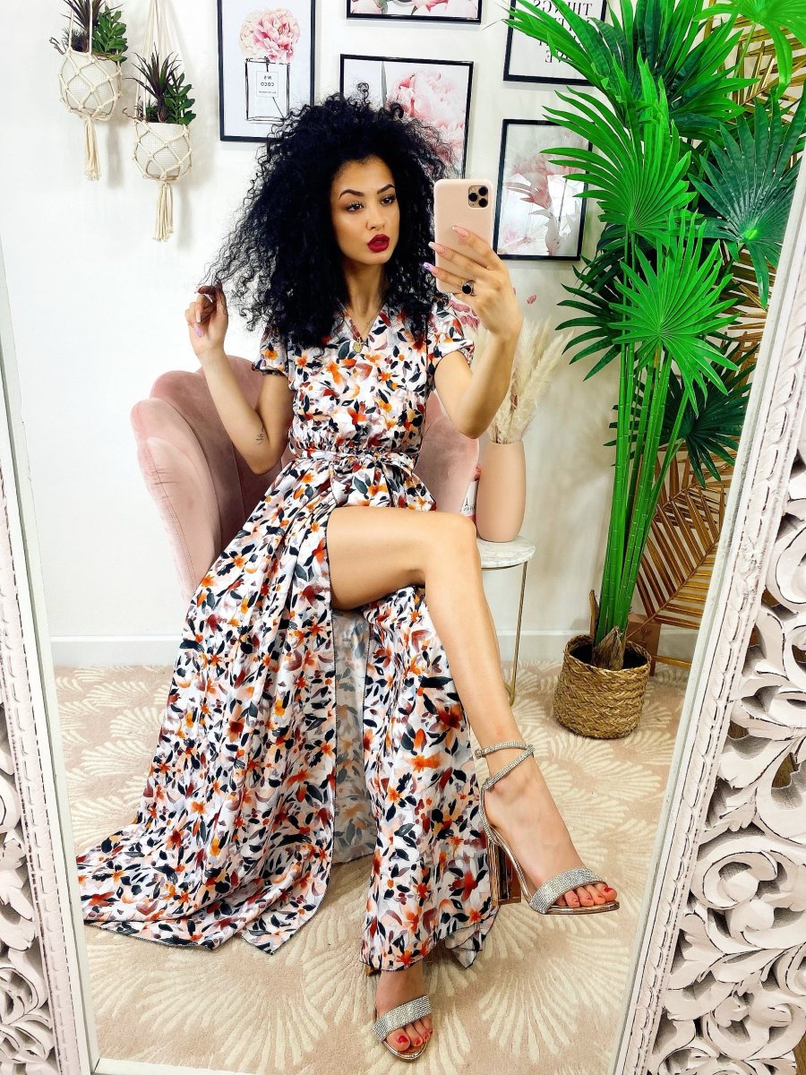 Recensisci per primo “Abito lungo con maxi spacchi a fiori base Bianco nera”