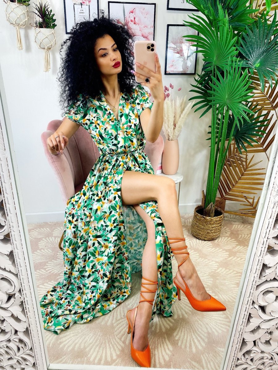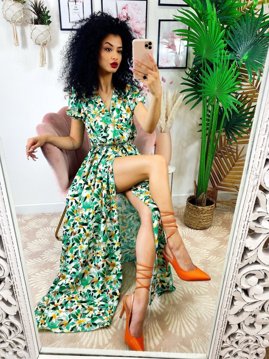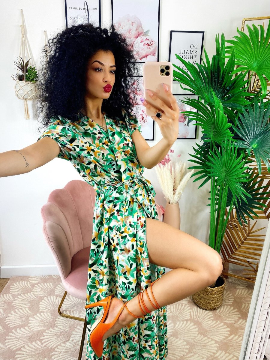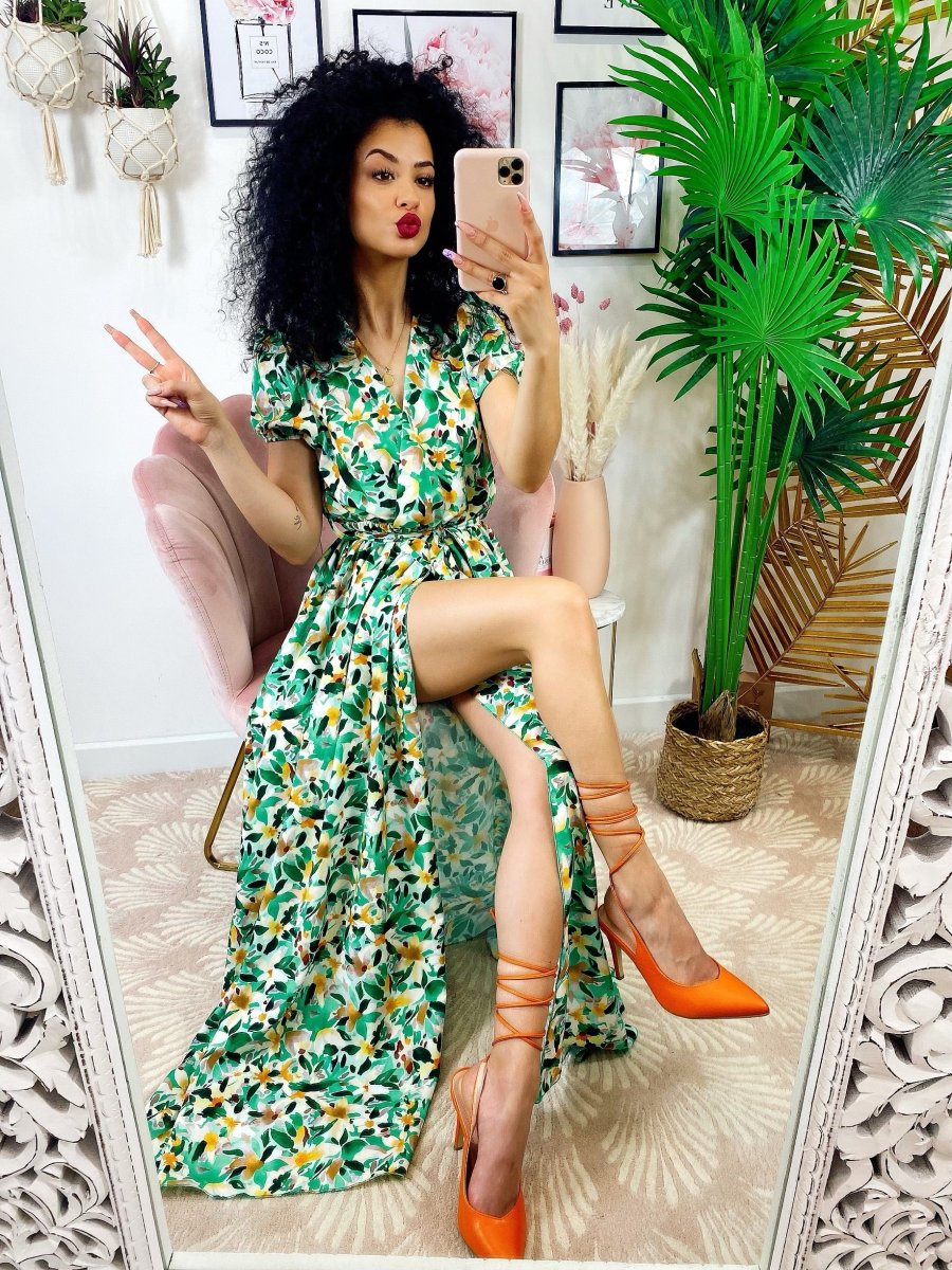 Recensisci per primo “Abito lungo con maxi spacchi a fiori base verde”