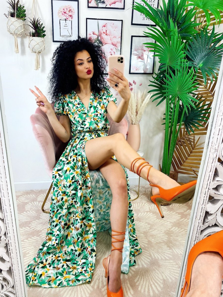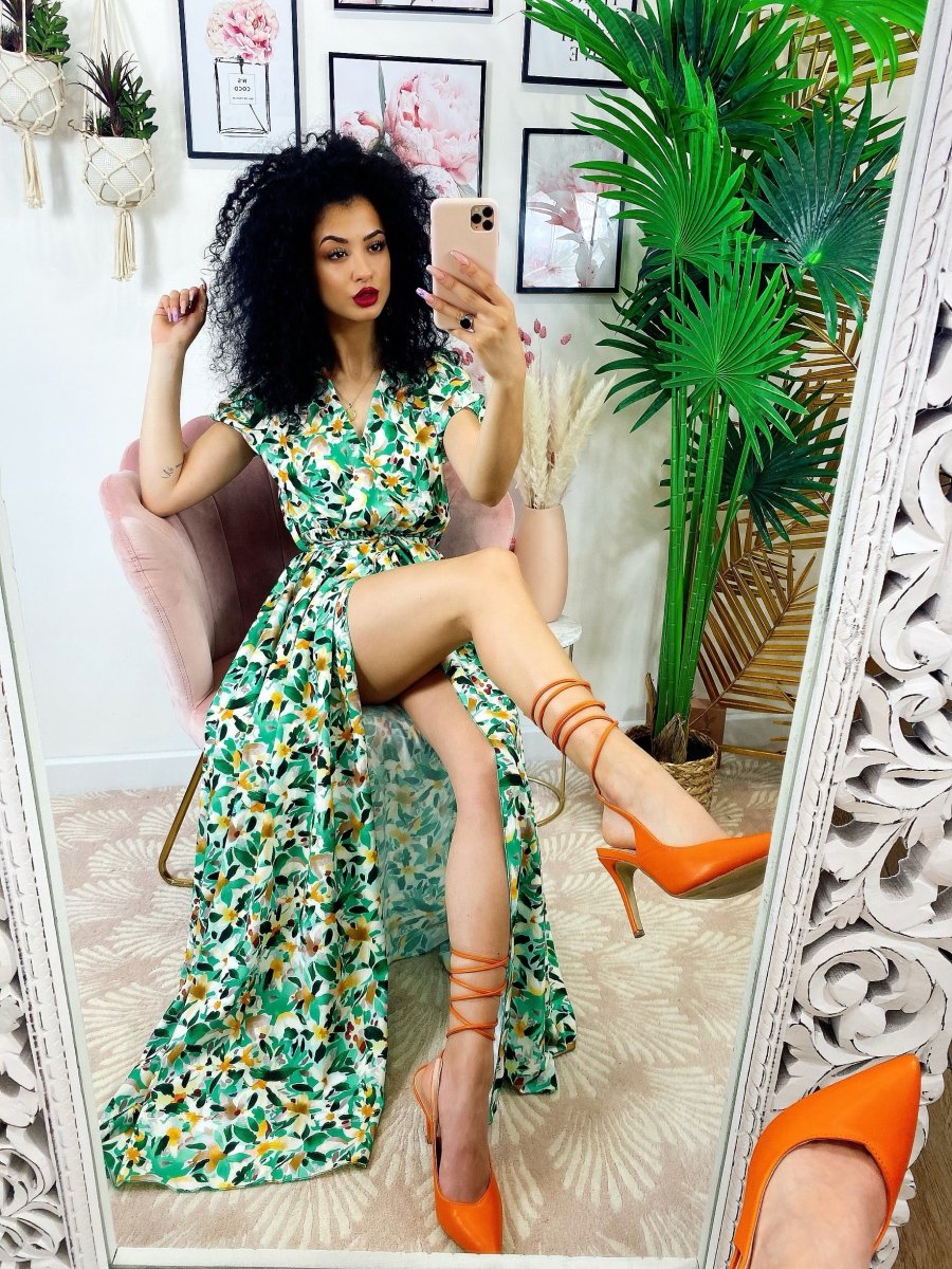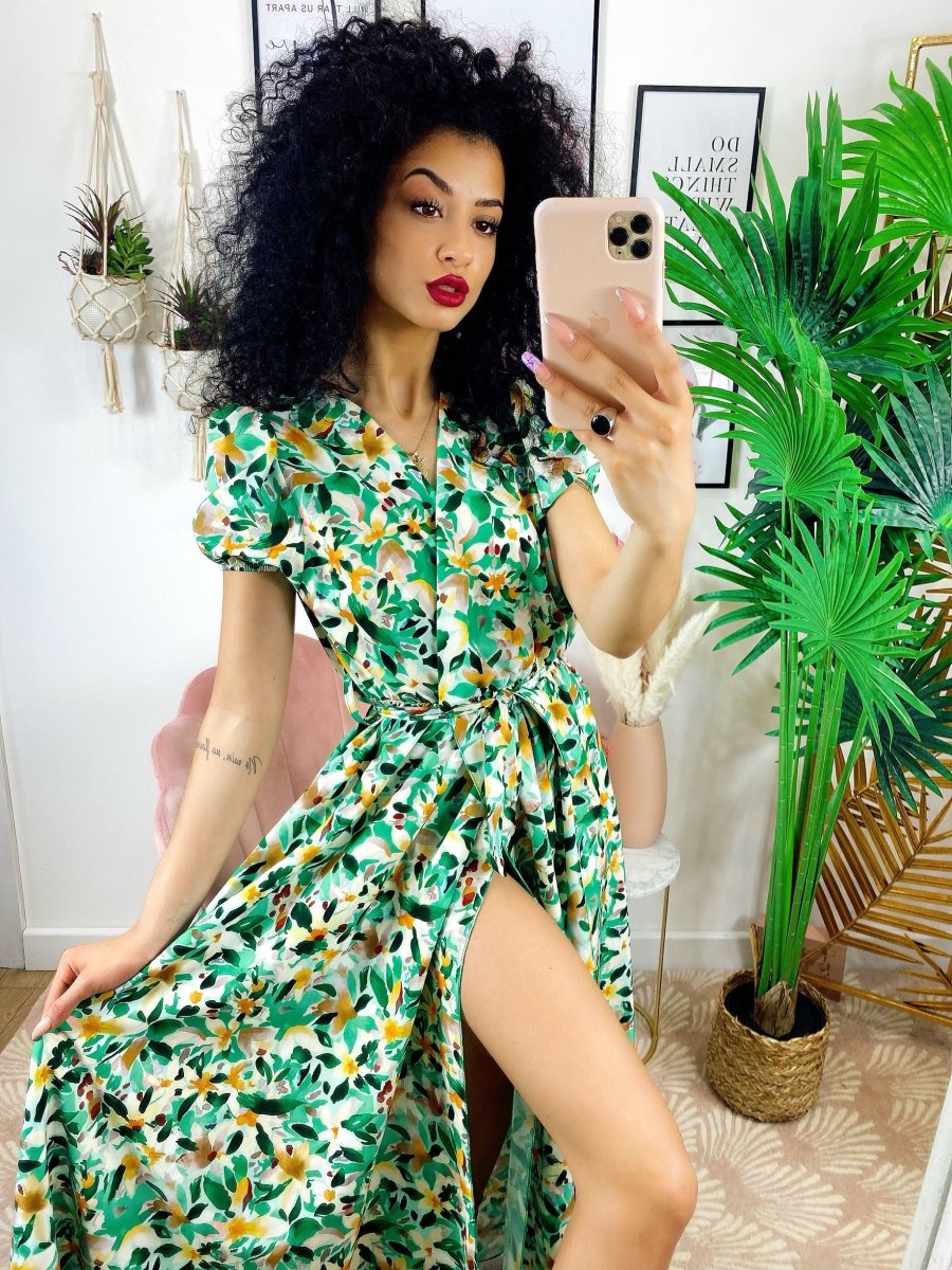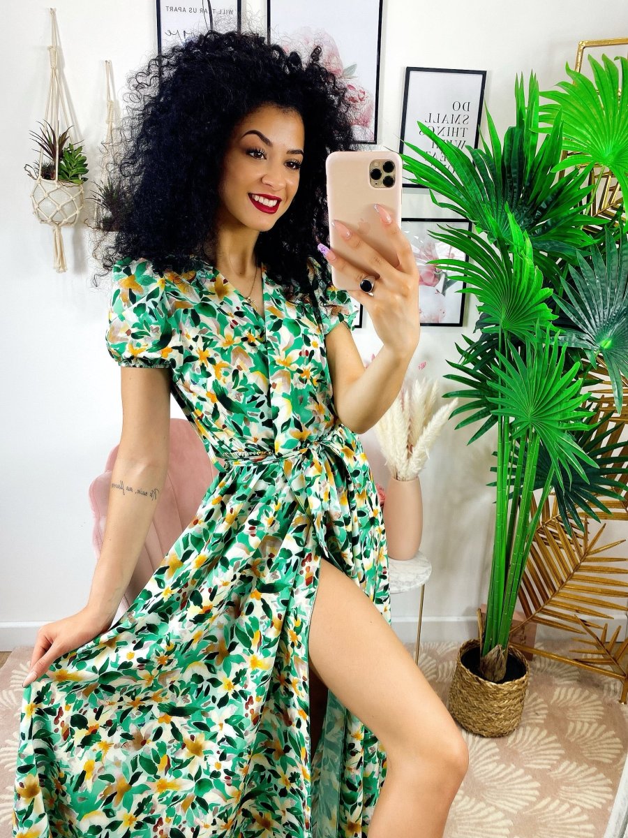 Recensisci per primo “Abito lungo con maxi spacchi a fiori base verde”
