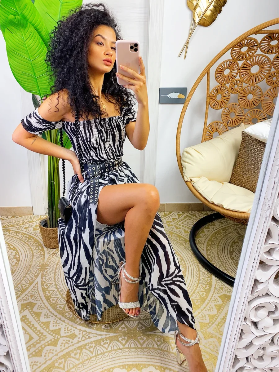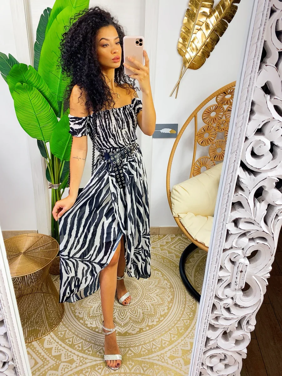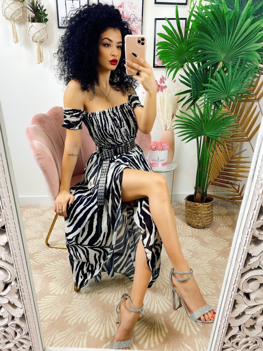 Recensisci per primo “Abito lungo con scollo a barchetta zebrato”