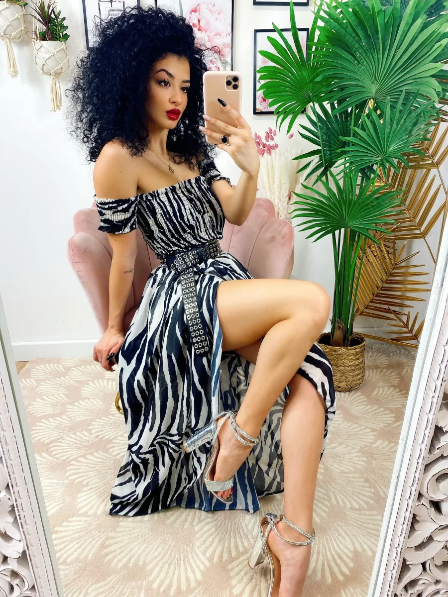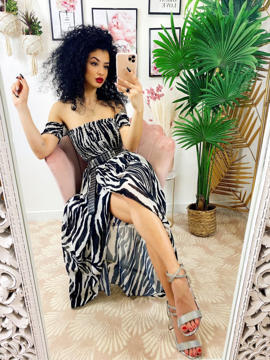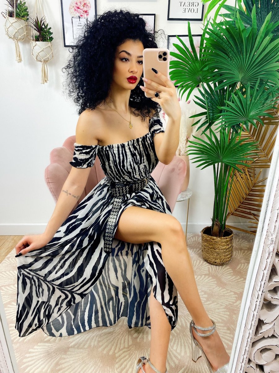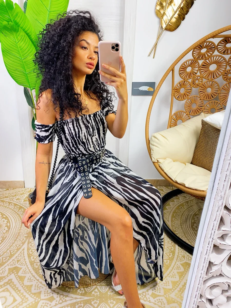 Recensisci per primo “Abito lungo con scollo a barchetta zebrato”
