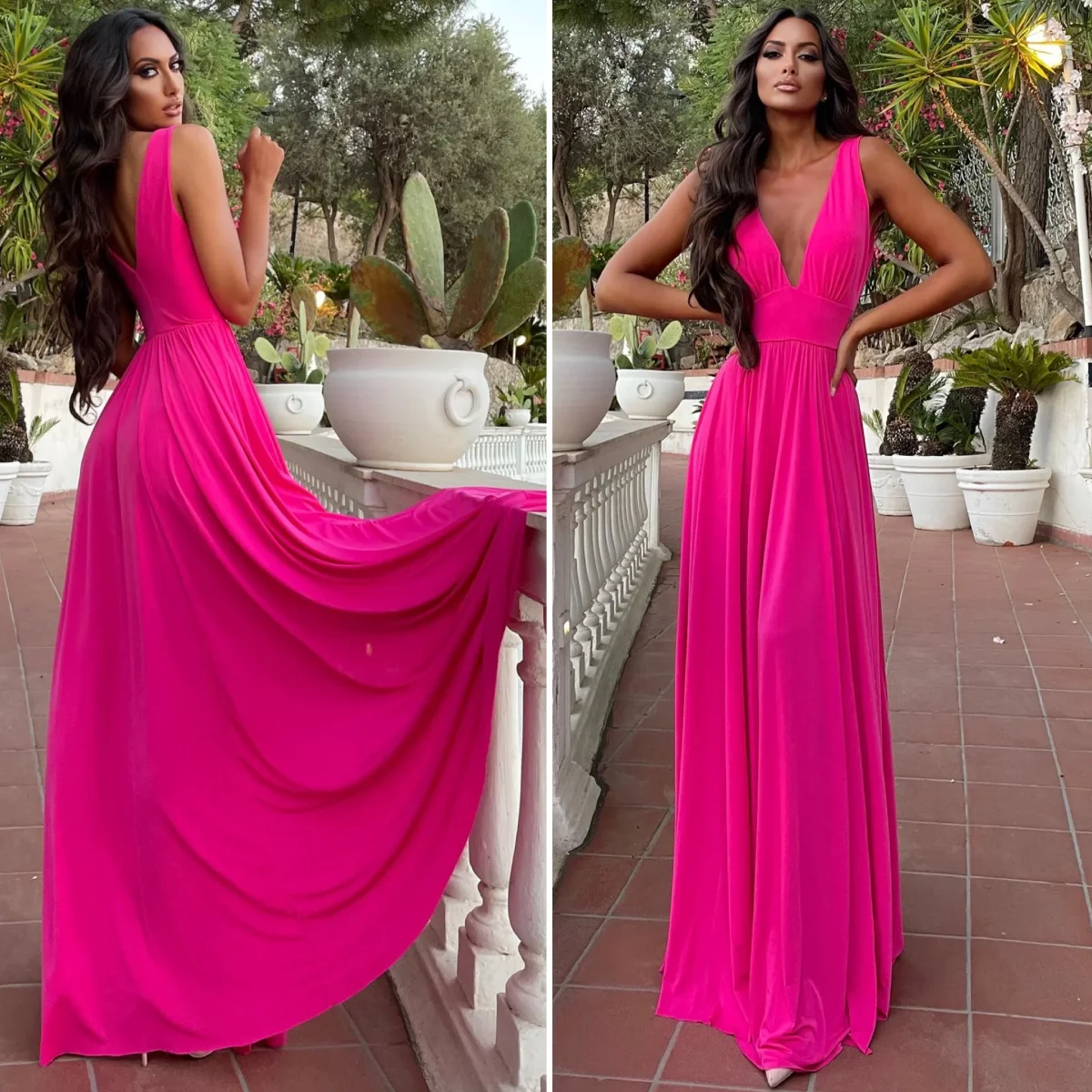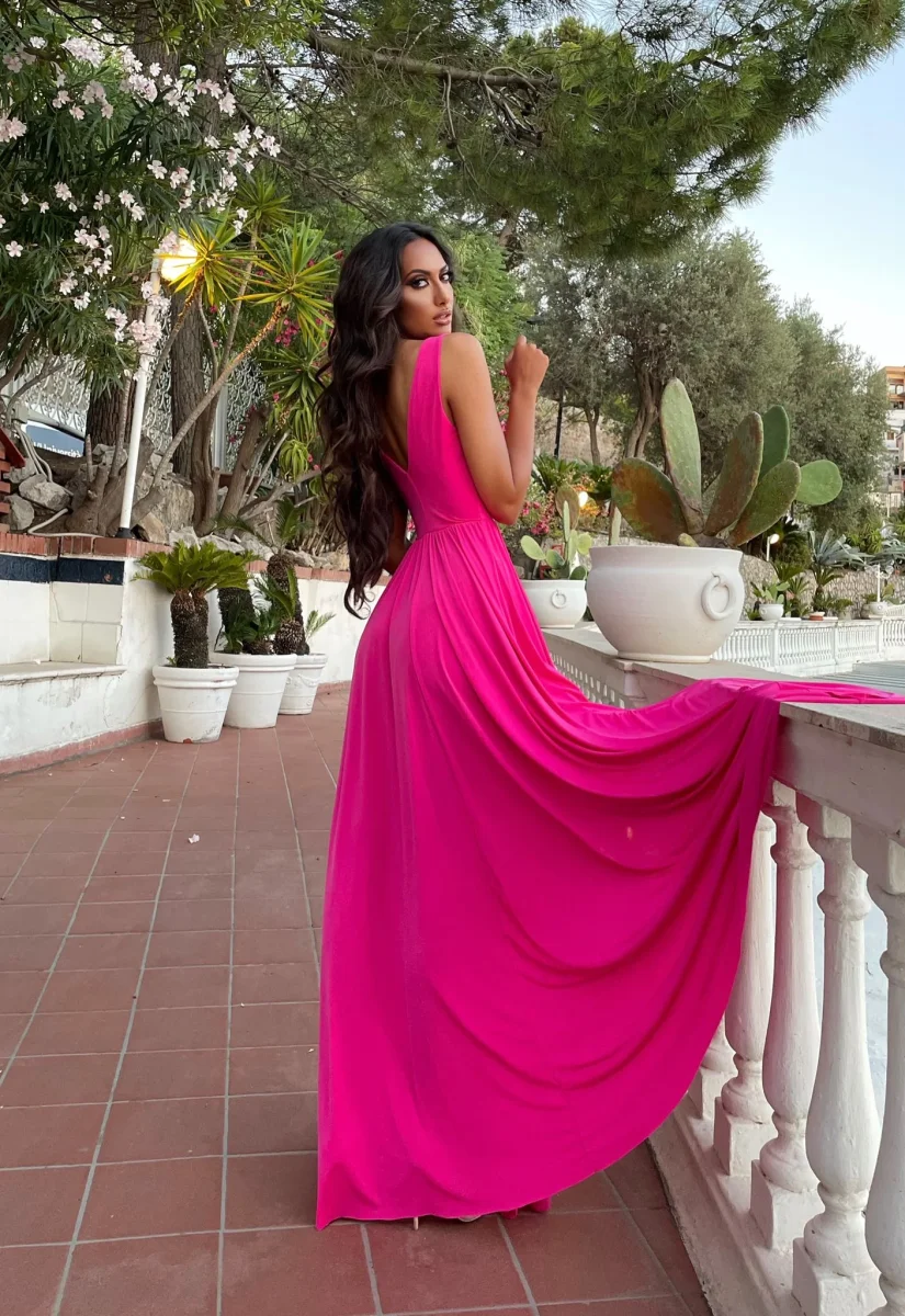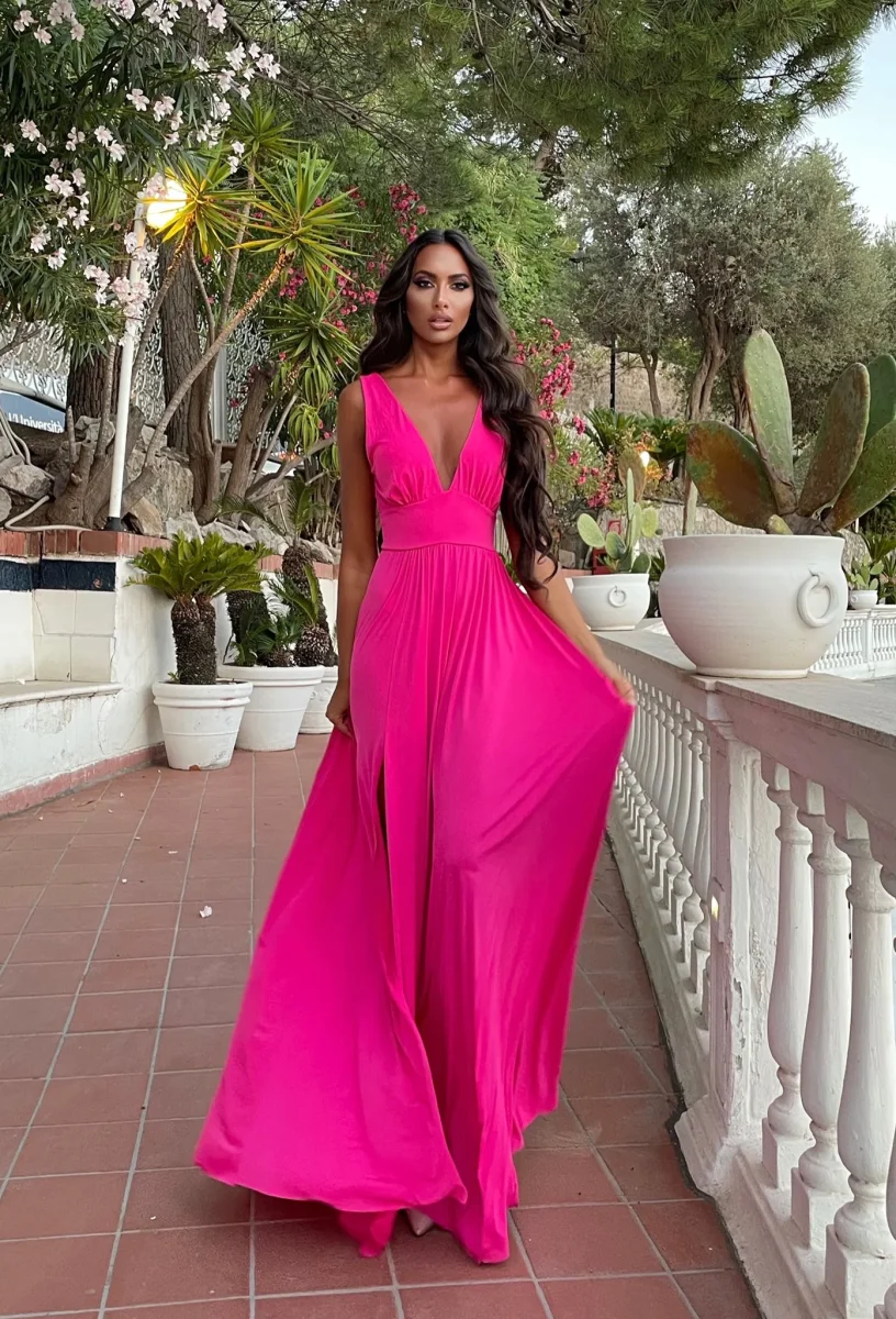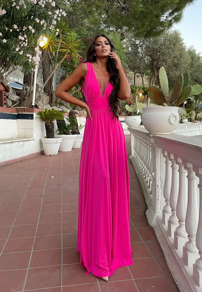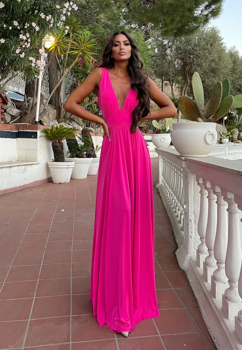 Abito lungo con maxi gonna e scollo a V elasticizzato sotto il seno