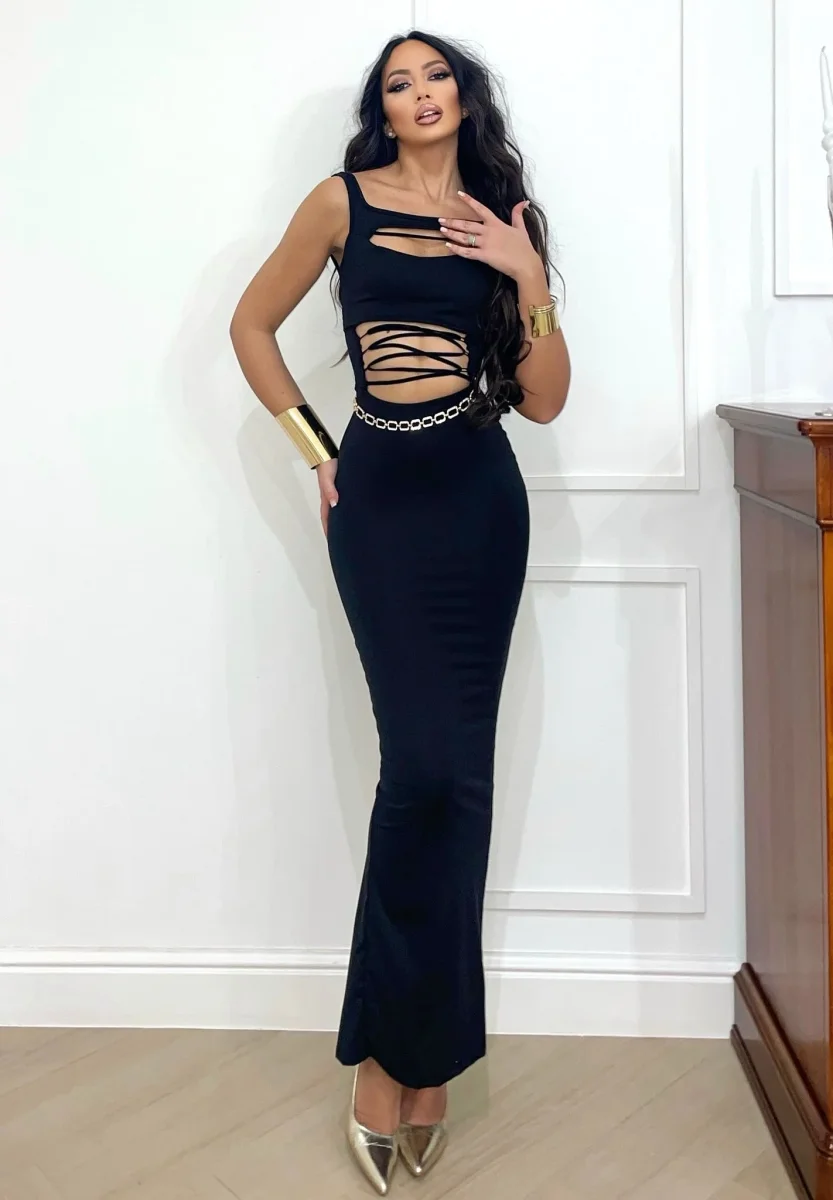 Abito in lycra aderente e elasticizzato super seducente. Spacco nel dietro e lacci avanti e dietro