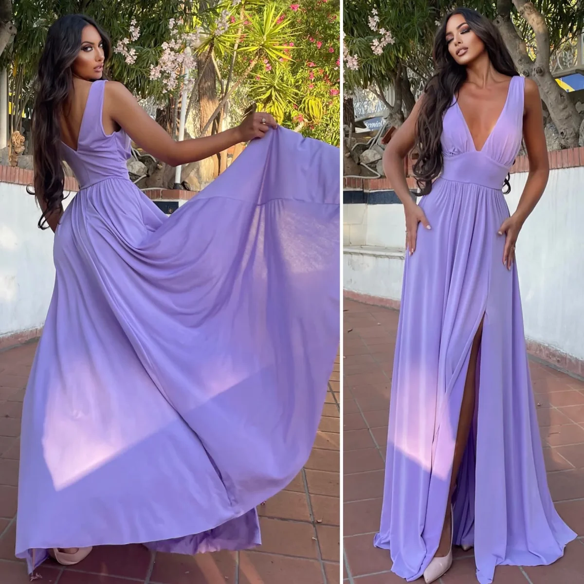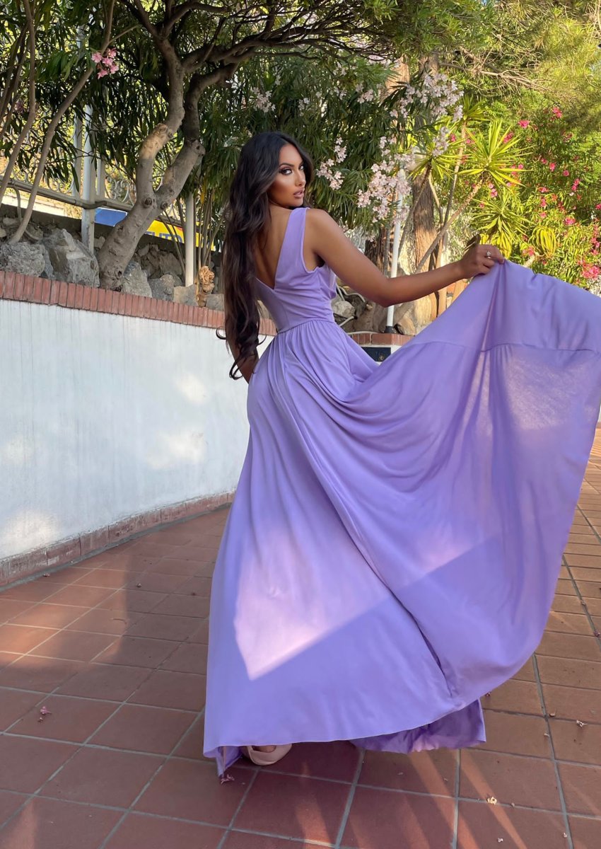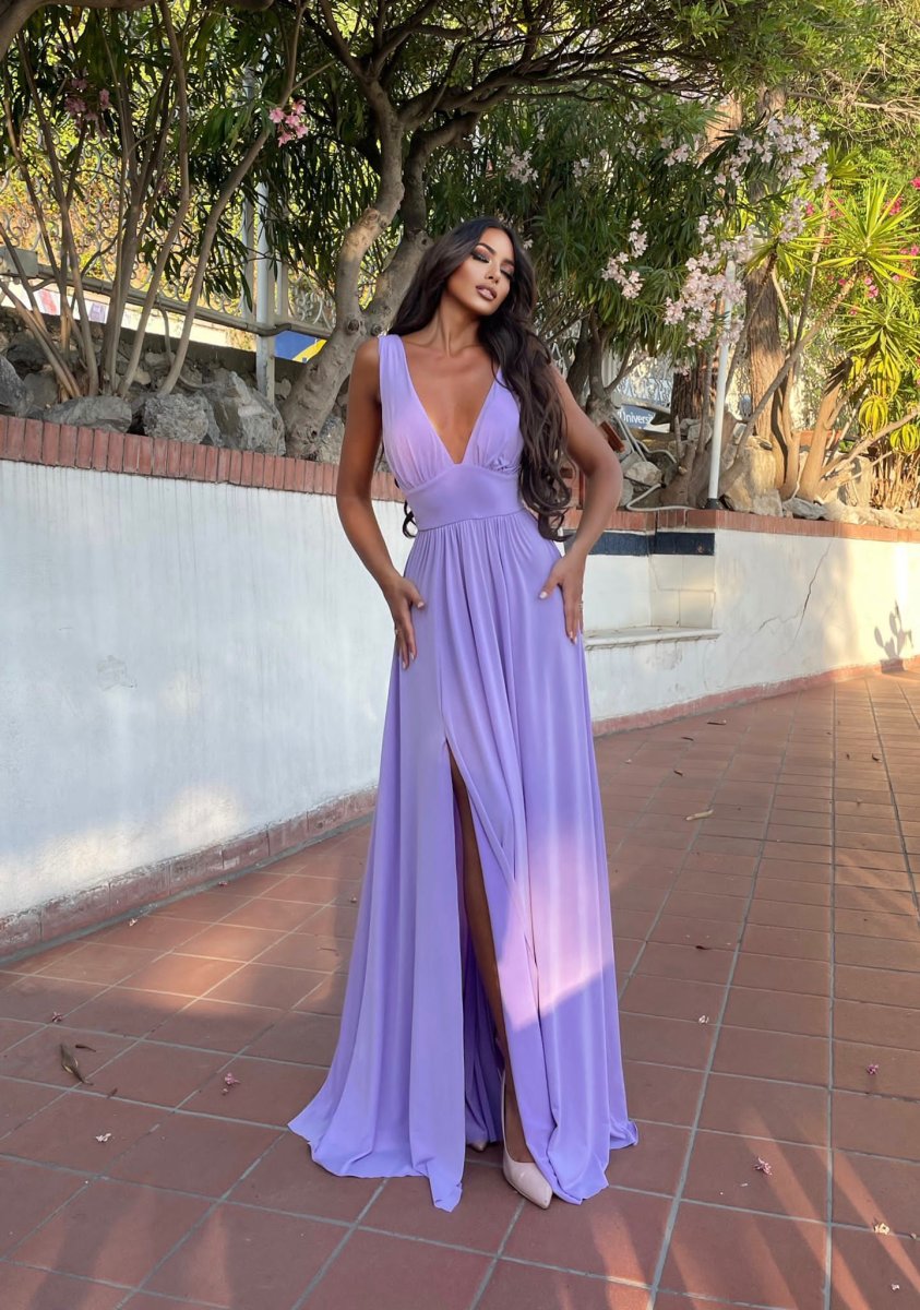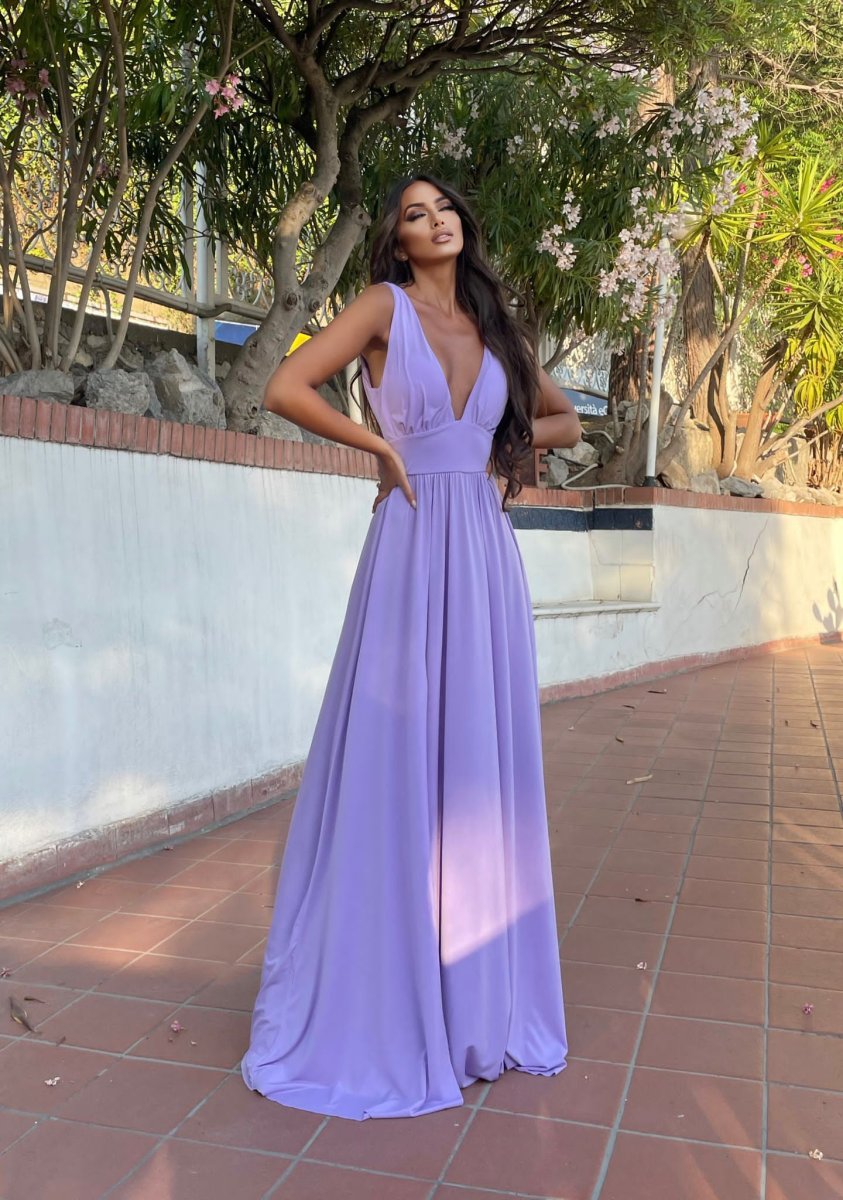 Abito lungo con maxi gonna e scollo a V elasticizzato sotto il seno