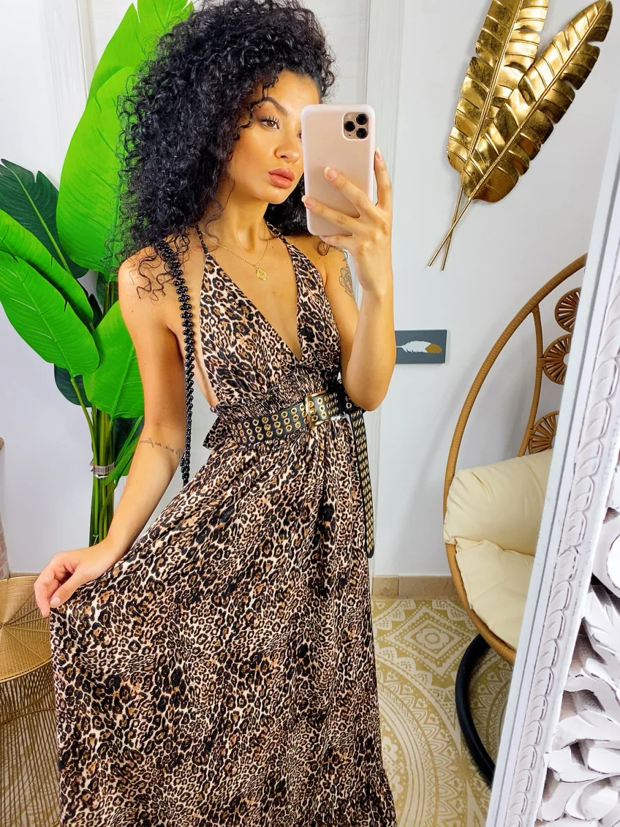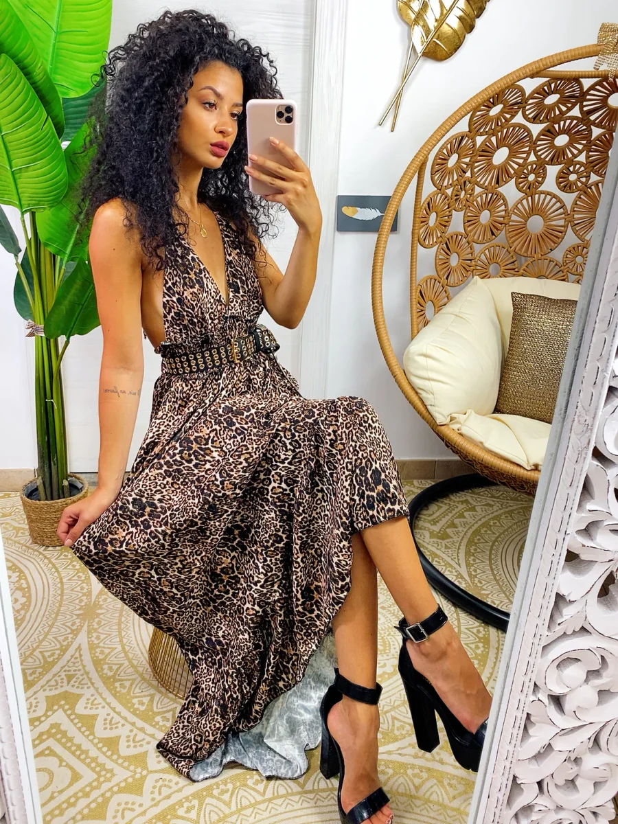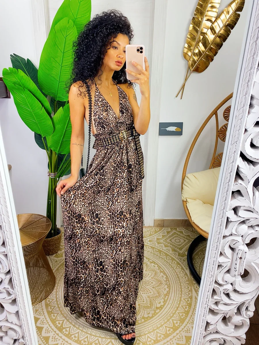 Abito lungo maculato con schiena aperta