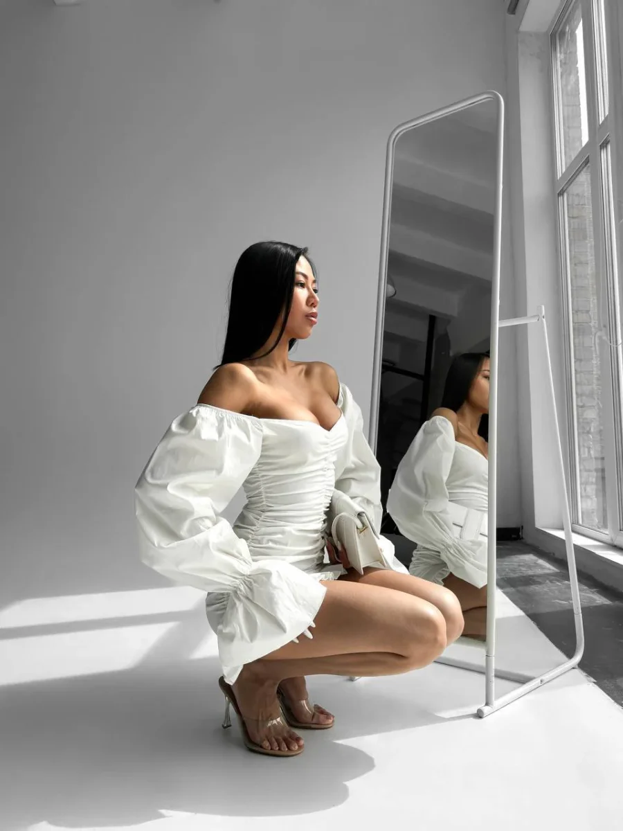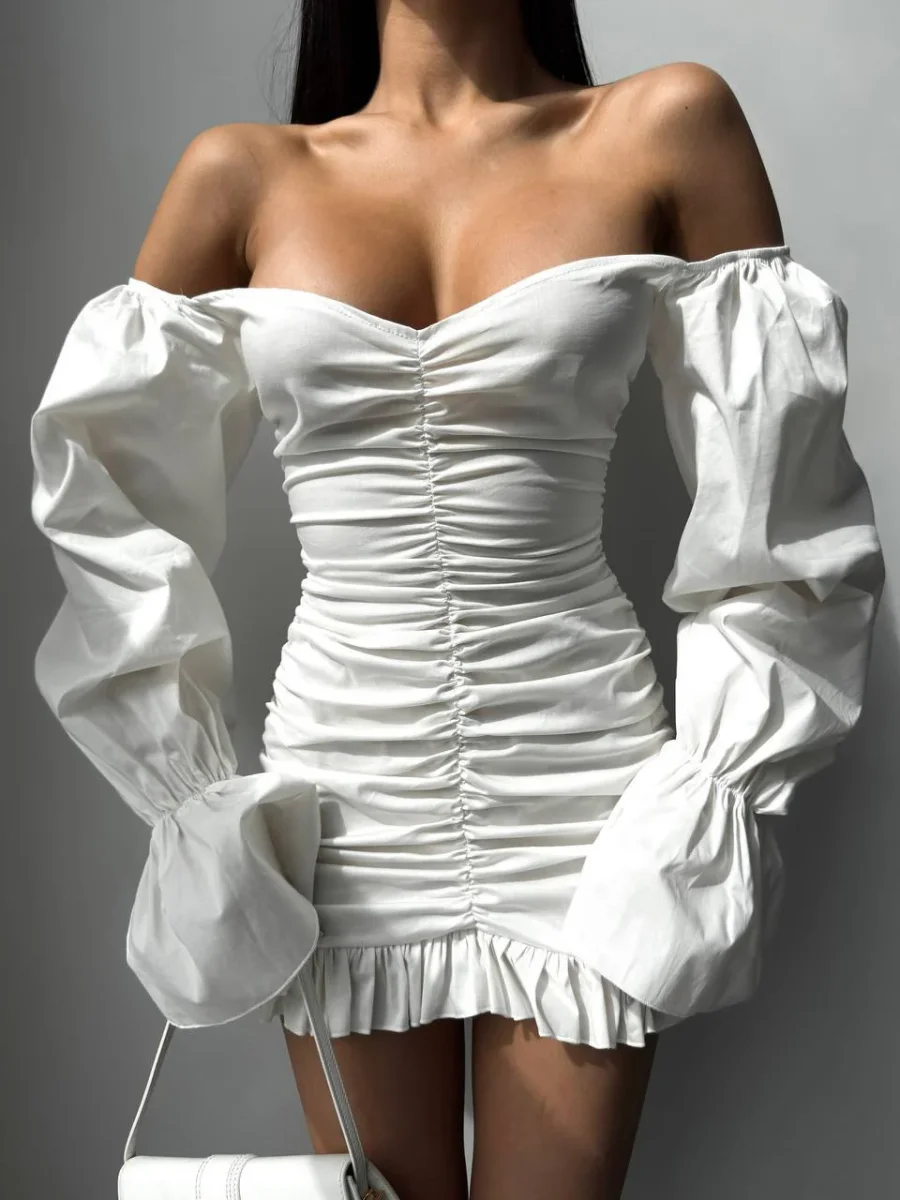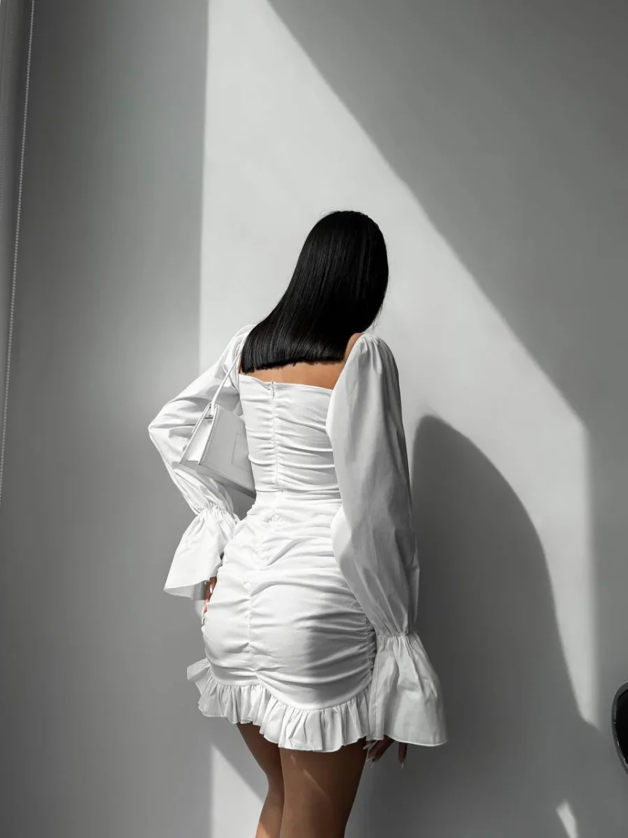 Abito in cotone 100% con zip nel dietro, arricciatura sul davanti e manica lunga. Tessuto molto fresco