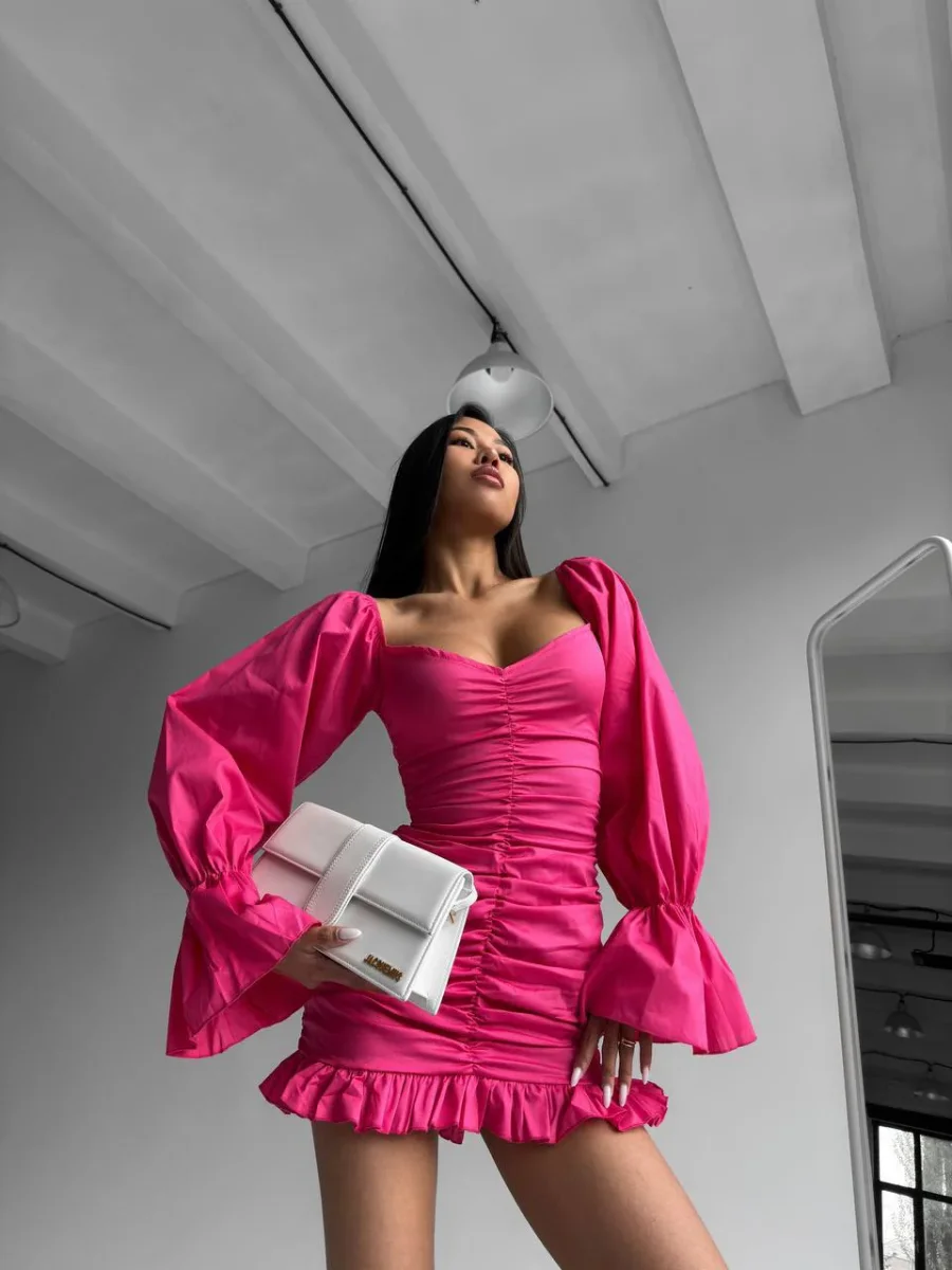 Abito manica lunga con arricciatura lampone