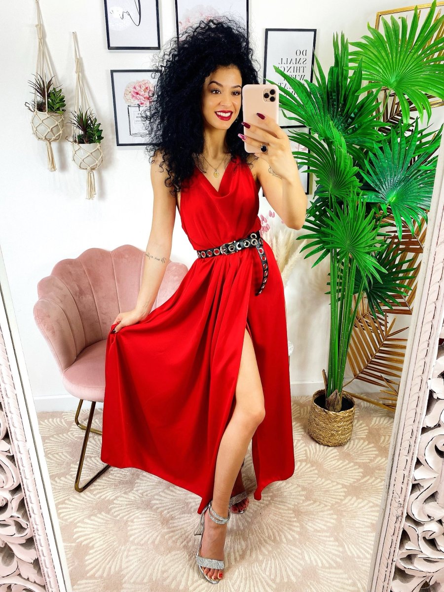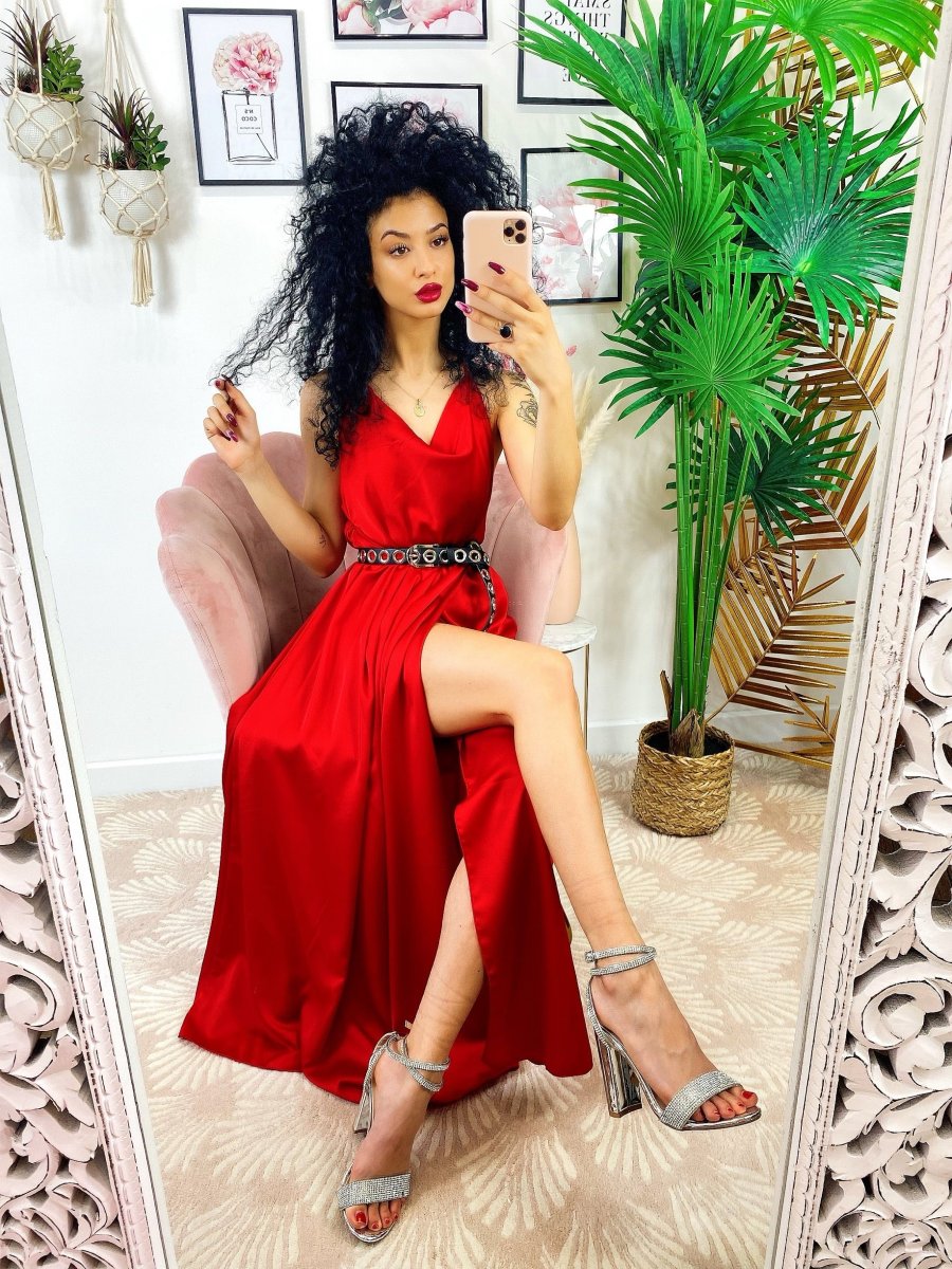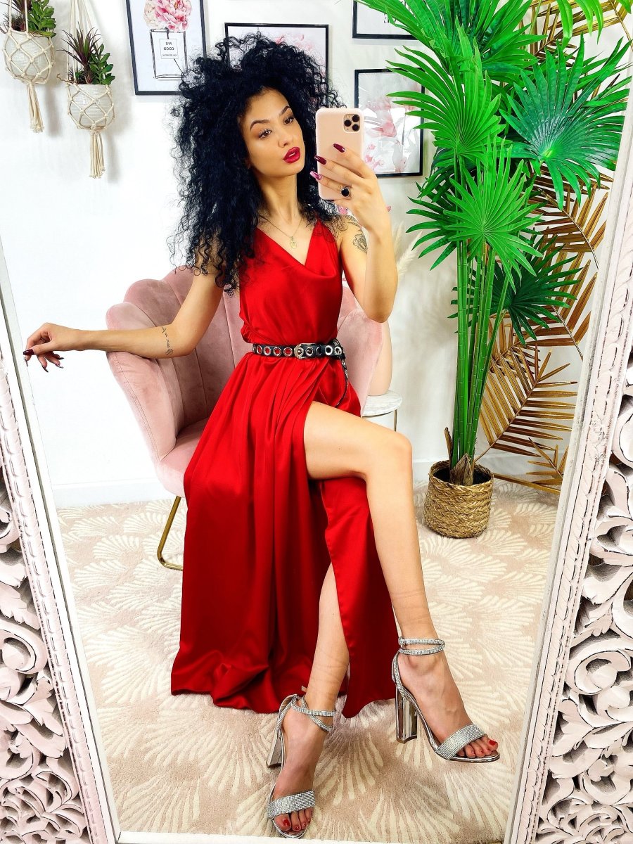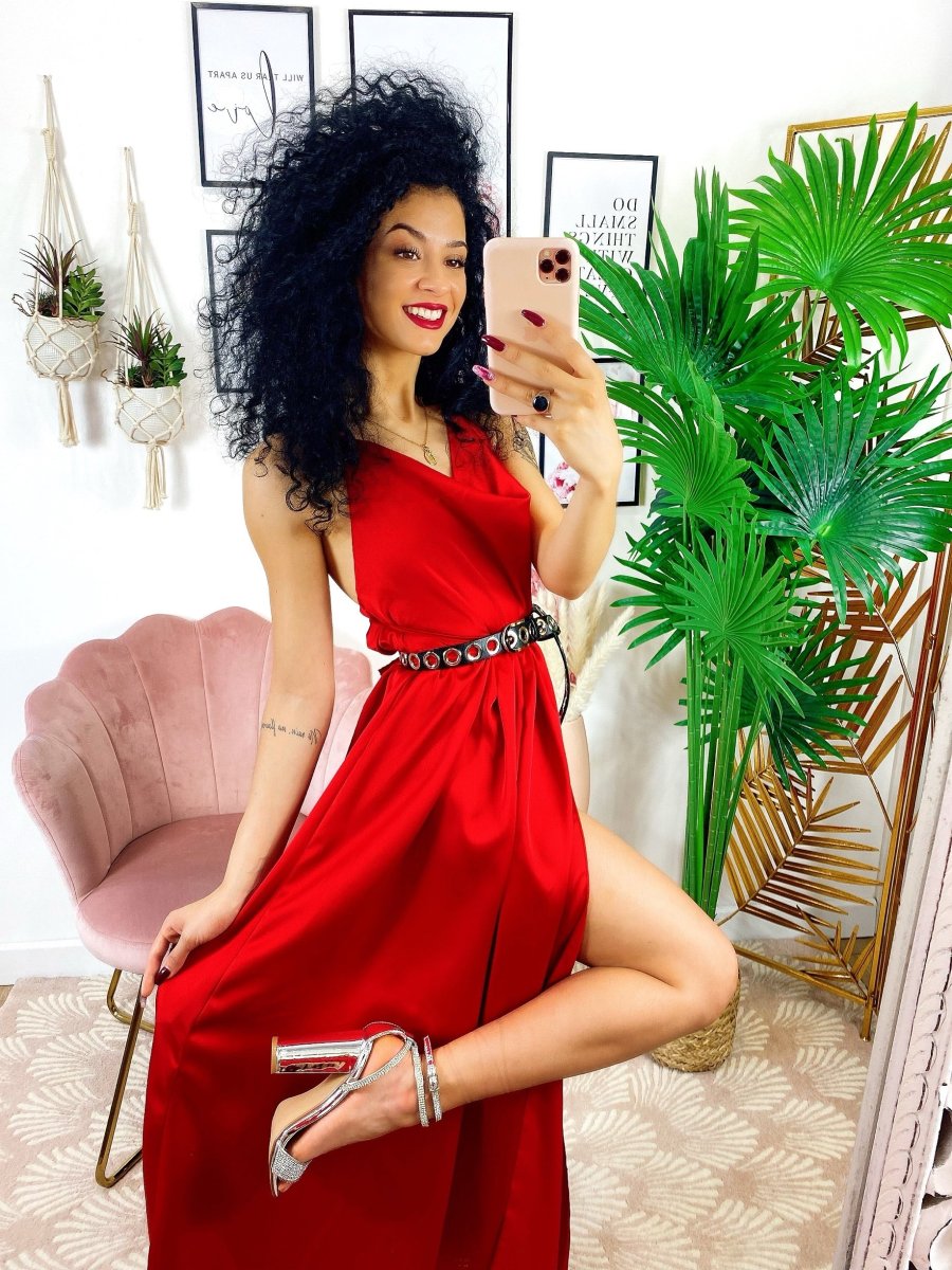 Abito in raso con maxi spacco di alta qualità. Fantastico abito molto lungo da indossare con un bel tacco per le serate più glamour. Tira fuori la tua sensualità e voglia di essere donna, sarai la più amata della serata !!