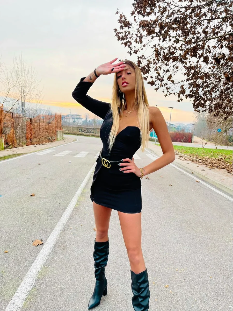 Abito monospalla con coppe e chiusura con zip aderente e elasticizzato.