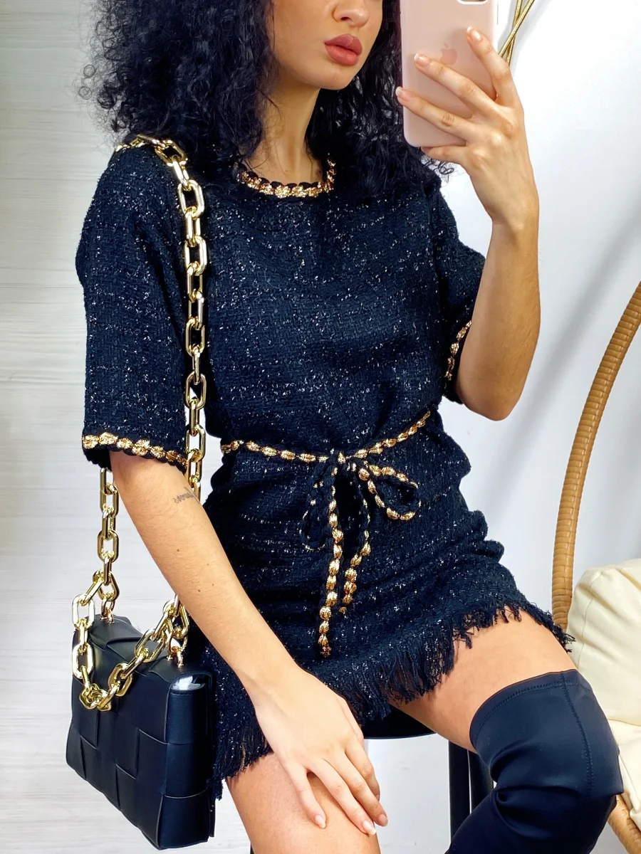 Abito morbido con dettagli oro