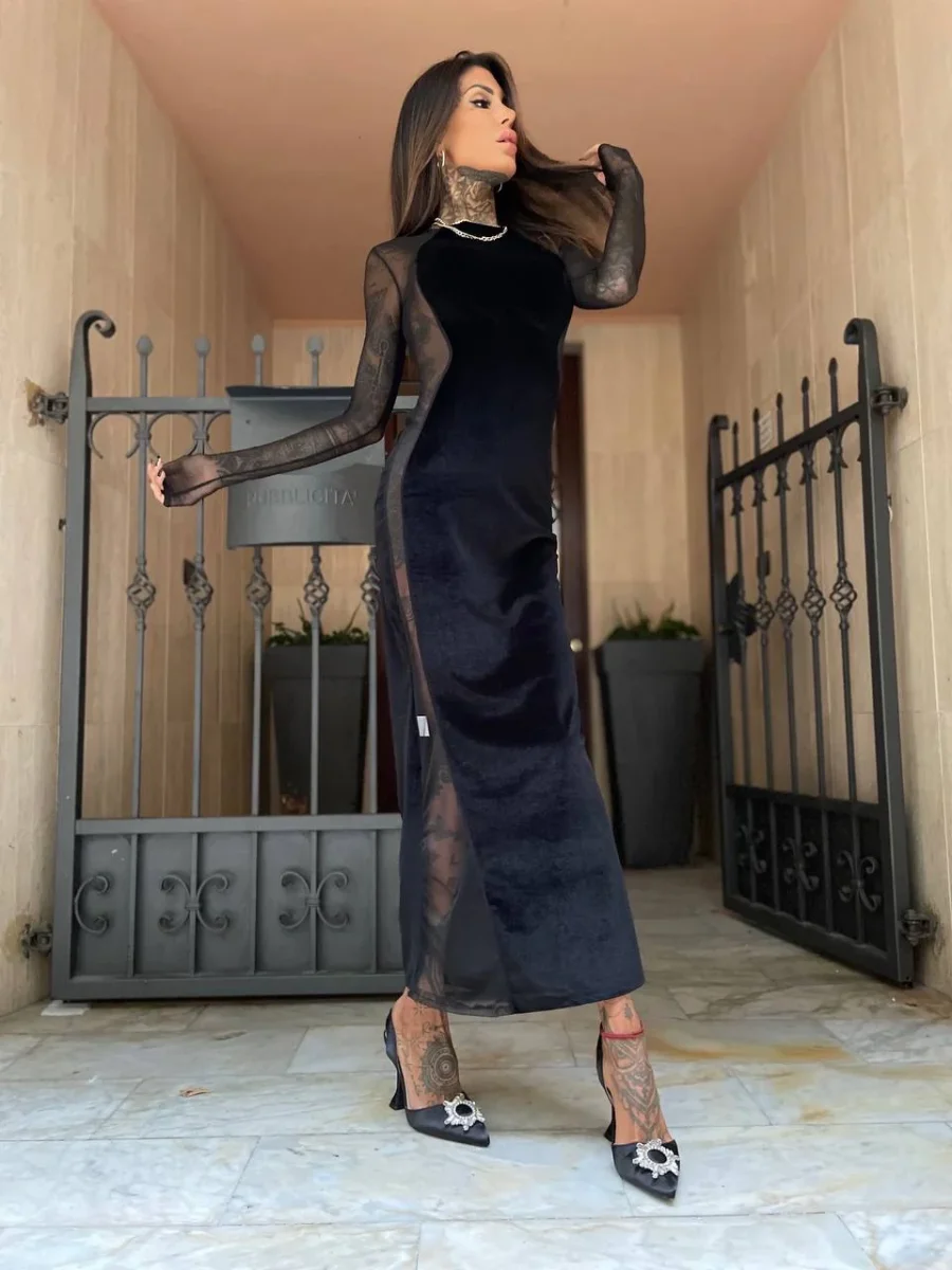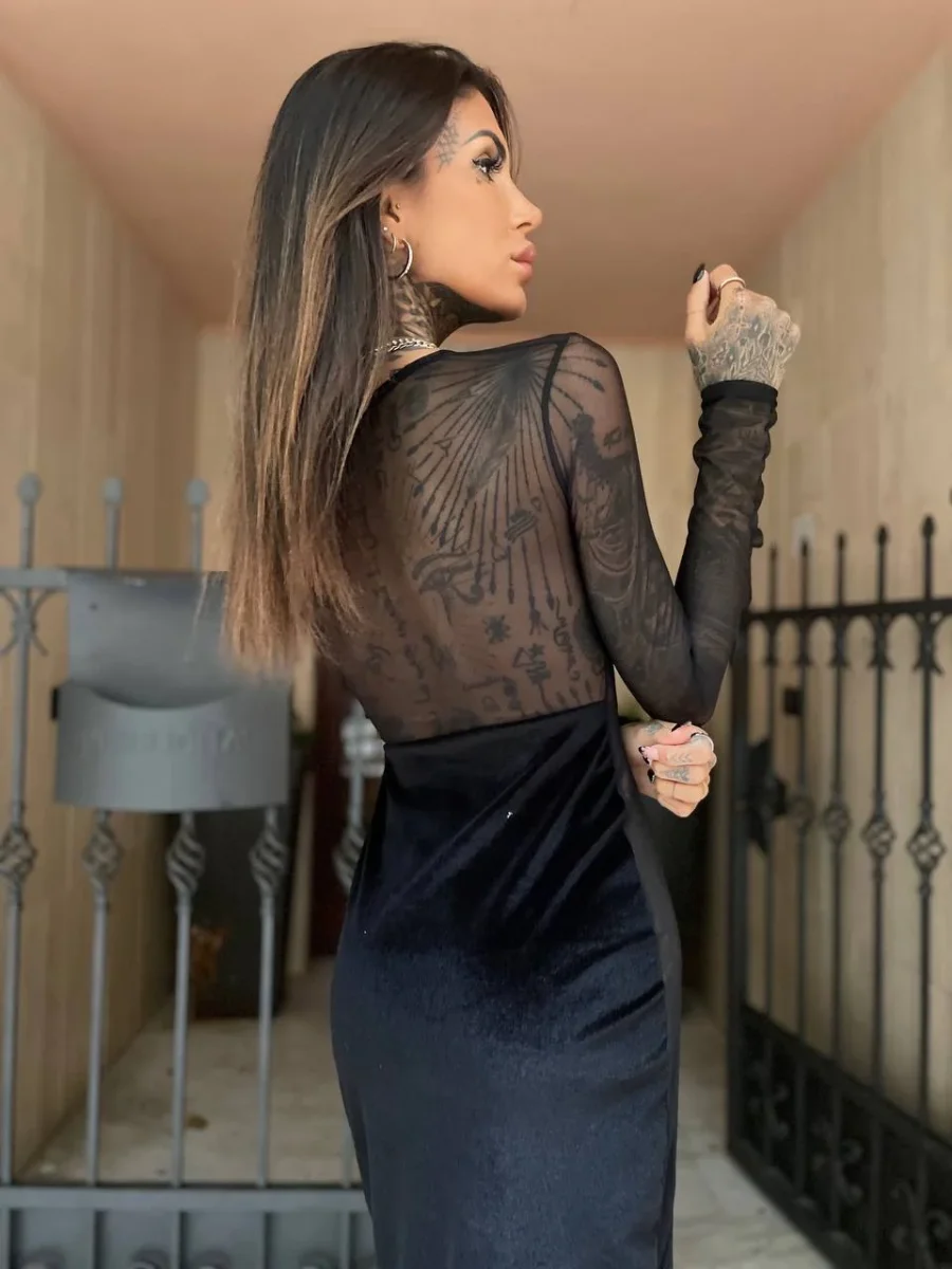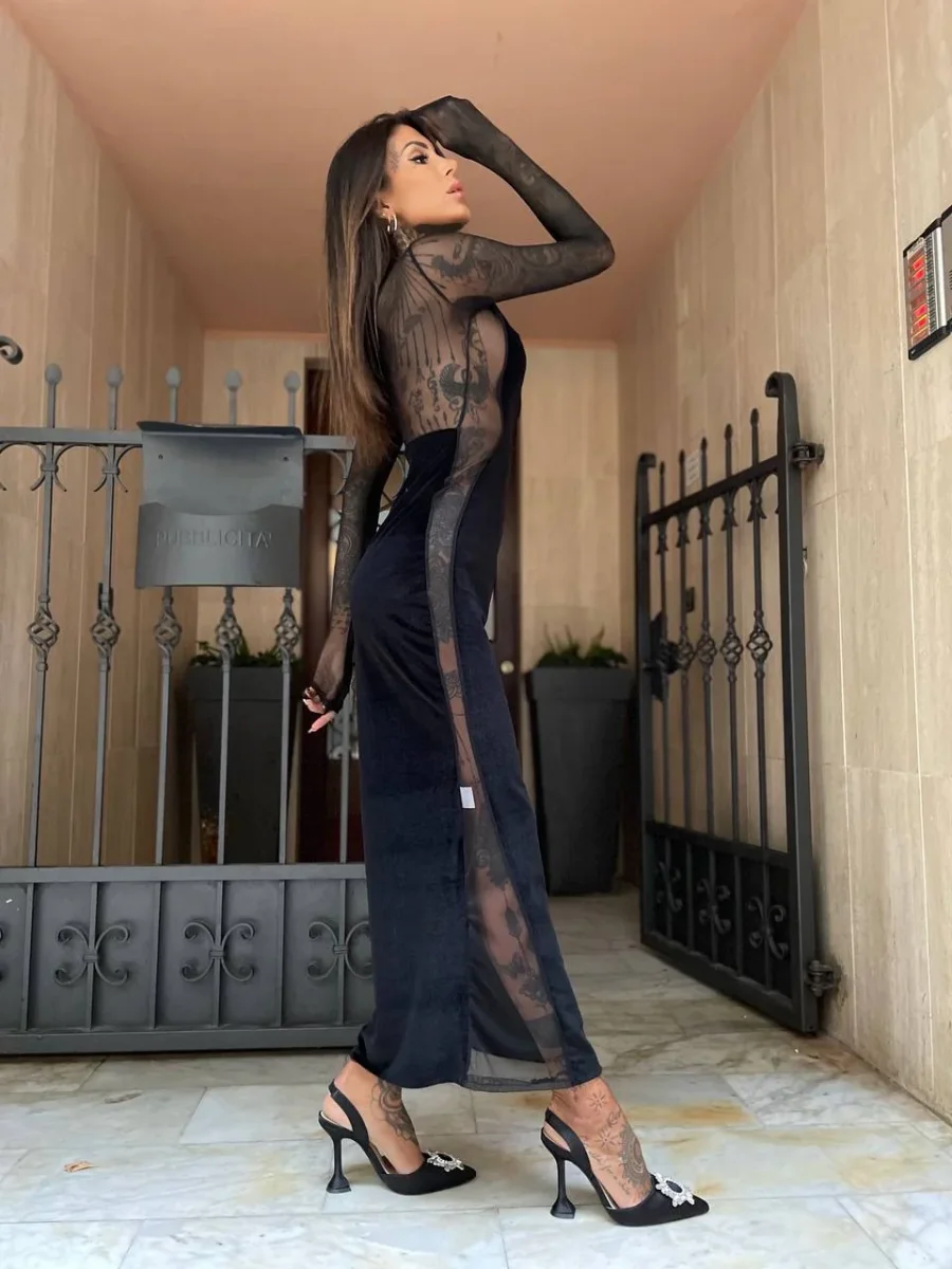 Abito nero aderente super sensuale e sexy con queste trasparenze