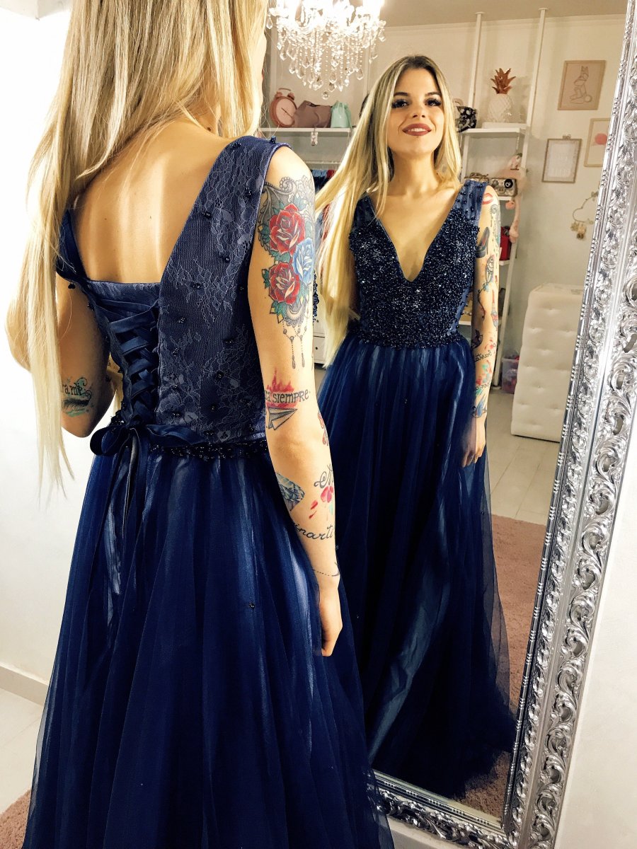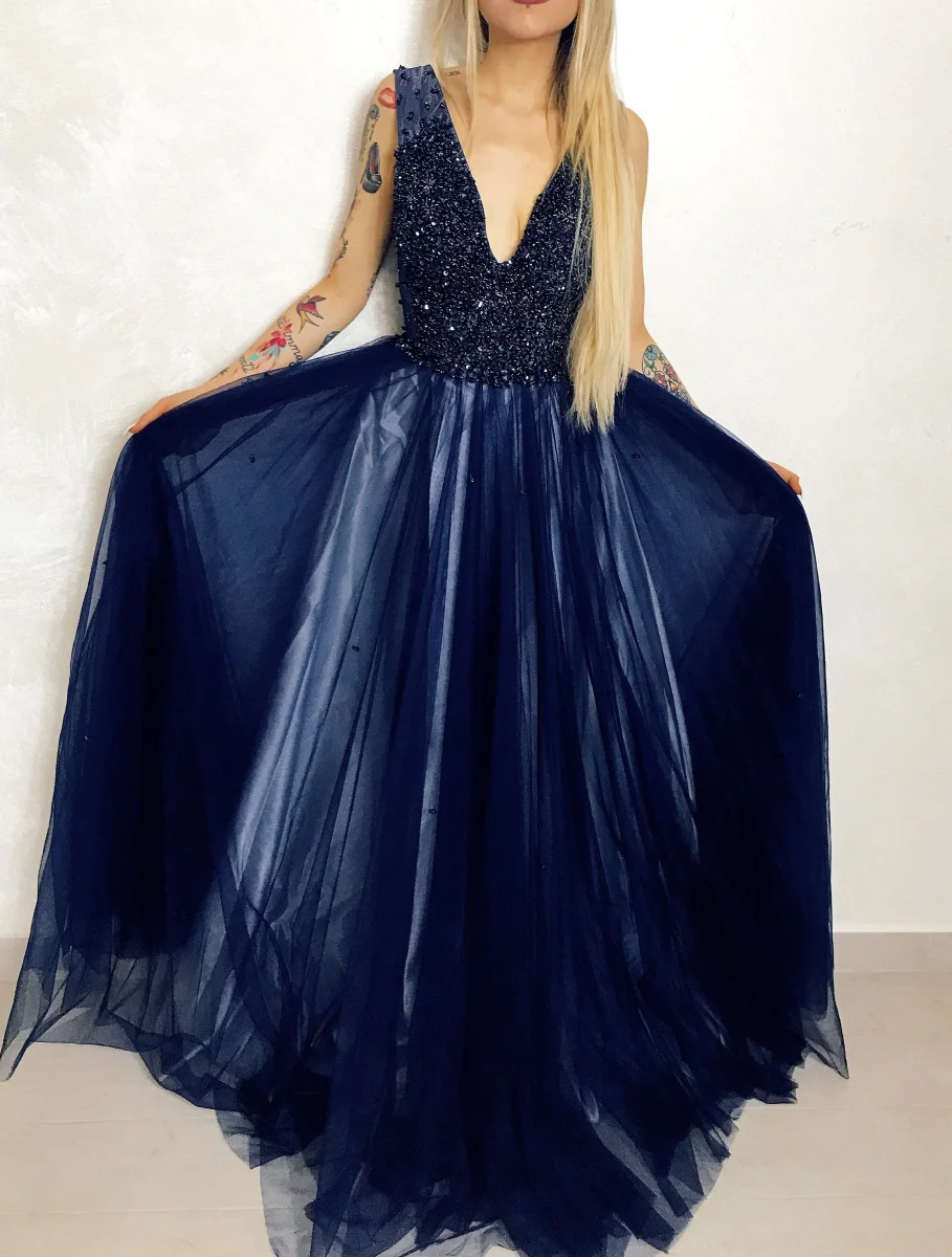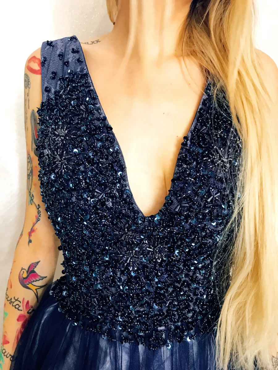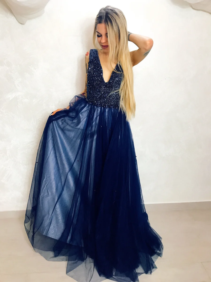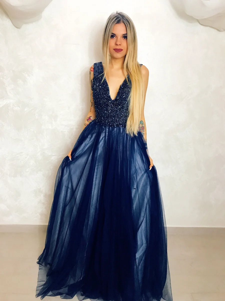 L’abito giusto per sentirti una principessa. Corpetto pienissimi di lustrini e perline. Maxi gonna in tulle e lunga.