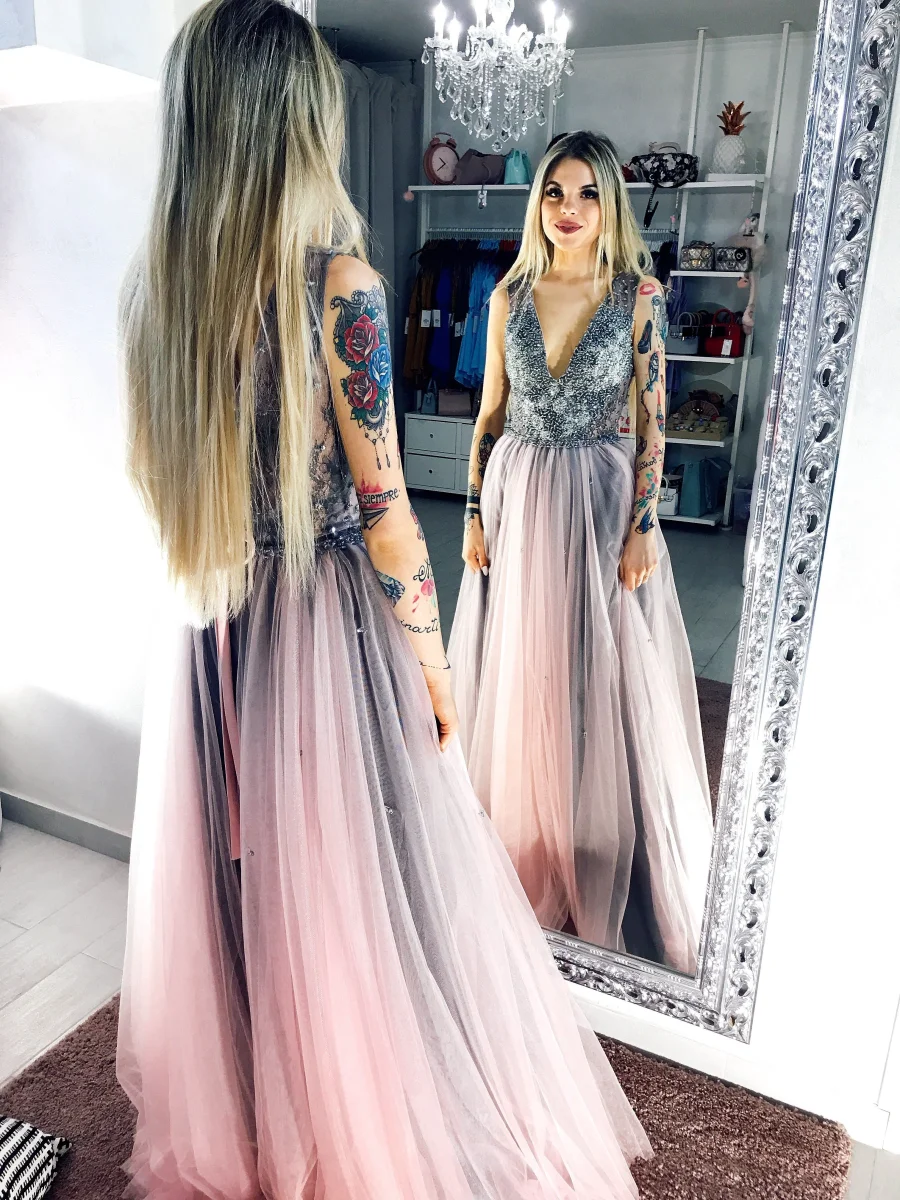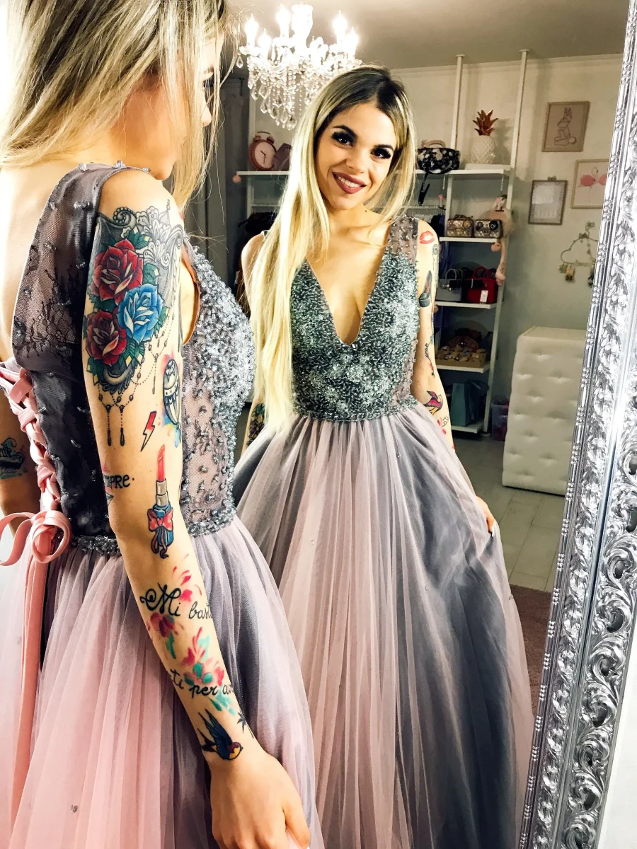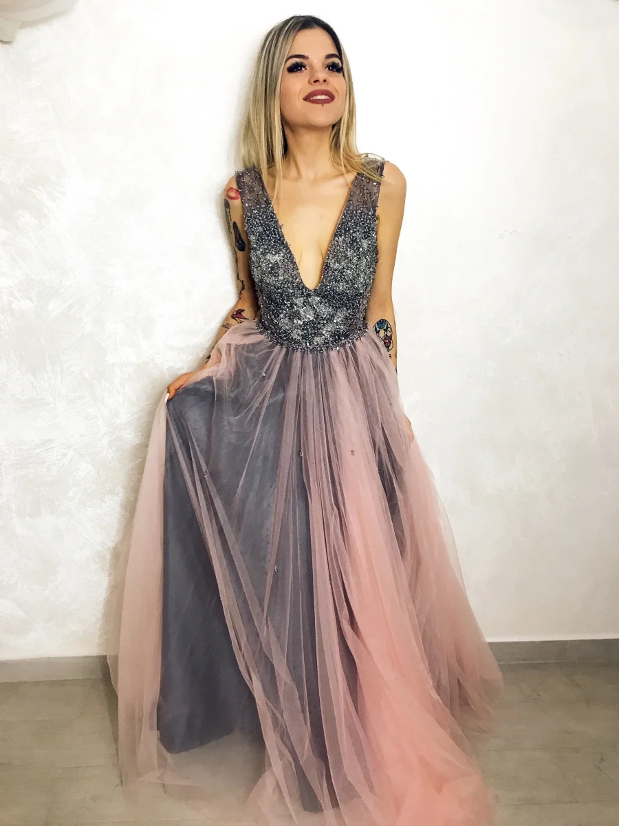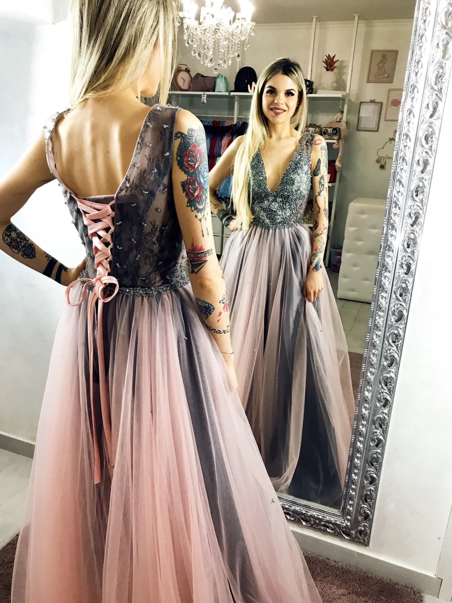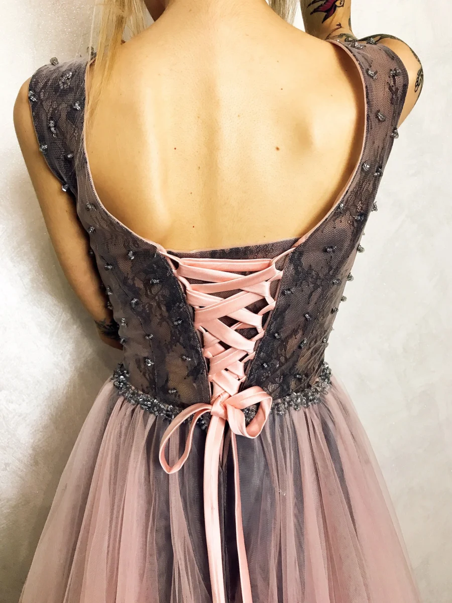 Vuoi sentirti una principessa? Non potresti scegliere abito migliore. Ampissima gonna in tulle e schiena a bustino.