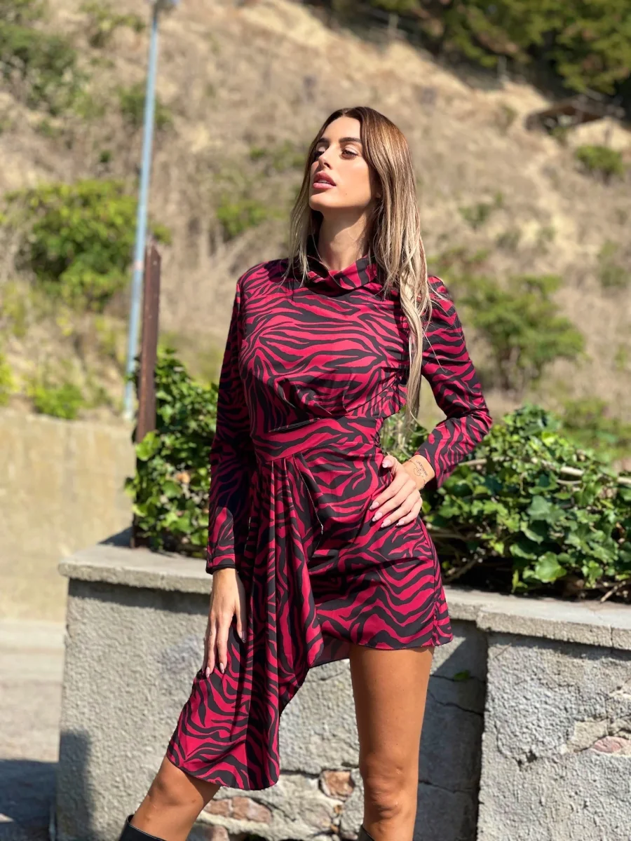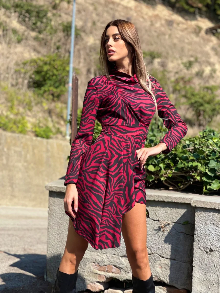 Abito effetto zebrato rosso nero con schiena aperta. Fusciacca
