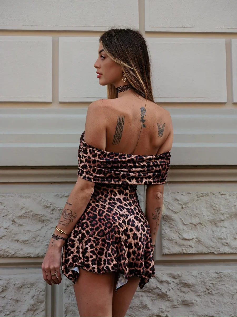 Abito in lycra senza coppe con scollo a barca e drappeggio sulla manica, gonna a V e vita accentuata