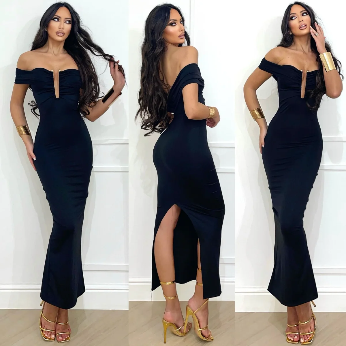 Abito in lycra aderente e elasticizzato con scollo a barchetta con coppe e scollo a U con accessorio