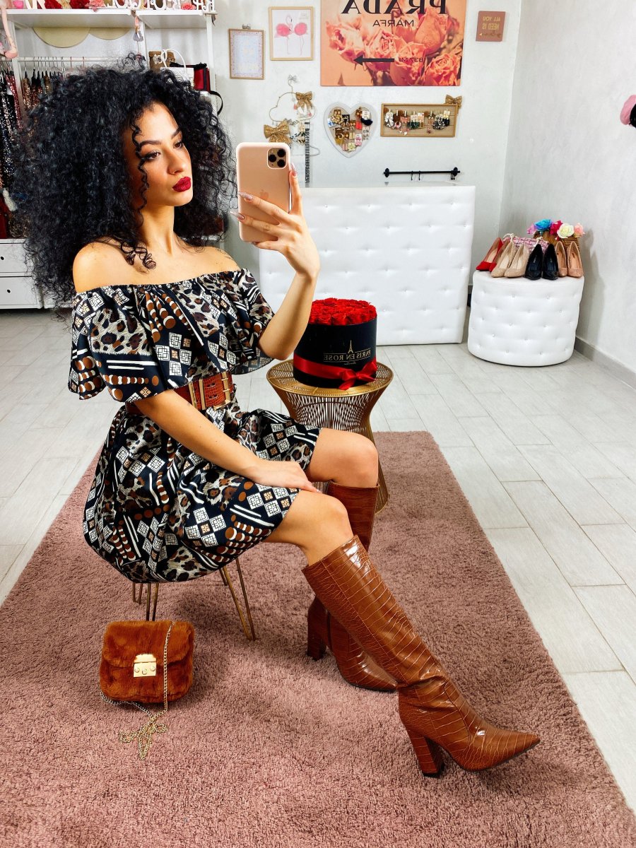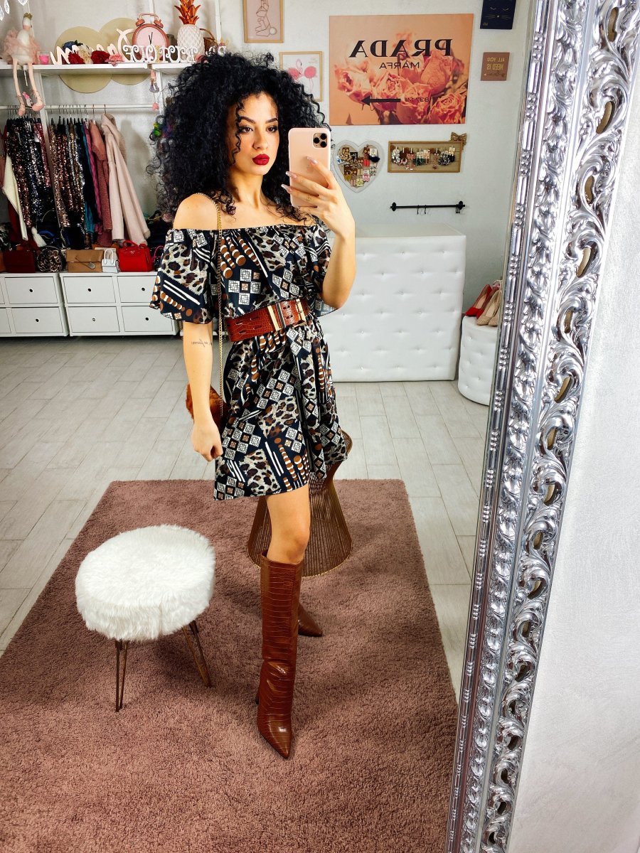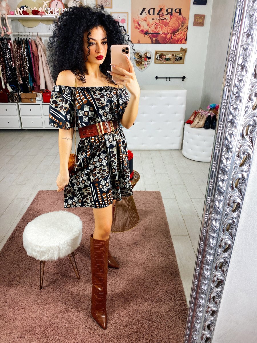 Recensisci per primo “Abito scollo a barchetta a fantasia maculata”