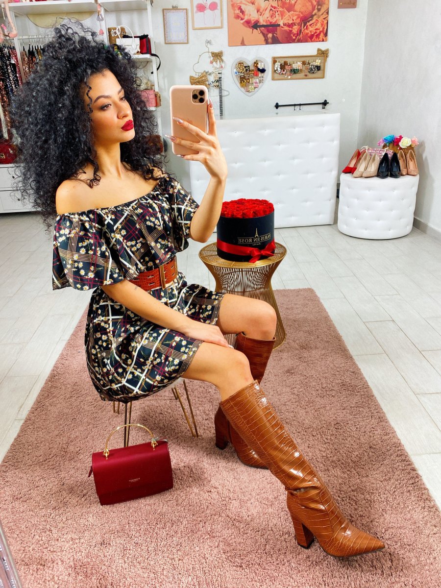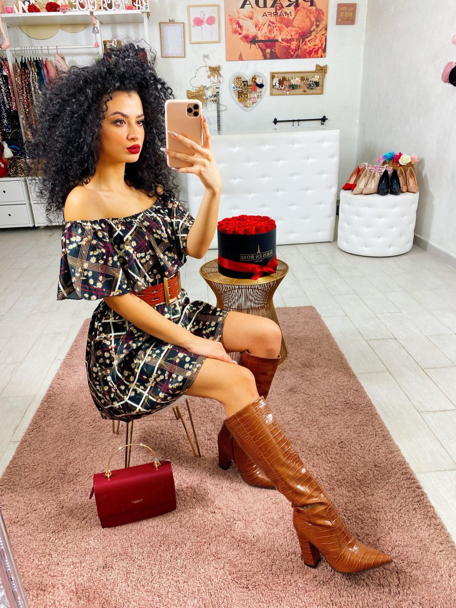 Abito in tessuto liscio elasticizzato. Fantasia autunnale.