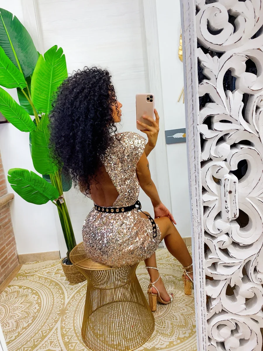 Tubino aderente con fodera. Schiena aperta con una maxi goccia.