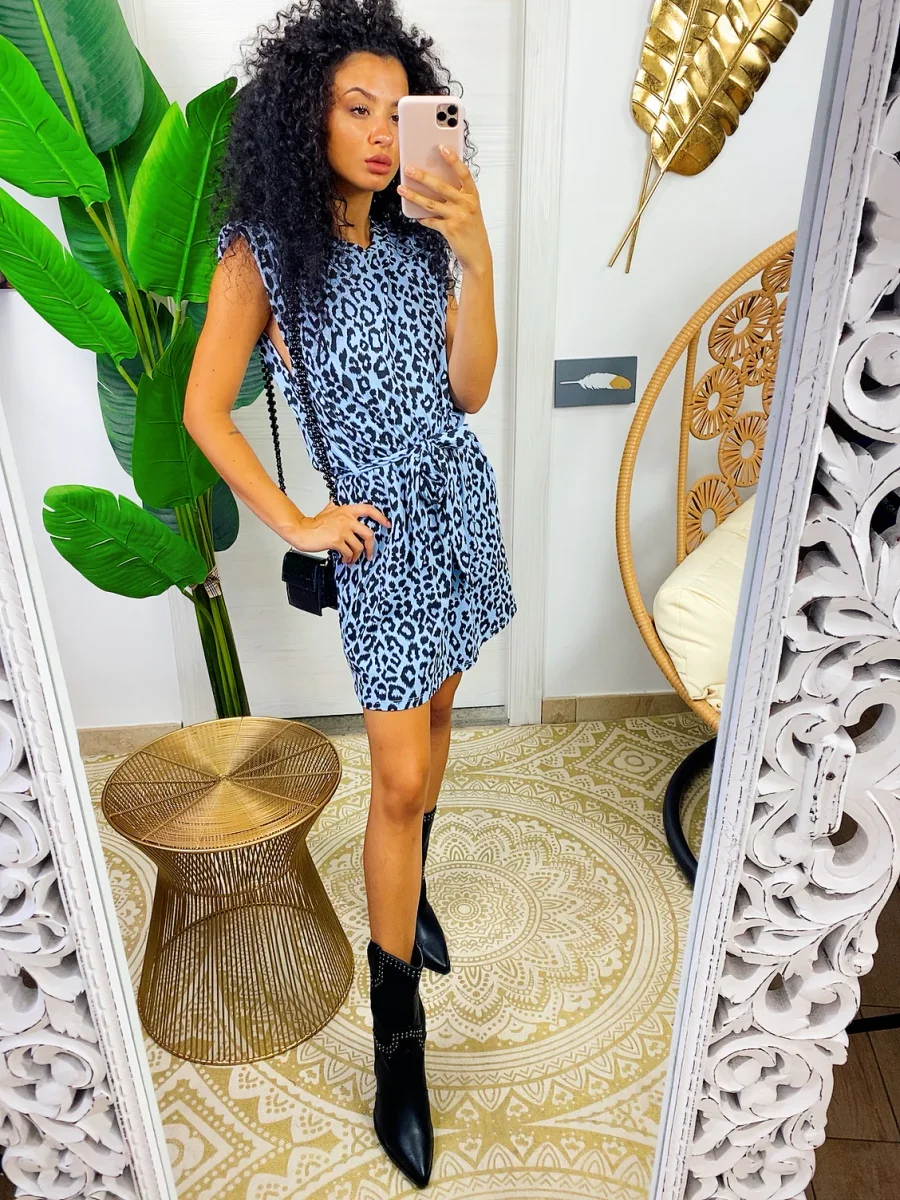 Abito sportivo in cotone garzato. Cintura inclusa staccabile. Taglia unica. Trama maculata