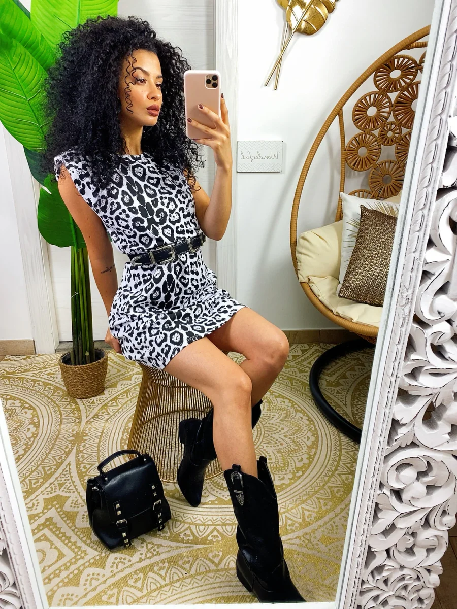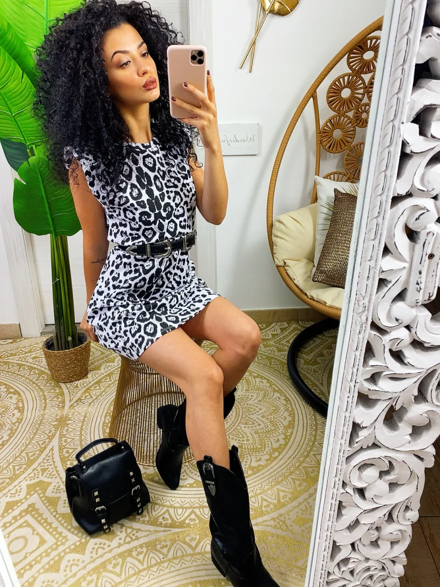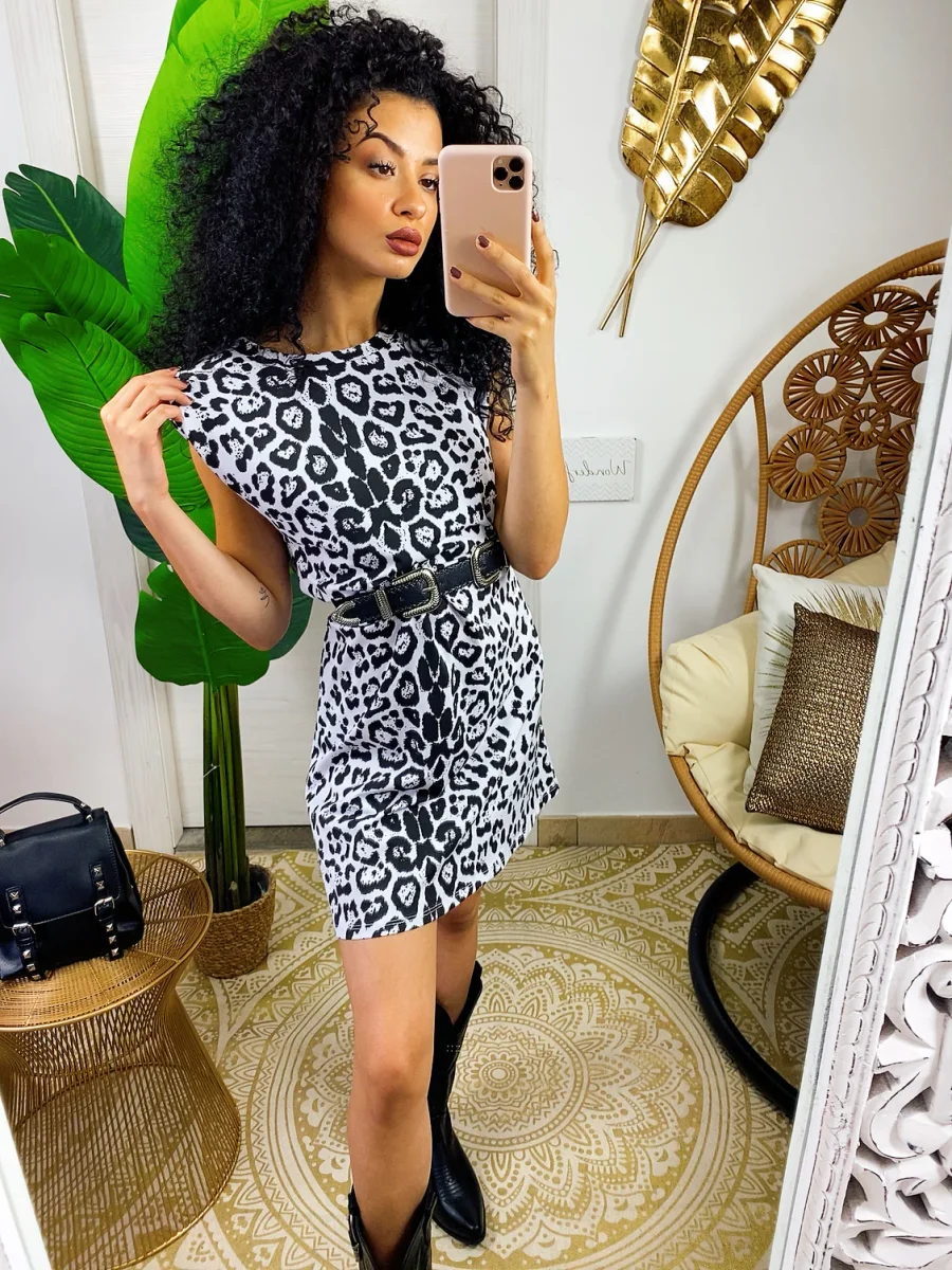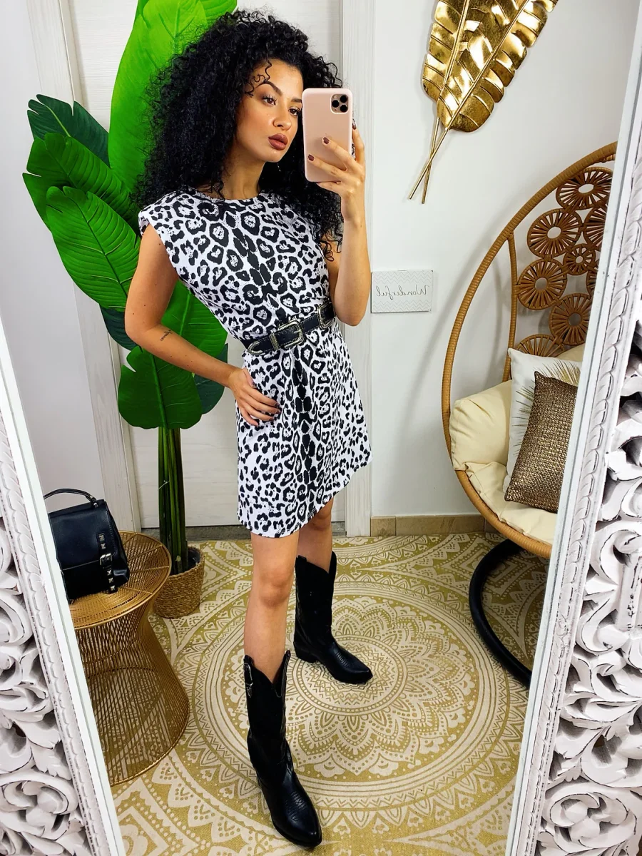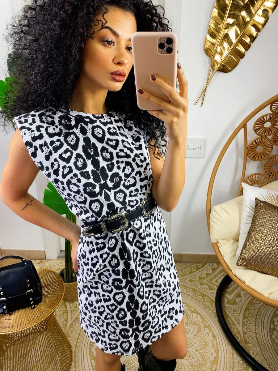 Abito sportivo in cotone garzato in trama maculata bianco e nero. Taglia unica.
