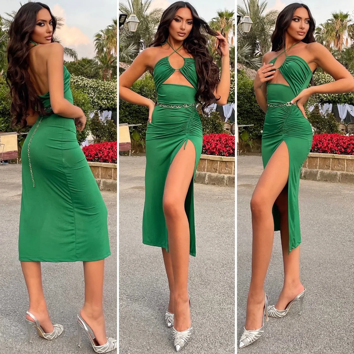 Abito carta da zucchero lungo con incrocio regolabile, senza coppe elasticizzato