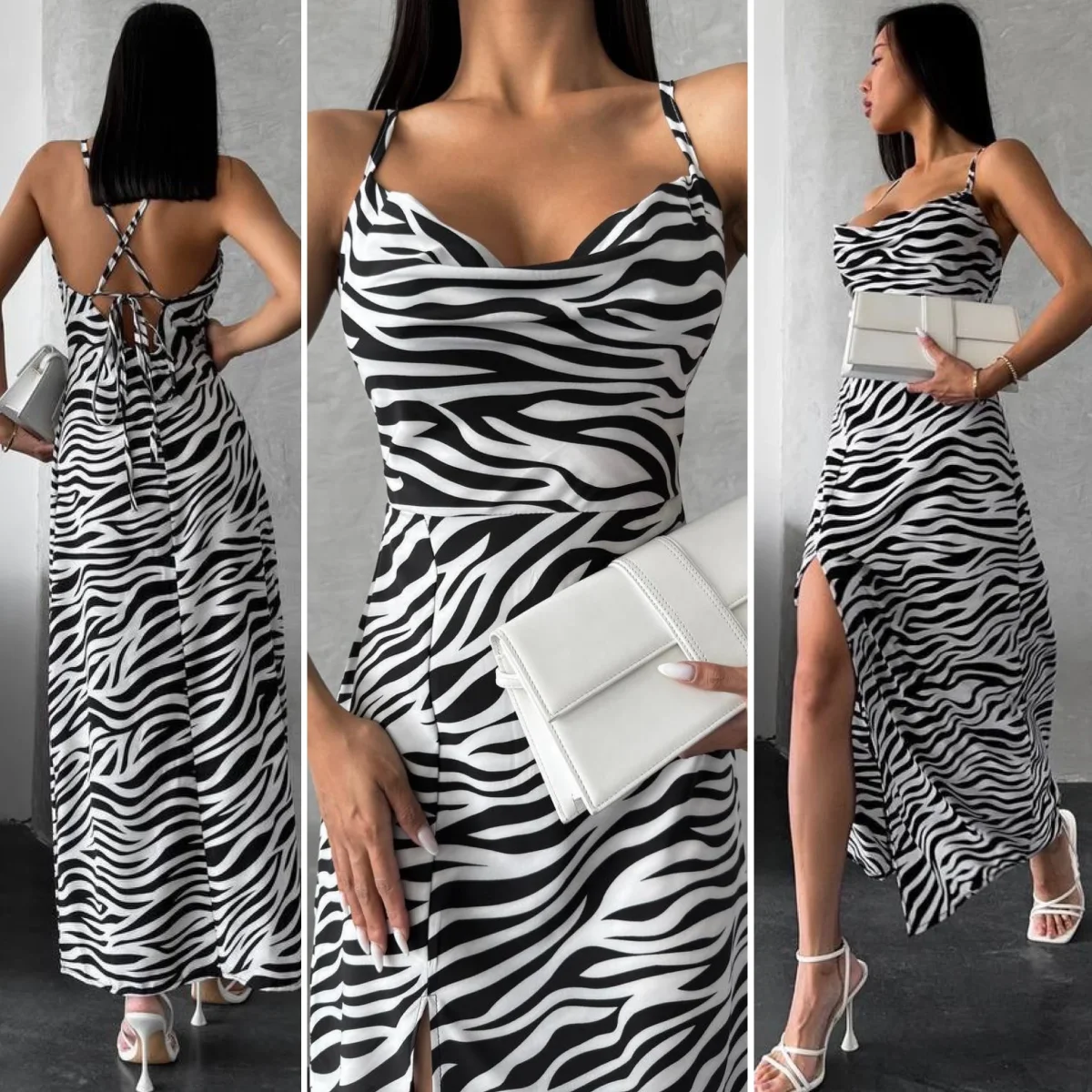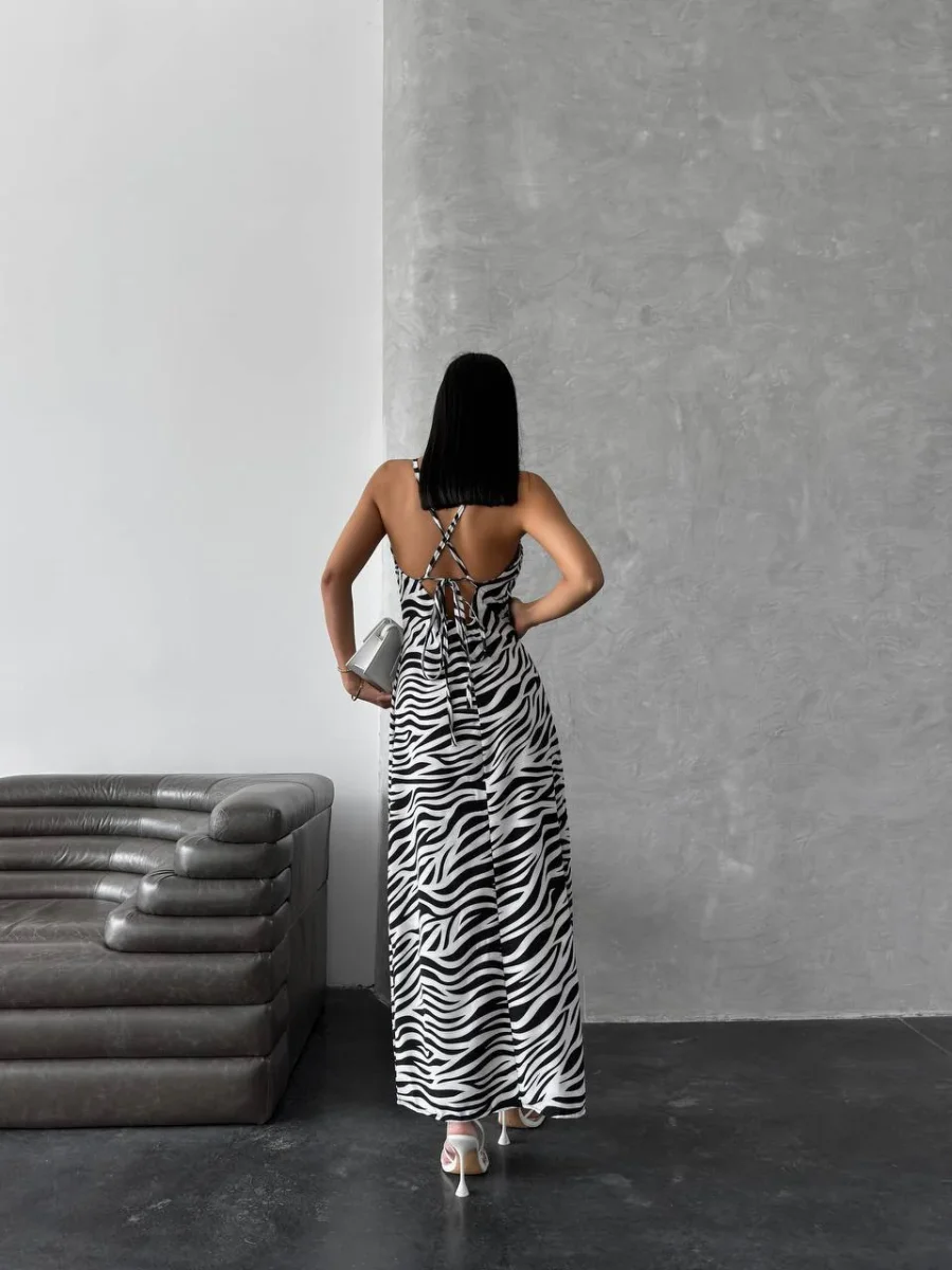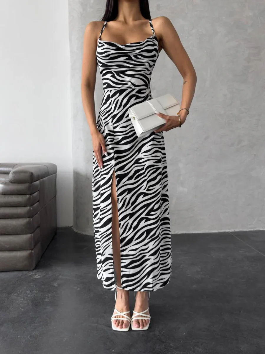 Affascinante con uno spacco sulla gamba e la schiena scoperta, una stampa attuale . Ti promettiamo che diventerà il tuo vestito preferito quest’estate.