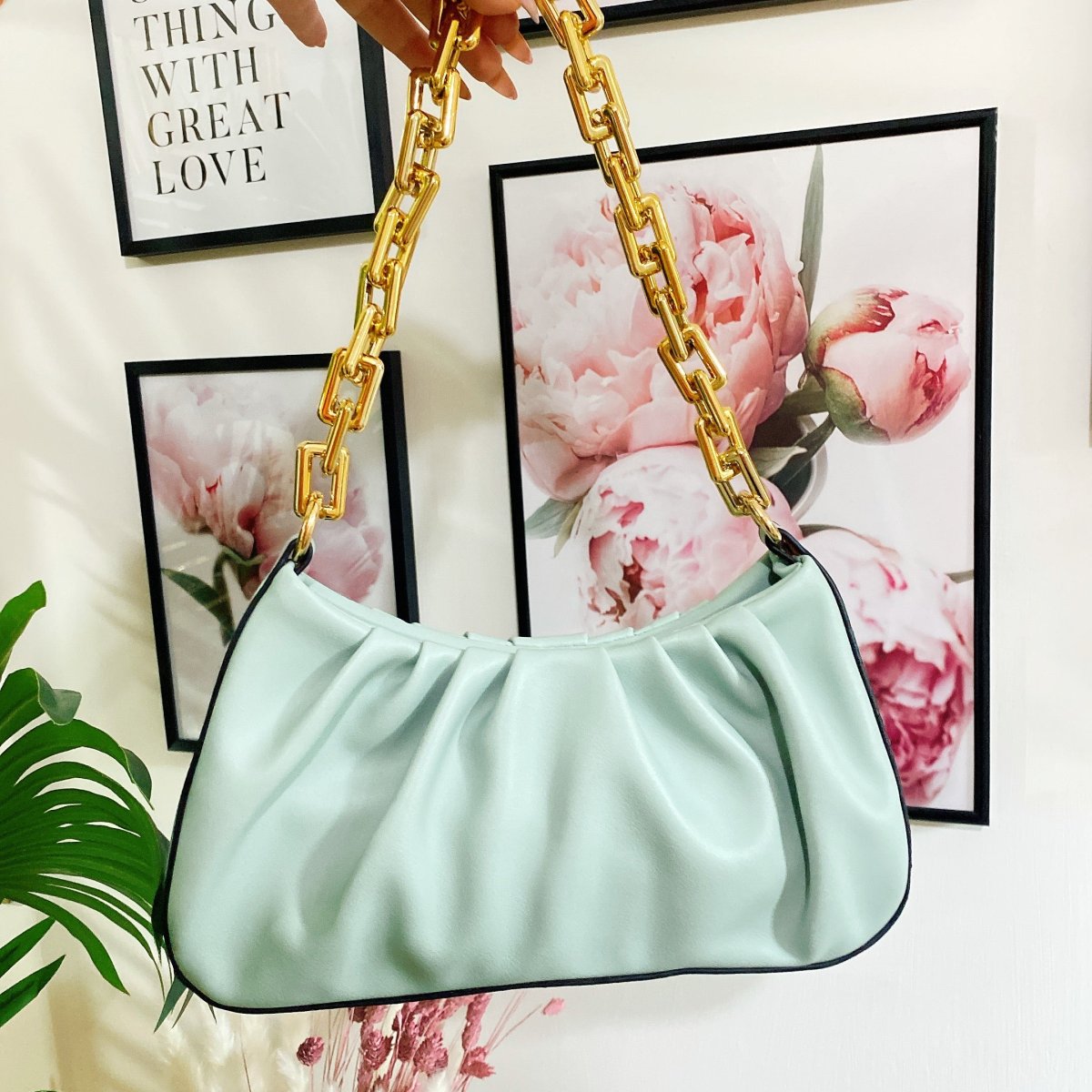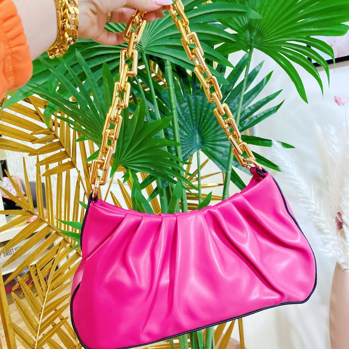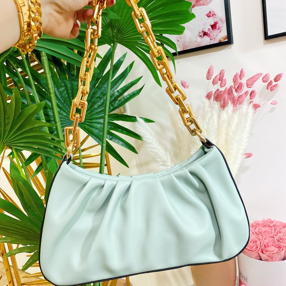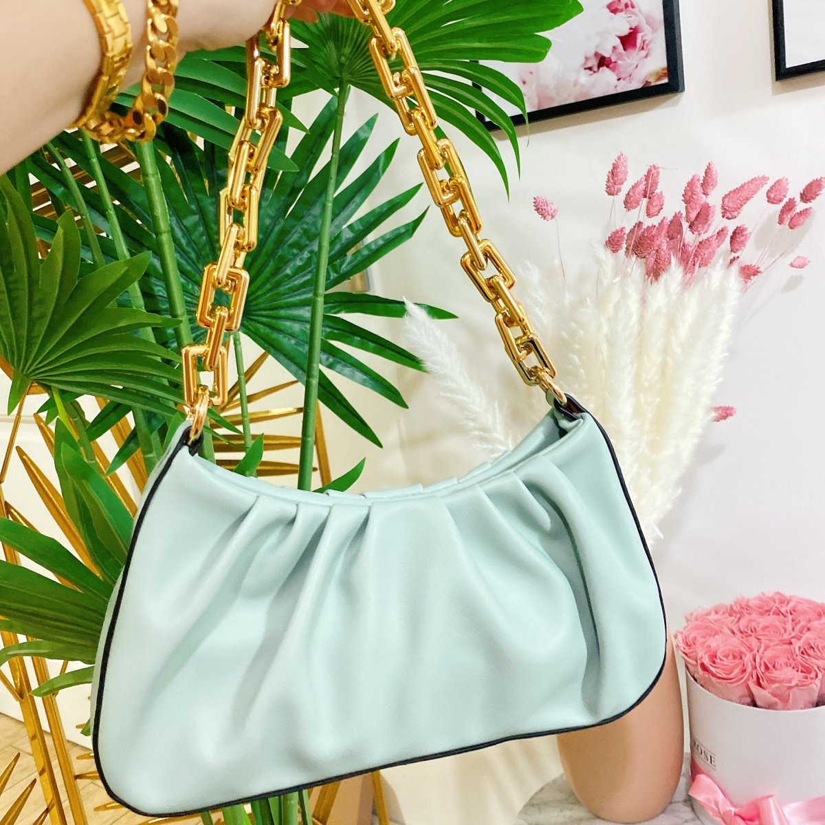 Bag in eco pelle con tracolla inclusa. Dettaglio argento