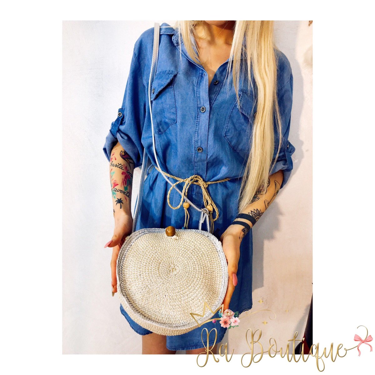 Bag ricamata in tela forma a cerchio con tracolla Silver e pratica chiusura, misura media.
