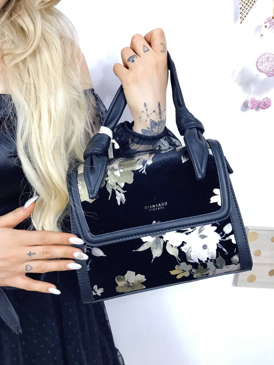 Graziosa borsa a mano in velluto con dettagli oro