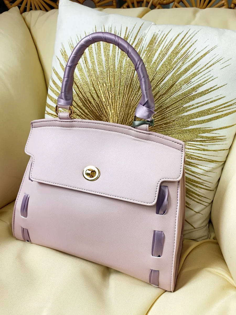 Bag lilla con lacci in raso Alta qualità, grandezza media.