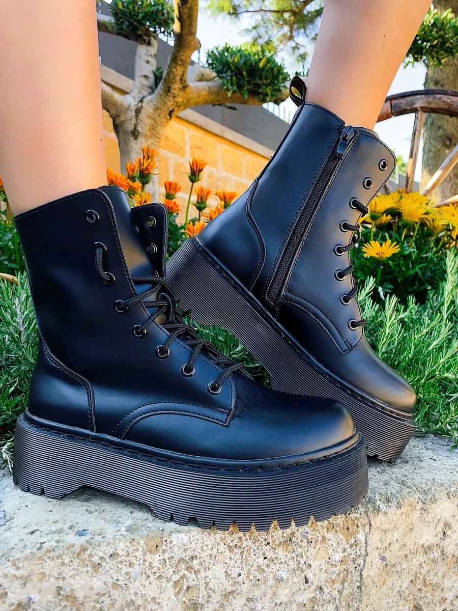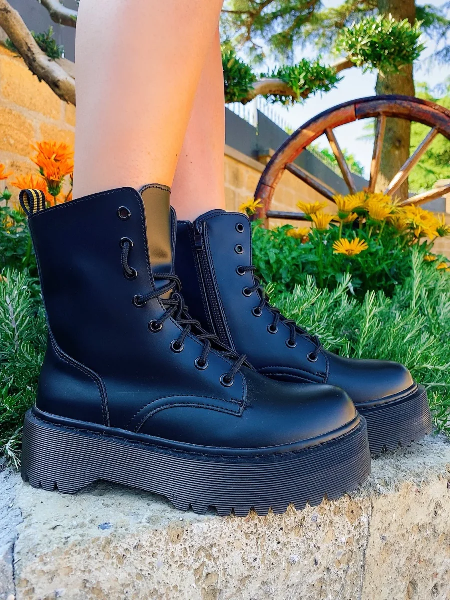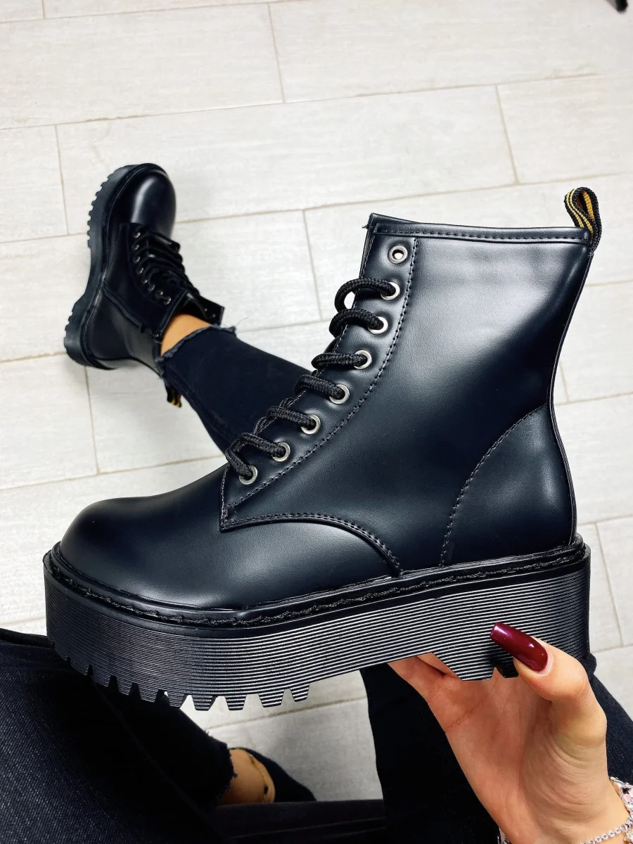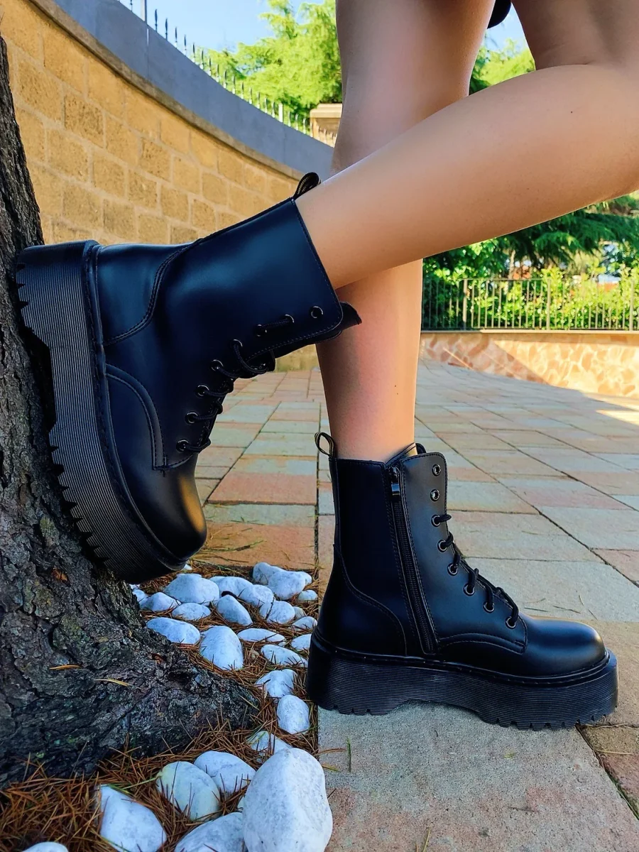 Biker ben rifinito di alta qualità total Black con platform 4/5cm.
