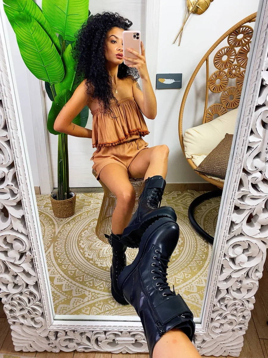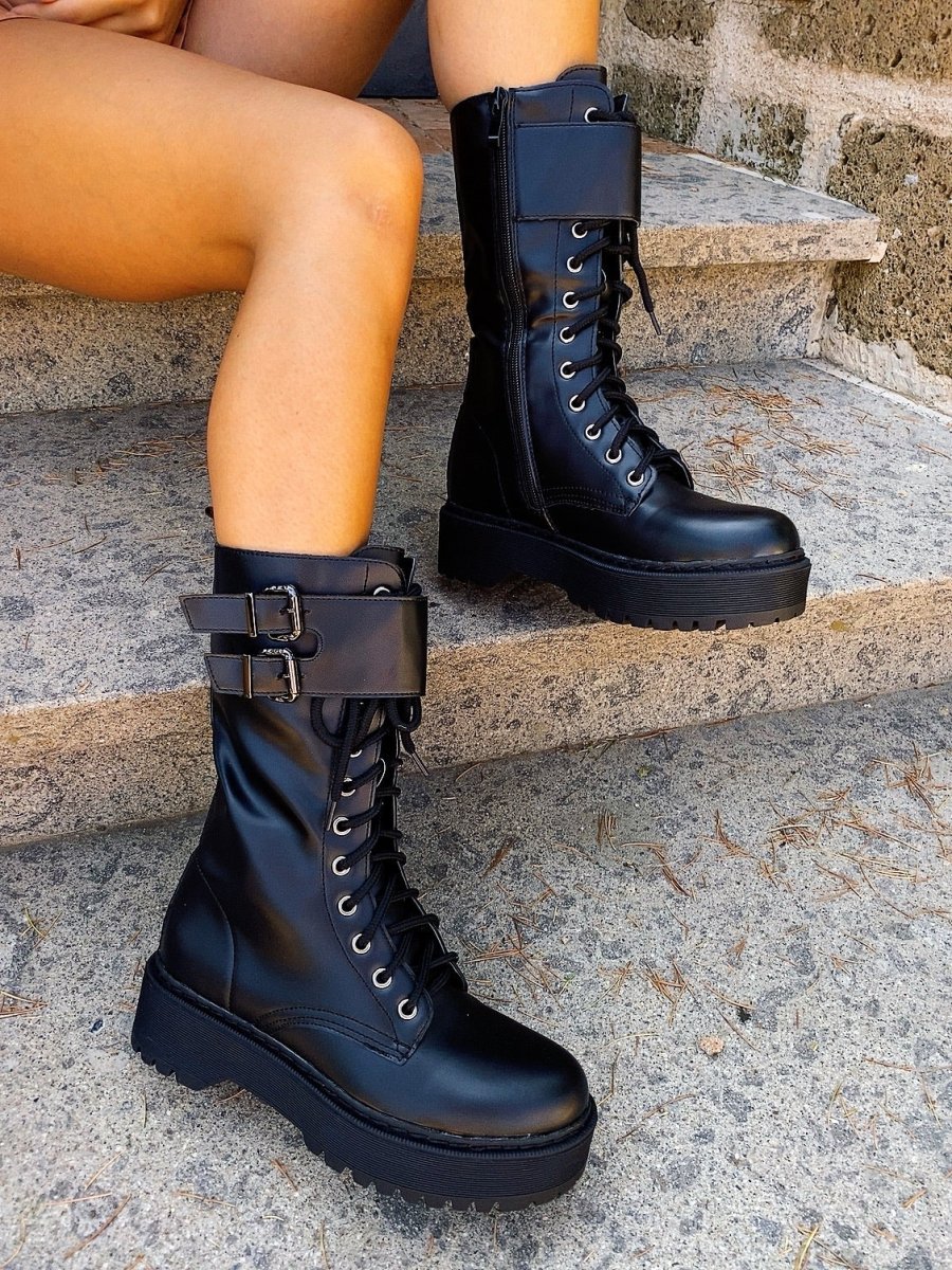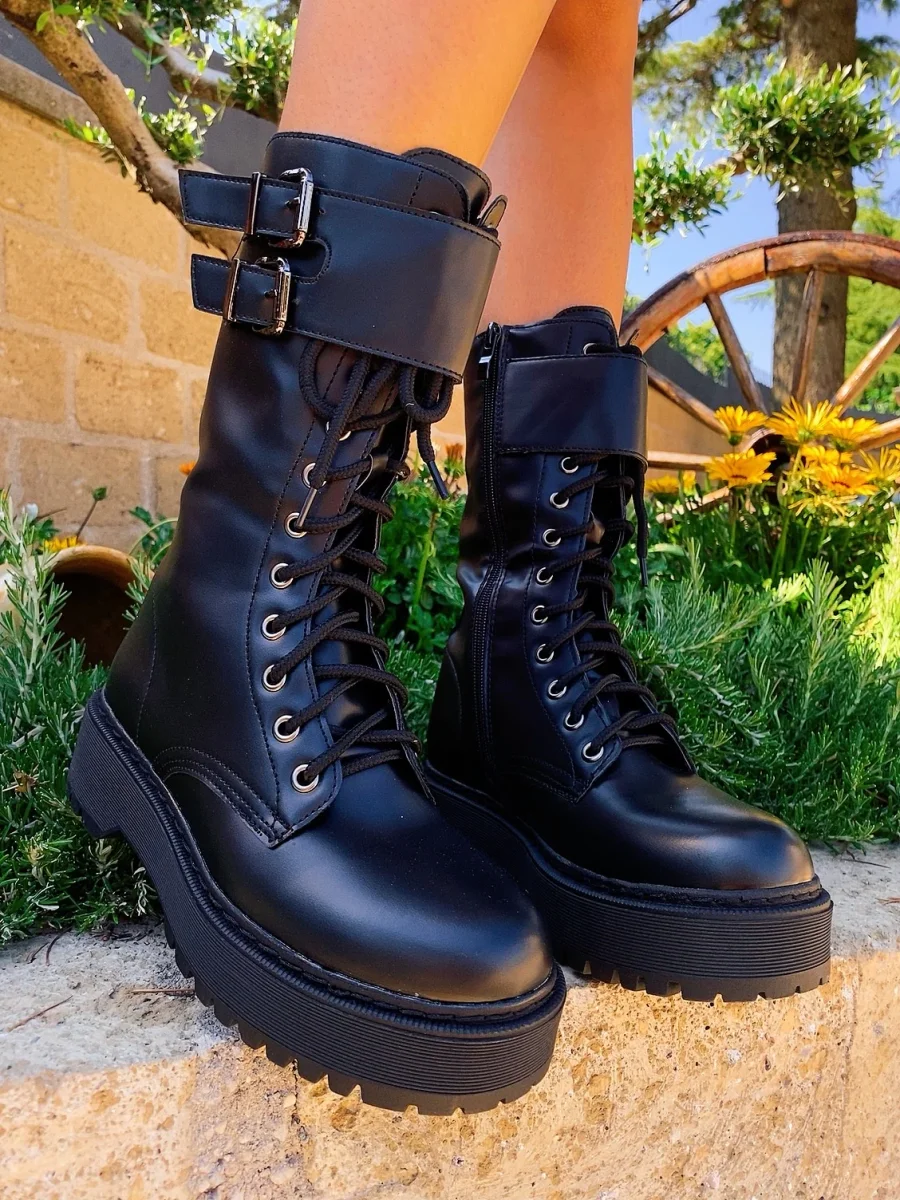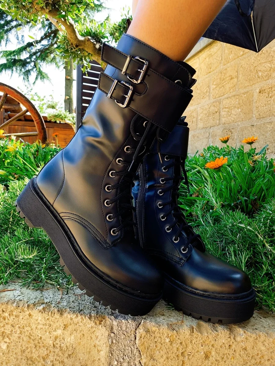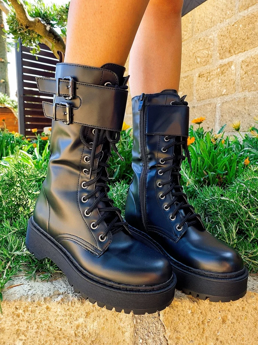Biker Black alto con cinghia di alta qualità total Black con platform 4/5cm.