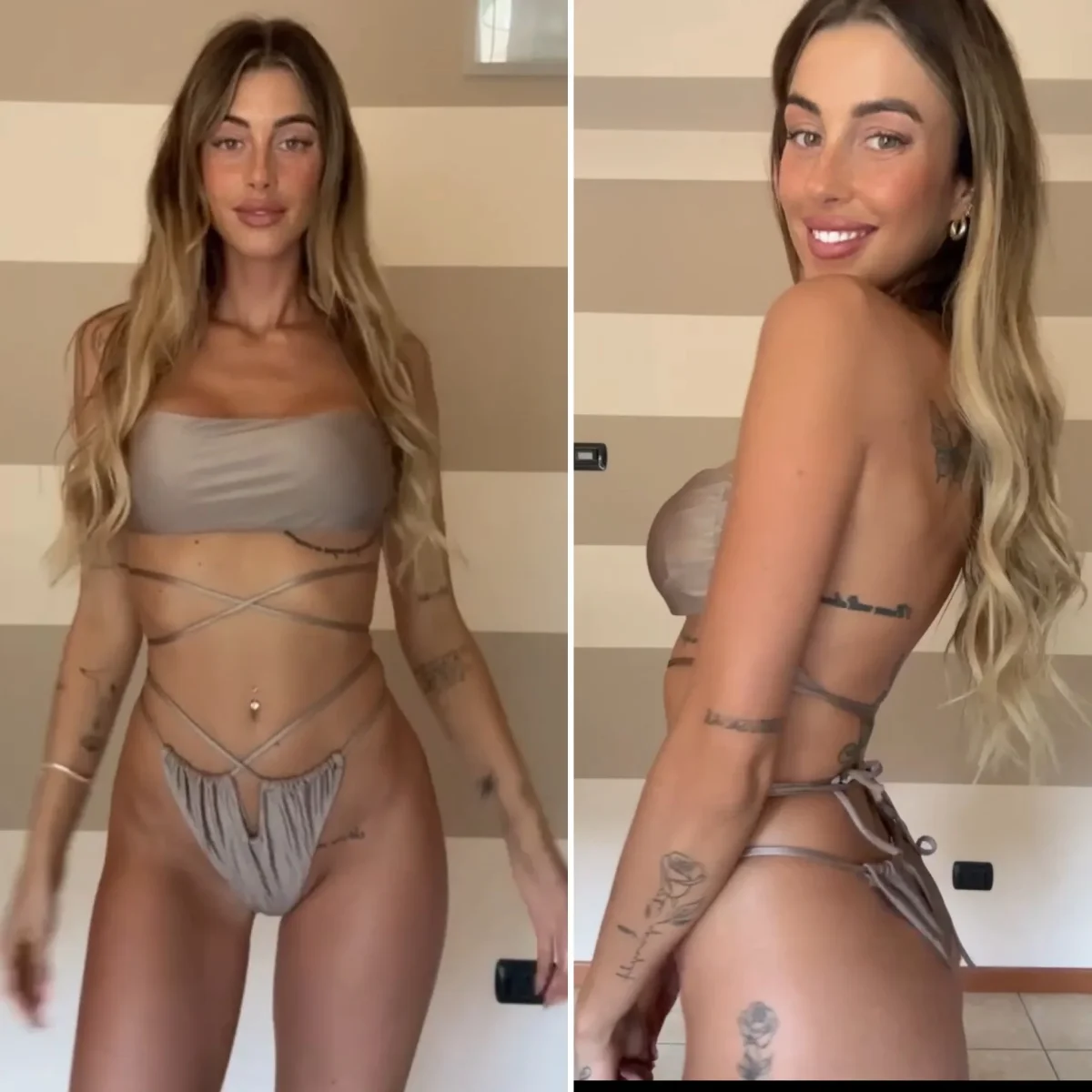 Bikini due pezzi composto da triangolo elastico con coppe e mutanda brasiliana fascia regolabile.