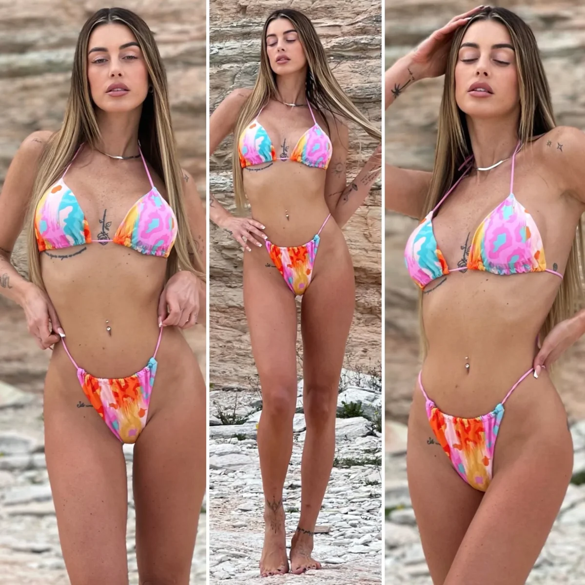 Bikini animalier Con feretto sotto al seno, coppe e spalline regolabili. Mutanda a brasiliana