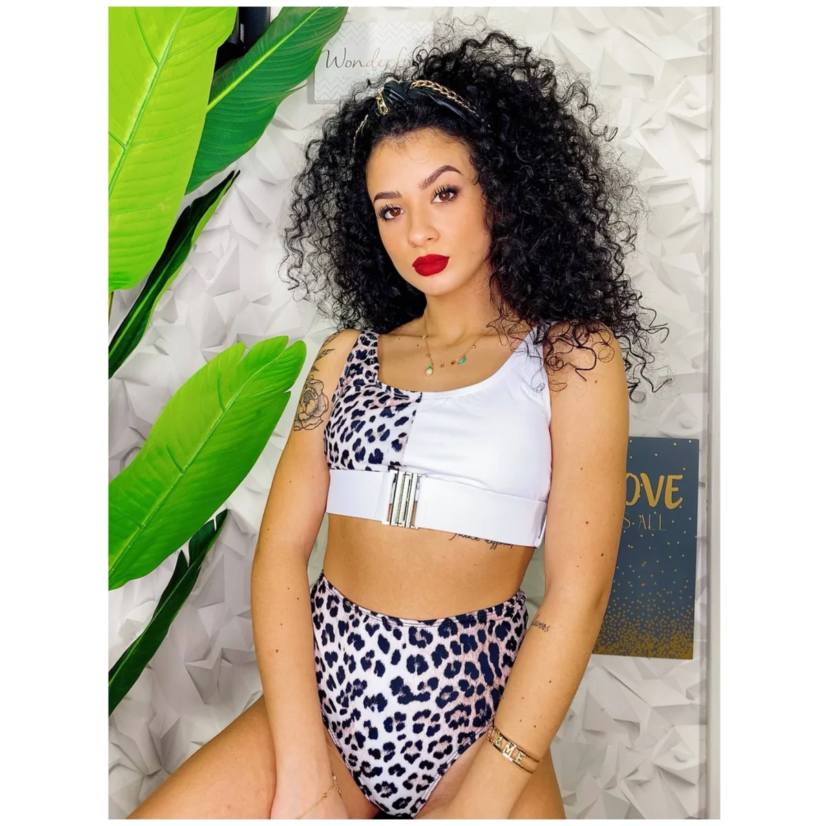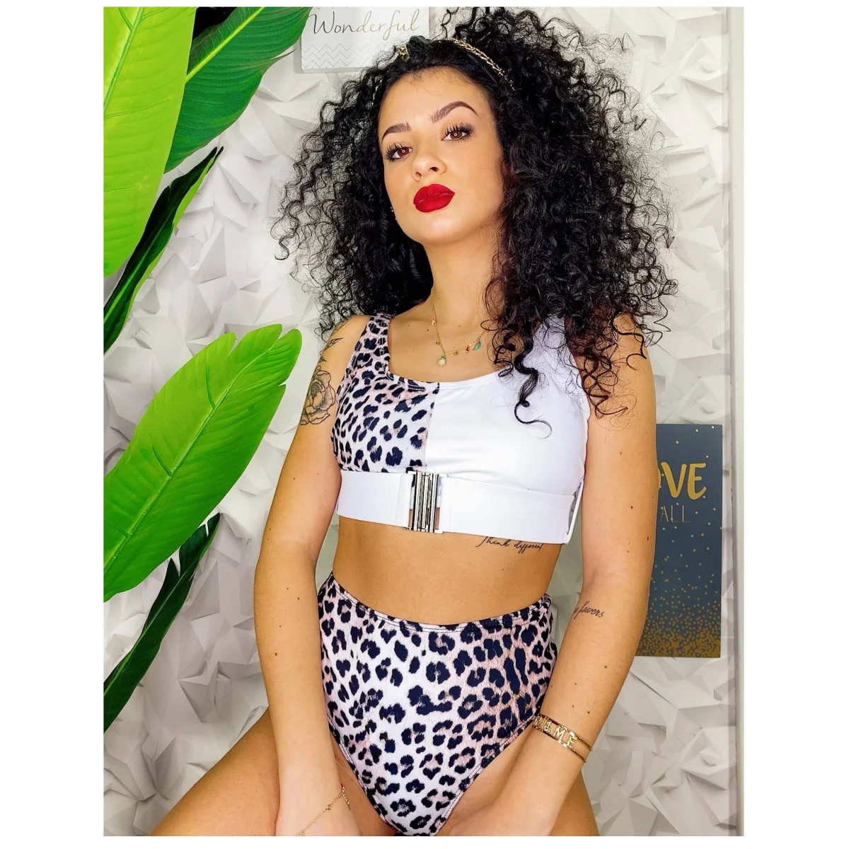Bikini con clip maculata, taglia M veste sia una 40 sia una 42 essendo la muta da elasticizzata a vita alta