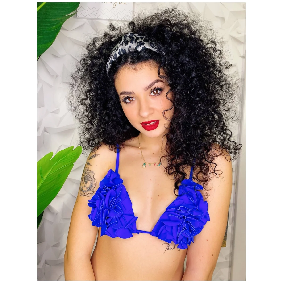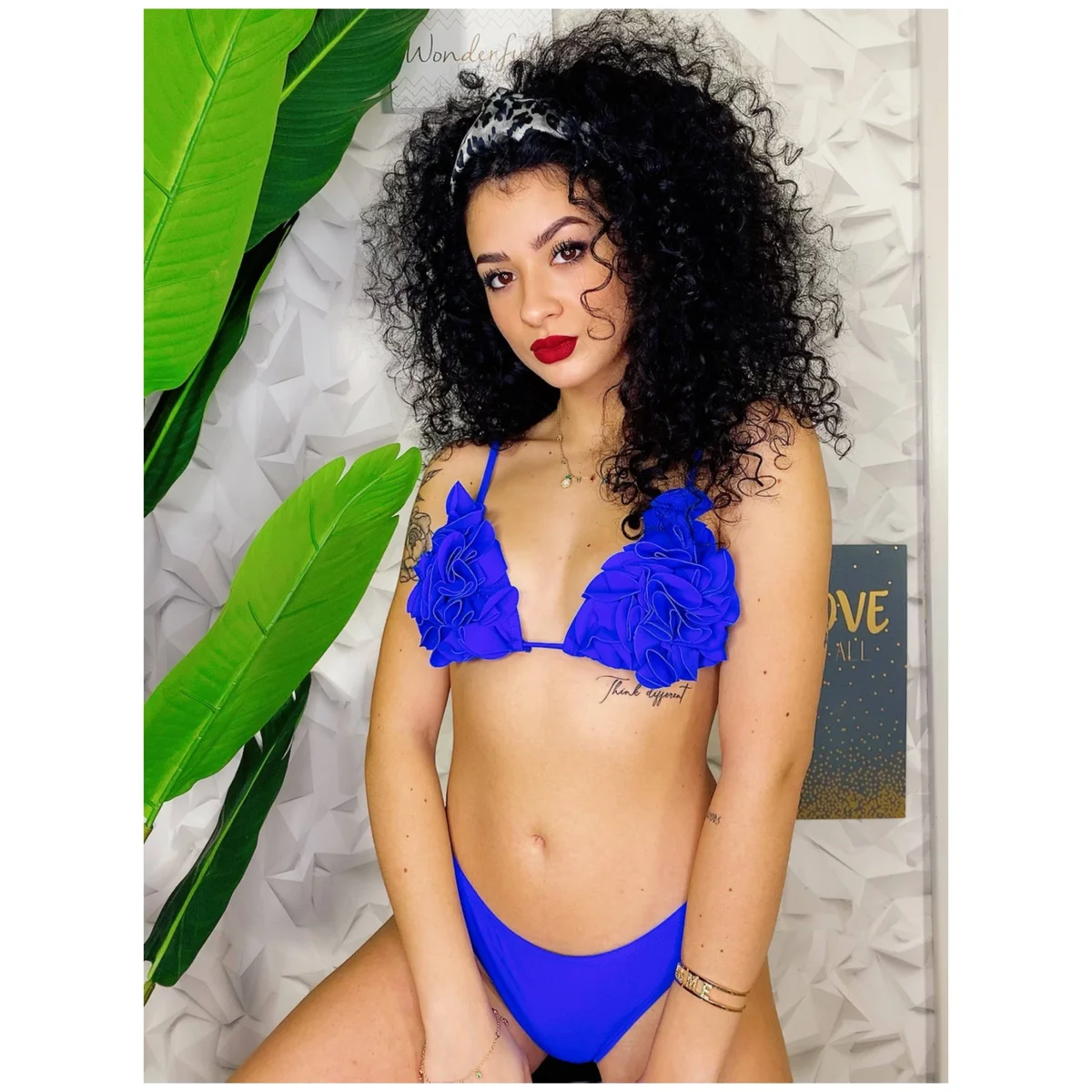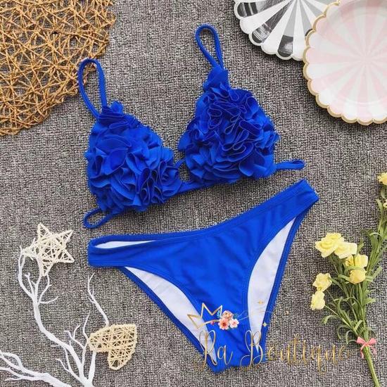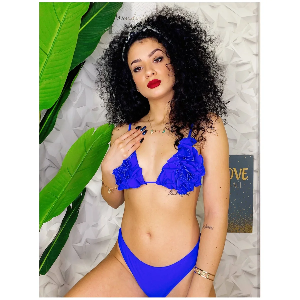 Bikini due pezzi con mutanda sgambata, top rifinito con ondulature che lo rendono molto particolare, quasi ad accentuare il seno, il tutto di un blu che ti farà emozionare!!