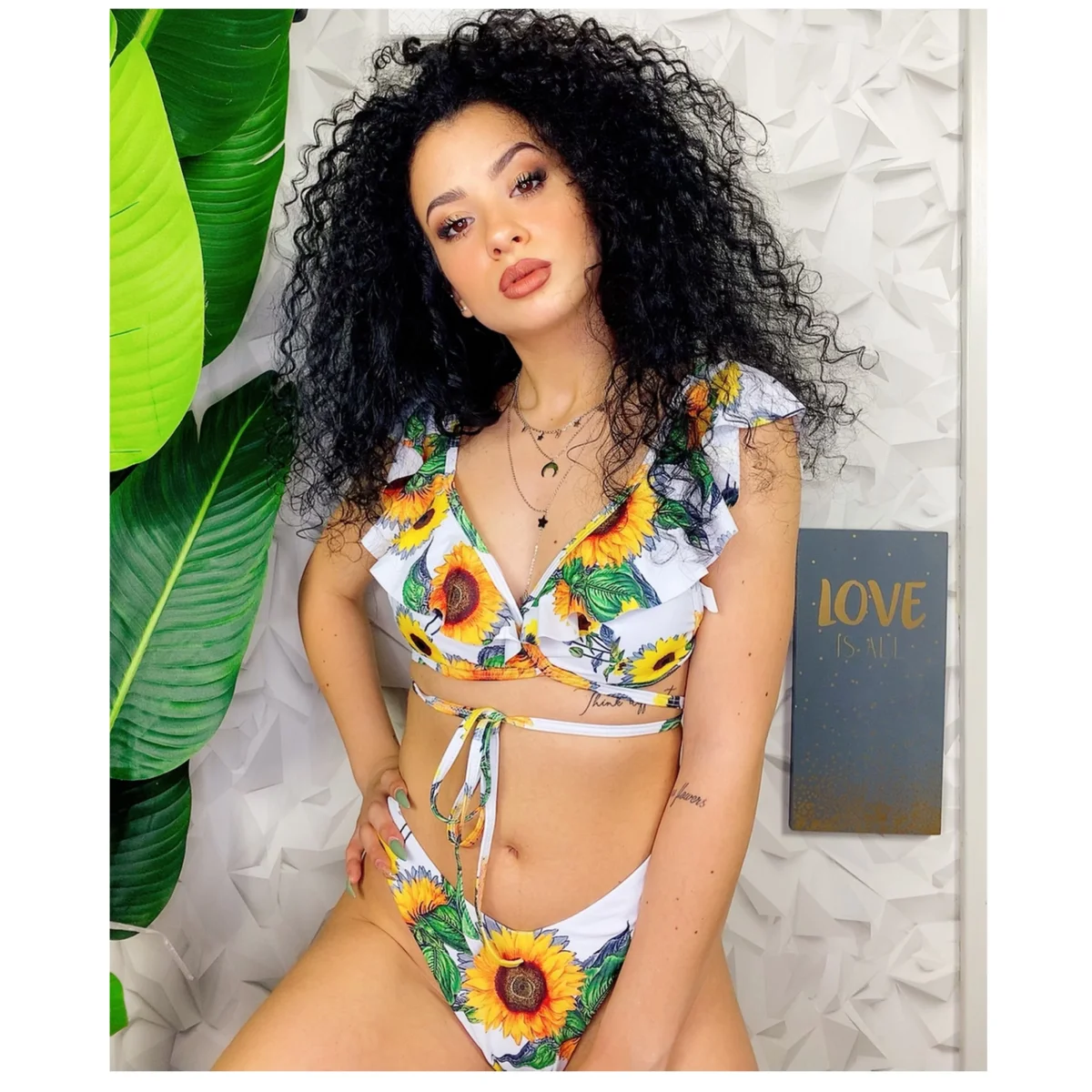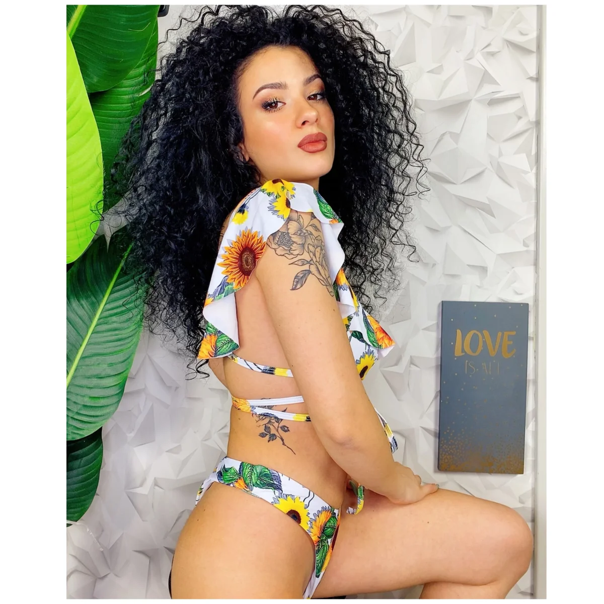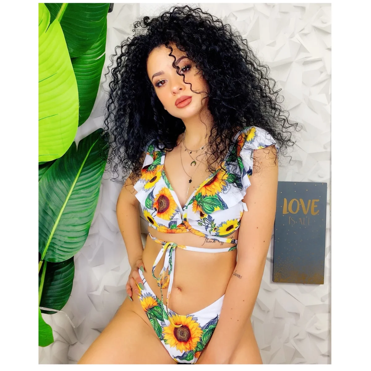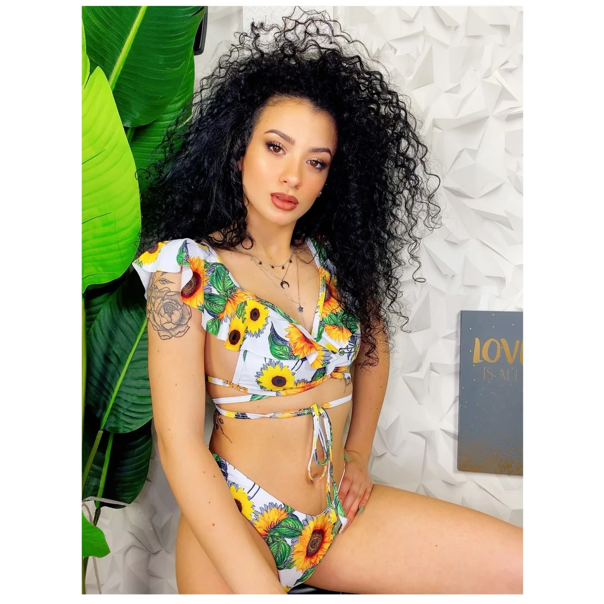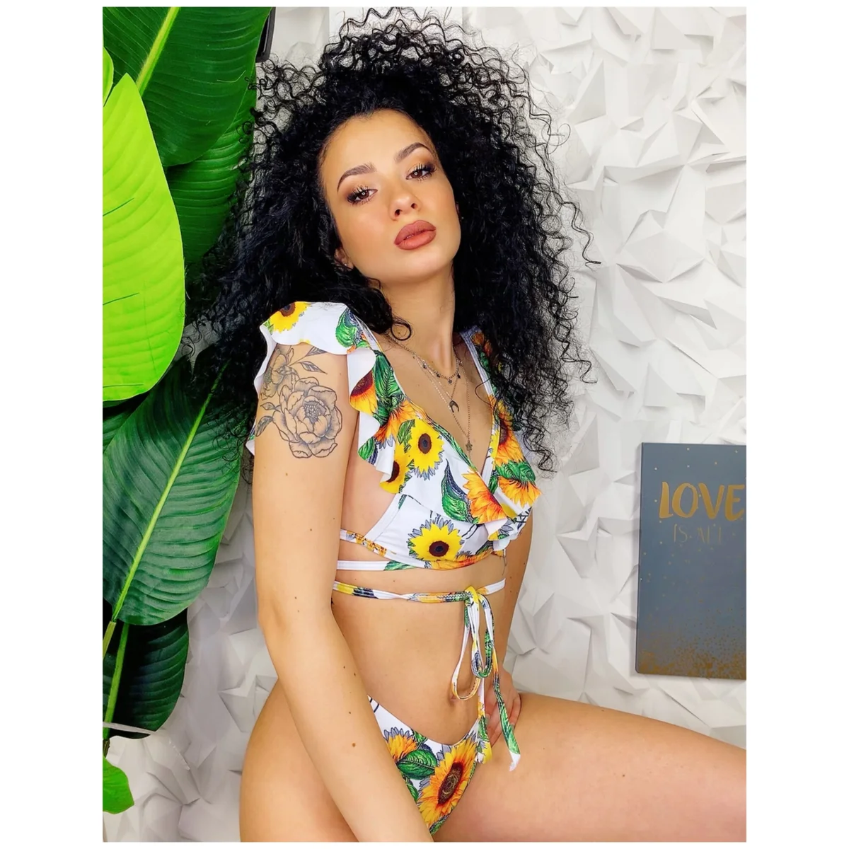 Bikini due pezzi a brasiliana con mutanda leggermente a vita alta Top con spalline in Rouge sempre stampa floreale e laccio che passi dietro le spalle e intorno alla vita per stringerlo. Veramente non passerai inosservata!!